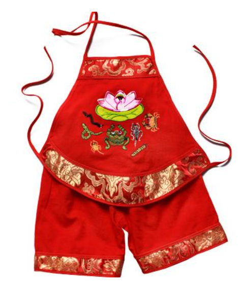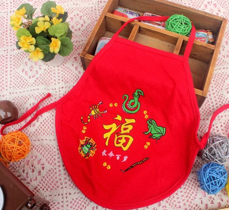 一般都是五毒兜兜,五毒一般是指蛇、蝎、蜘蛛、壁虎、癞蛤蟆等。这几种动物都是带毒的,咬人之后能使人中毒。特别是小孩更容易受到这些动物的侵害。而五月又是这些动物活跃的时期,所以在端午节时,民间用巫术的方法镇压五毒。绣制带有五毒图案的肚兜便是其中最重要的方法之一。曾几何时已经被遗忘的红兜兜如今又大行其道,深受大家的欢迎。http://si1.go2yd.com/get-image/0DhEJ59kJNY