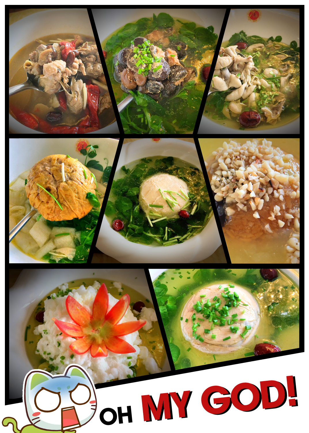 织金洞附近吃源俊水八碗,“水八碗”采用本地黑猪肉、本地土鸡、鸡蛋、薏仁米、竹荪、野味山珍等制作而成。一桌八个人,用清一色的大碗,上八道菜,蕴含着“八碗菜,八人吃,人人清洁平安,四面八方,一年四季,万事如意”的喻意,充分表达对客人的尊重。