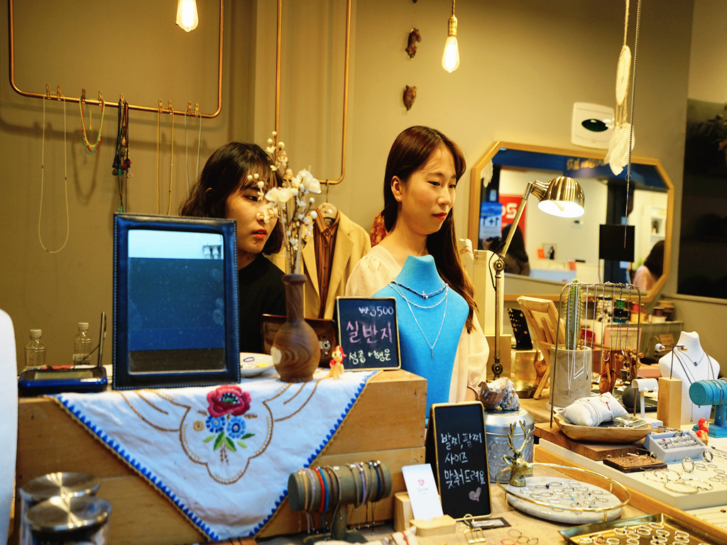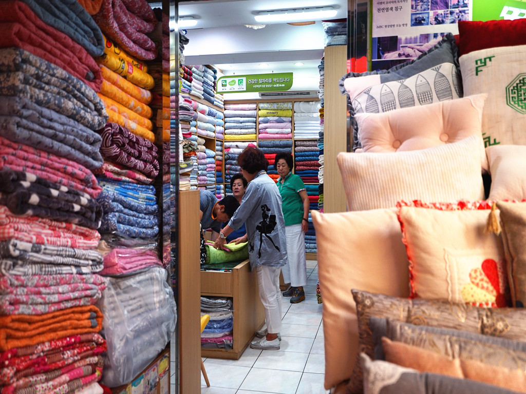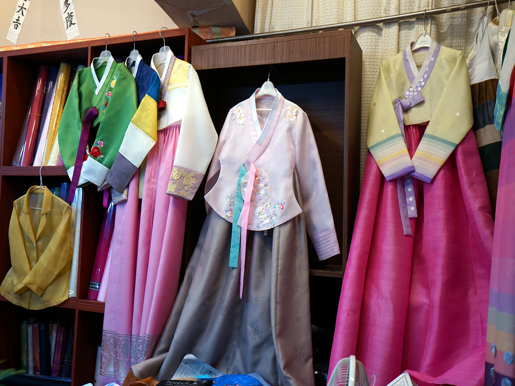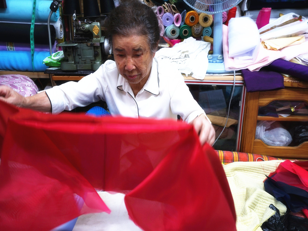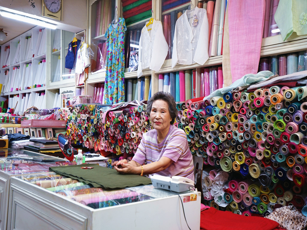 这里有韩国传统服饰手工作坊,目前都是一些老年人在这里亲手缝制,做工都很精细,而且非常的漂亮。这位八十四岁的老奶奶祖孙三代都在这里做韩服,可见生意有多好。http://si1.go2yd.com/get-image/0GmgFlu45vU