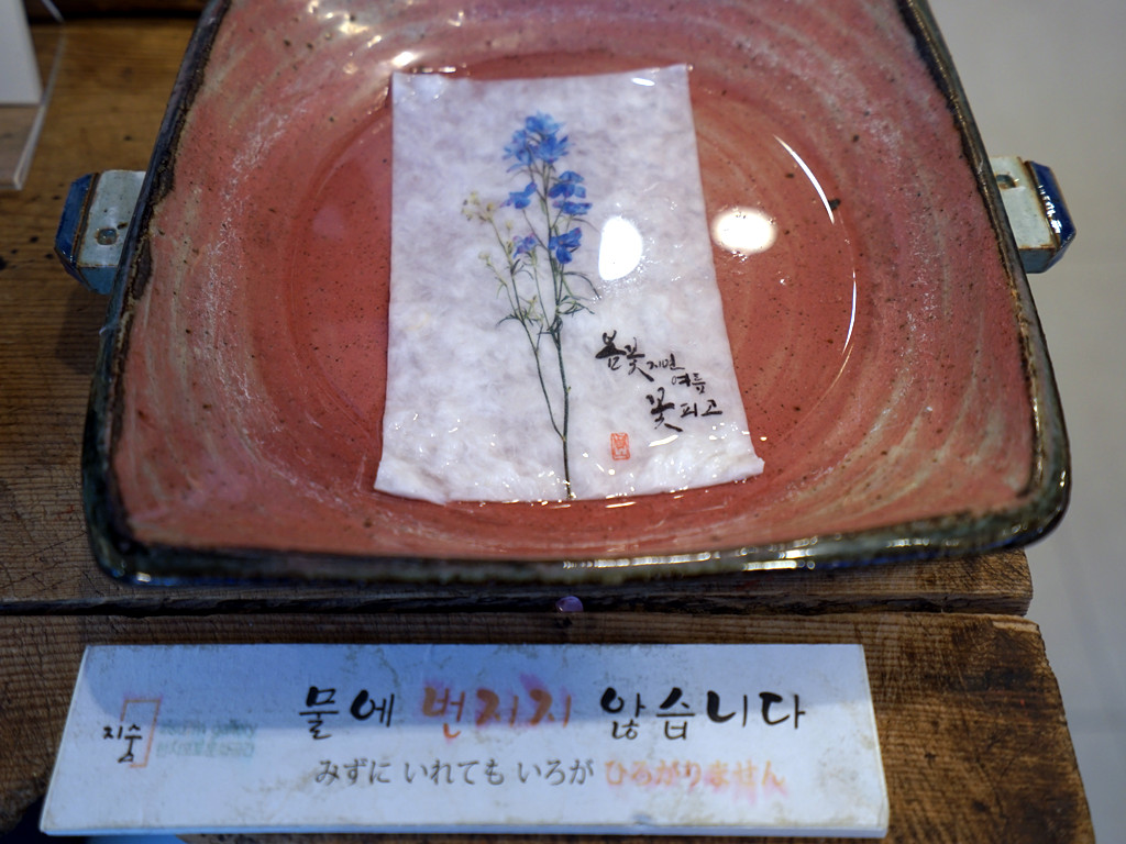 这个韩国传统手工宣纸,做出来的画,放到水里居然不会烂掉。我们普通的纸画一沾水就会烂掉。