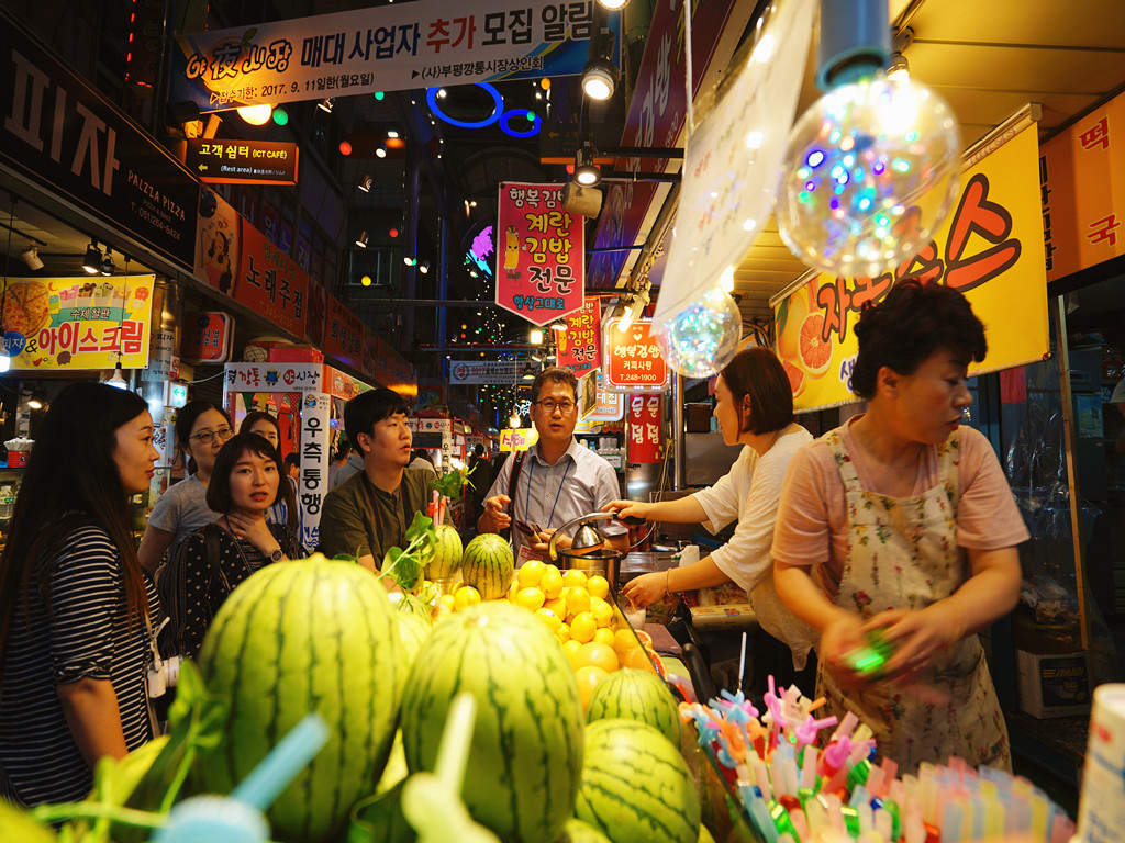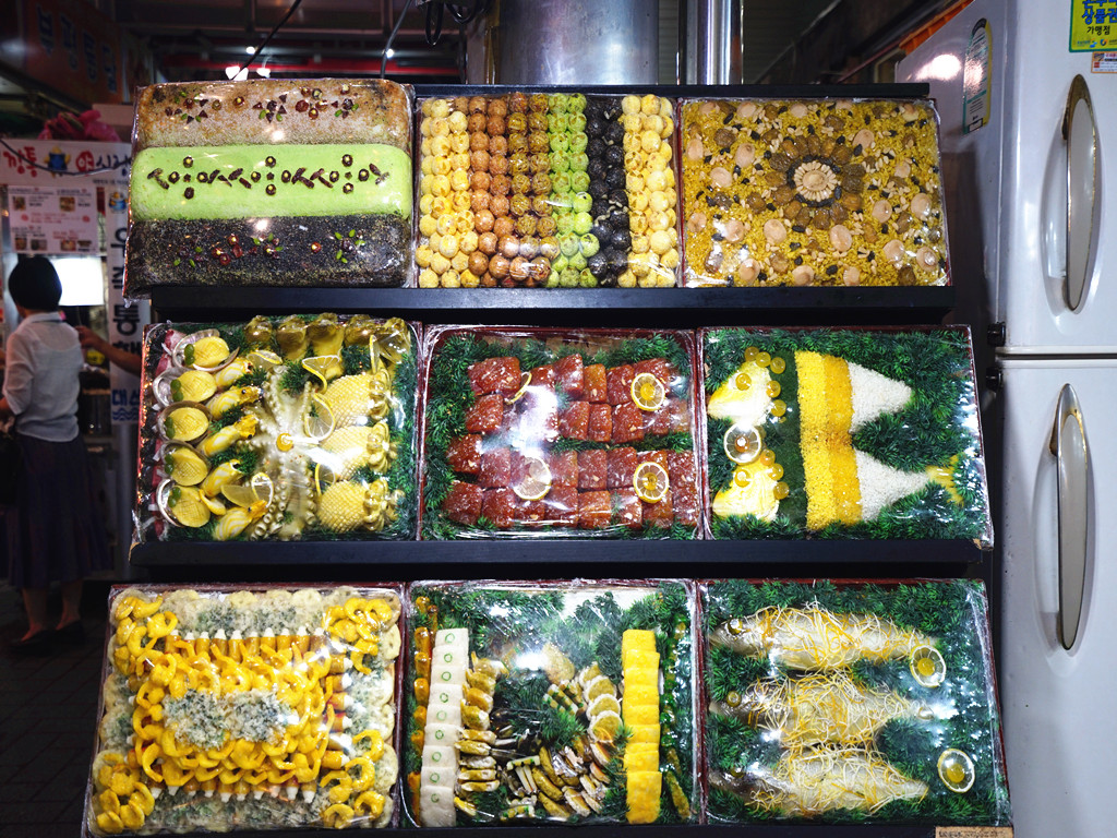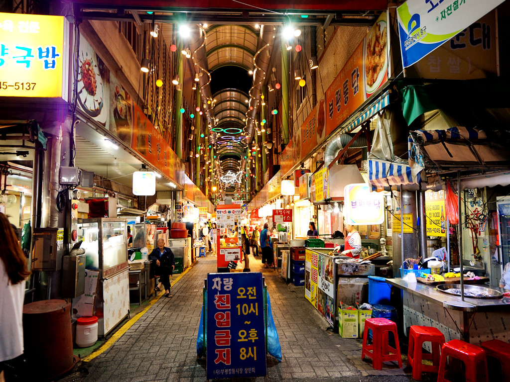 七十年代前这里作为韩国的临时首都,也就自然而然的成为最繁华的港口交易市场,由于当时物质的匮乏,只能以进口世界各地的各种罐头为主。慢慢的也就成为了罐头市场,直到今天它依然叫罐头市场。比起前面的两个市场,这里更多的是各种各样的韩国特色美食,又便宜又实惠。这里的夜市是每天都有的,而且是最能代表韩国美食的地方。