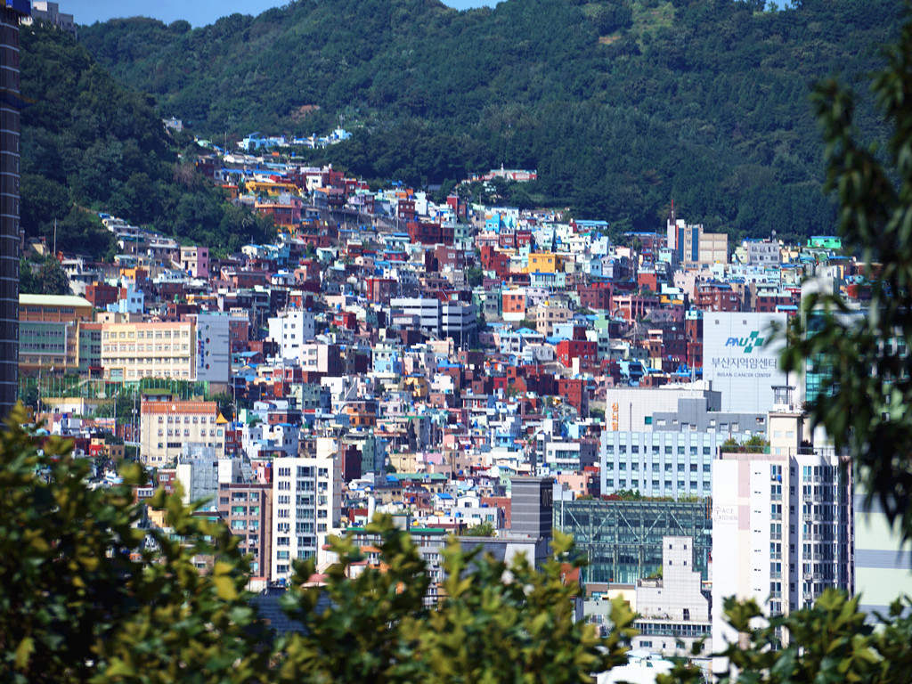 http://si1.go2yd.com/get-image/0GmiEmJJoDw远处山上五颜六色的老房子就是闻名遐迩的甘川文化村。在山间阶梯式的排列开来,虽然这次没能走到村子里去看看迷宫一样的房子,稍稍有点遗憾。但是,站在这里能俯瞰它的全景也是特别的美。