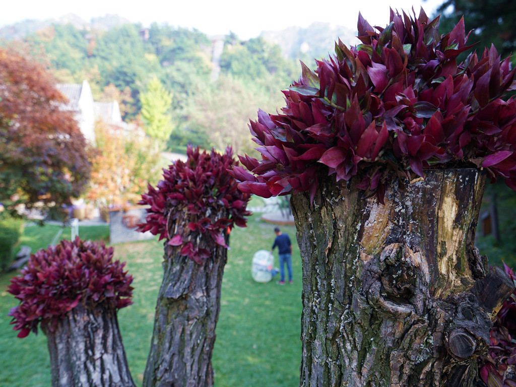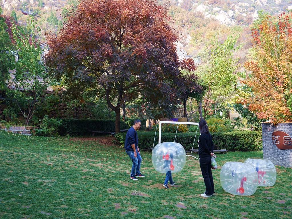 躺在杰克魔豆树屋的大床上就可以看见远山的红叶,近处的风景。暖暖的阳光洒在床上,温馨而舒服。站在露台上触手可及的树叶,是你与这个秋日最真实的接触。玩着树叶望着远处的迷人风景,恍惚间以为自己进入了童话般的世界。目及之处满山的红叶,远处是密云最美的水库。这里最有特点的地方就是还有一个大大的滑梯,这可是孩子们最最喜欢的,而且是在自己家。看这大孩子玩起来也是不亦乐乎,小孩子就更不用说了。