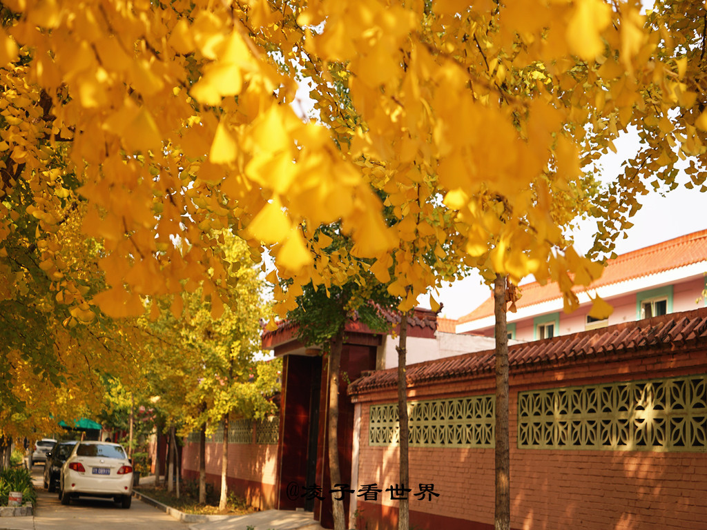 韩村河号称北京郊区最美的乡村,来到镇子里就被这儿的银杏大道所吸引。金灿灿的银杏树与这红色的小别墅形成鲜明的对比,房中有树,林中有房,一眼望过去真是美不胜收。姑娘们高兴的不停拍照,嘴里还不停的碎碎念,我要是能住在这里该多好啊!