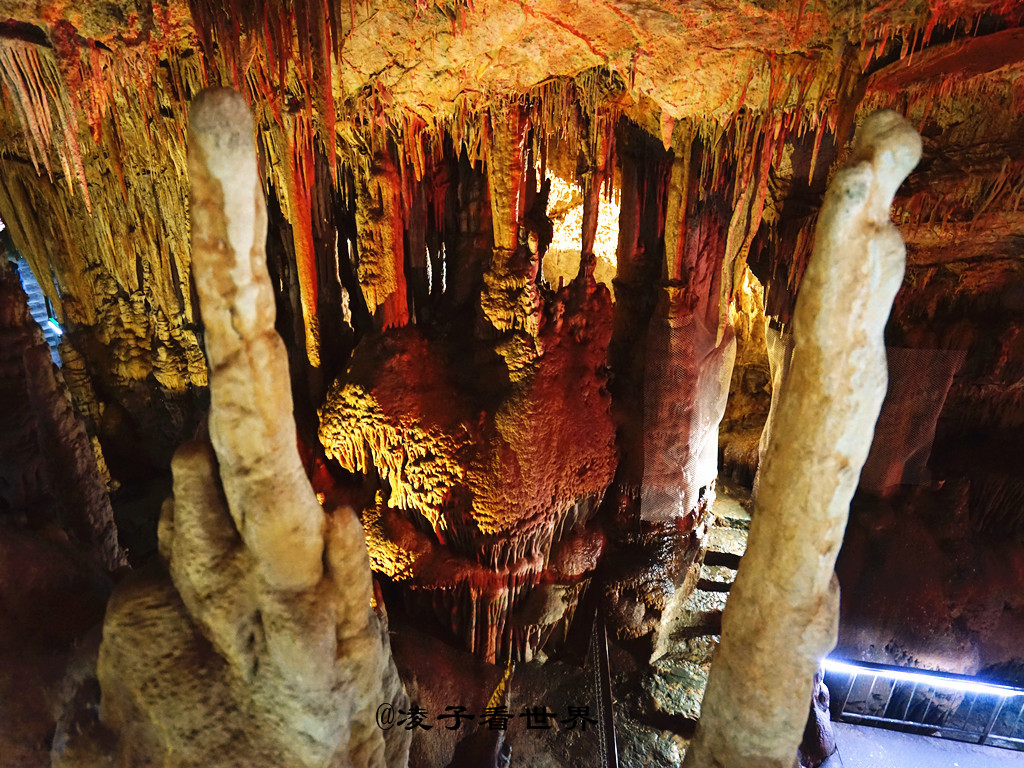 四层的游完花费了一个半小时,所以进去的时候要带点水,夏季去的时候也要带件外套,会有点凉,室内外有温差。里面的道路窄,很湿滑,建议进去要小心慢走,防止滑倒。我凭个人比较喜欢一二层的重力水钟乳石,宏伟壮观,让人印象深刻。洞内粗壮的石笋,石柱,闪烁发光的石瀑布,耀眼的月奶石,都是是洞内让你过目不忘的美景。