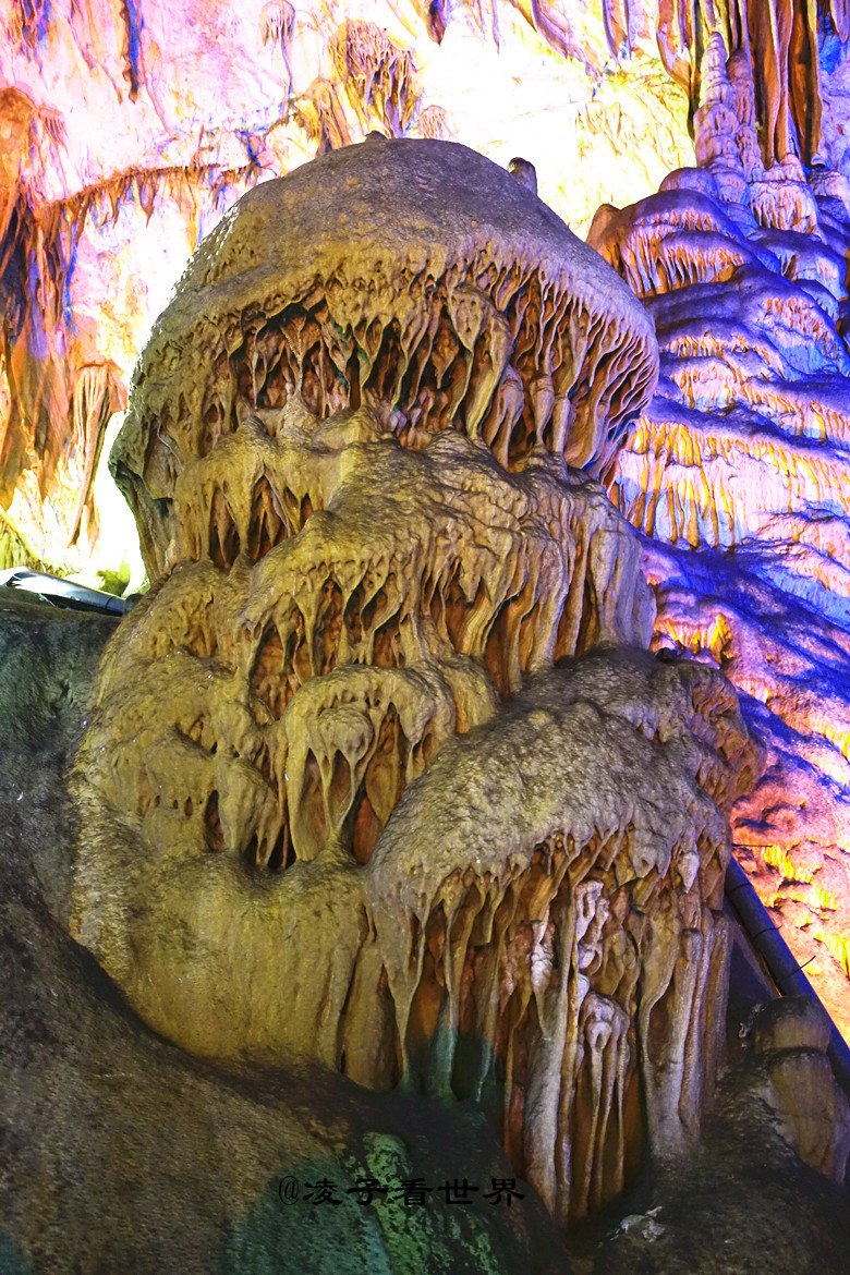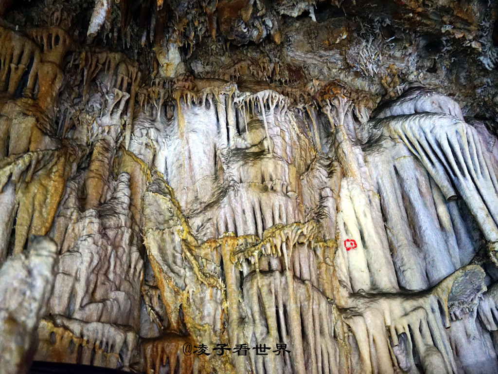 第二层是游览路线最长的一层,规模和面积都比较大,有“石瀑布”,“擎天鸳鸯柱”等许多的自然景观,很适合摄影爱好者在这里拍摄,对于爱自拍的我来说,来到这里就走不动道了,不停的拍,好几次和大家就分开了,最后被队友强行拖着我走,好尴尬。