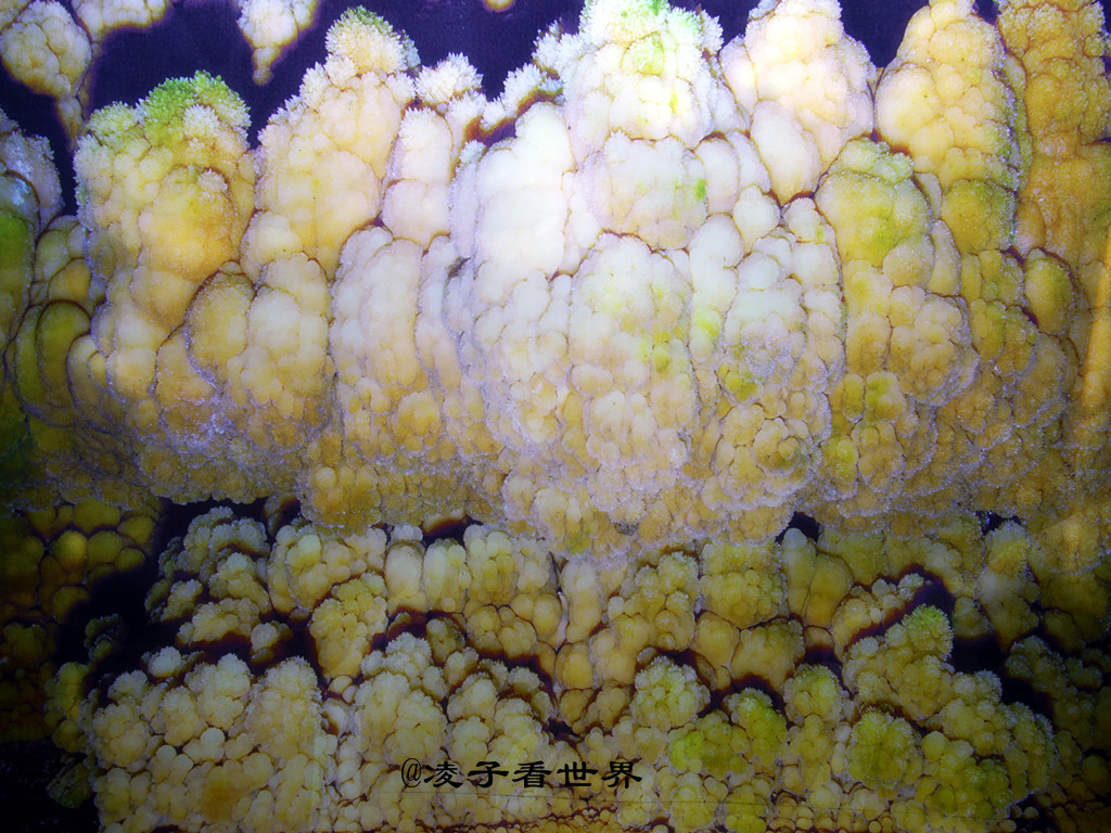 石花洞的“遥池石莲”,已生长32000余年,洁白丰满,由大片的月级石沉积而成,世界稀有。这就是我想看的月奶石,确是漂亮,奇特。