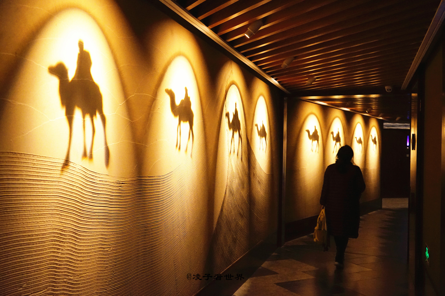 这里给人一种清净,舒心之感,走进来不由得就会放轻脚步,压低嗓门,唯恐惊扰到别人。就连通往房间的电梯走廊都有众多的设计元素在里面,去往房间的环形走廊更是让人惊艳。沙墙上的投影惟妙惟肖,飞天造型,以及各种人物造型,让人看了有一种说不出的静。自然而然就会放慢脚步,静静的欣赏,慢慢的品味。http://si1.go2yd.com/get-image/0Im93v36P9E