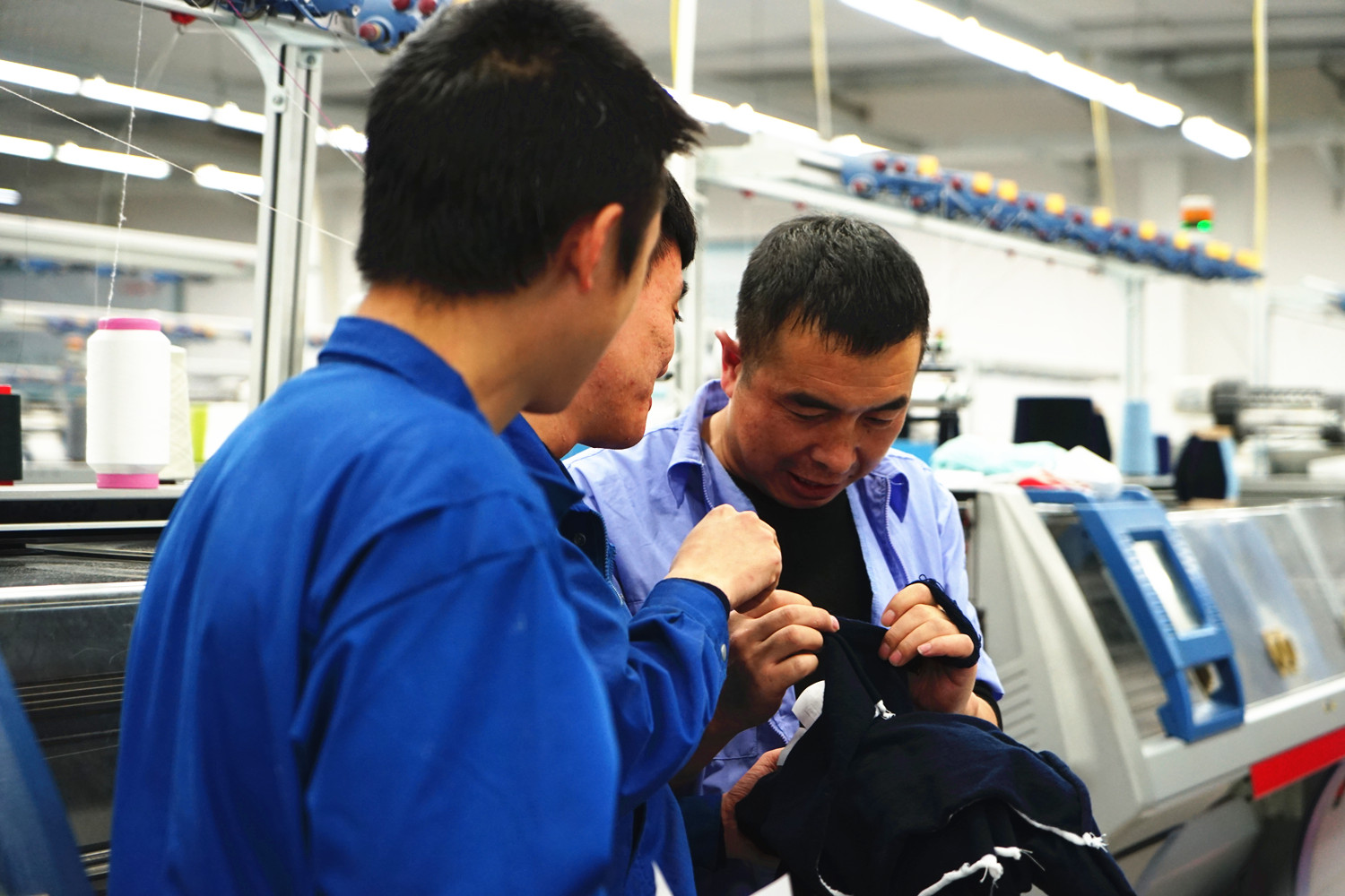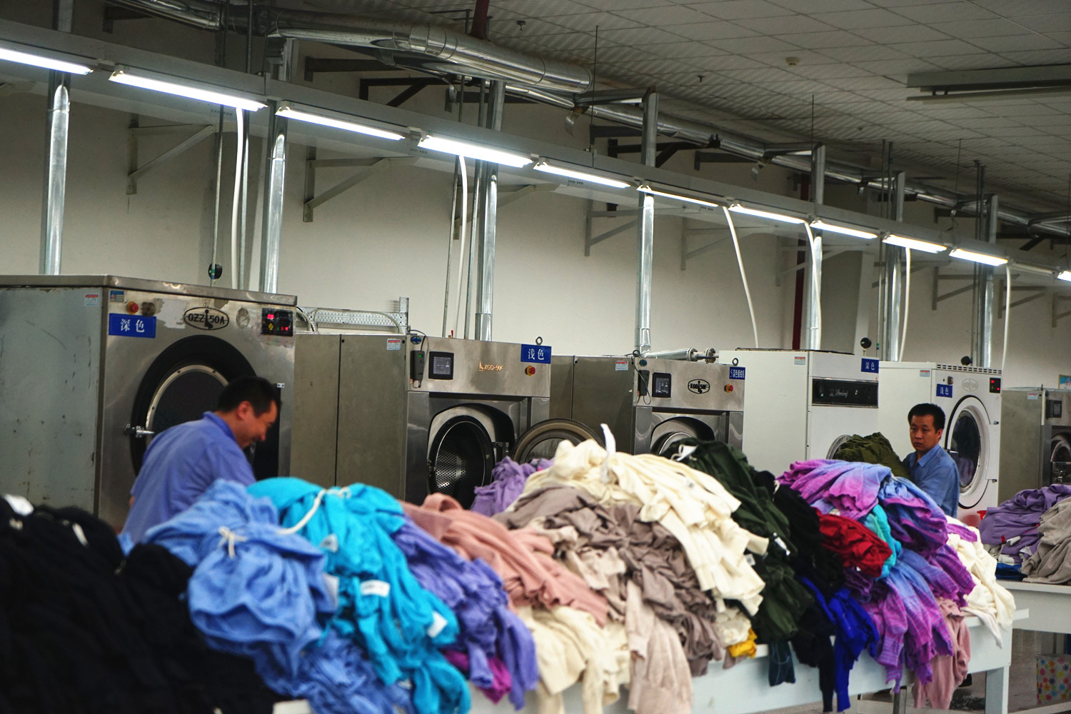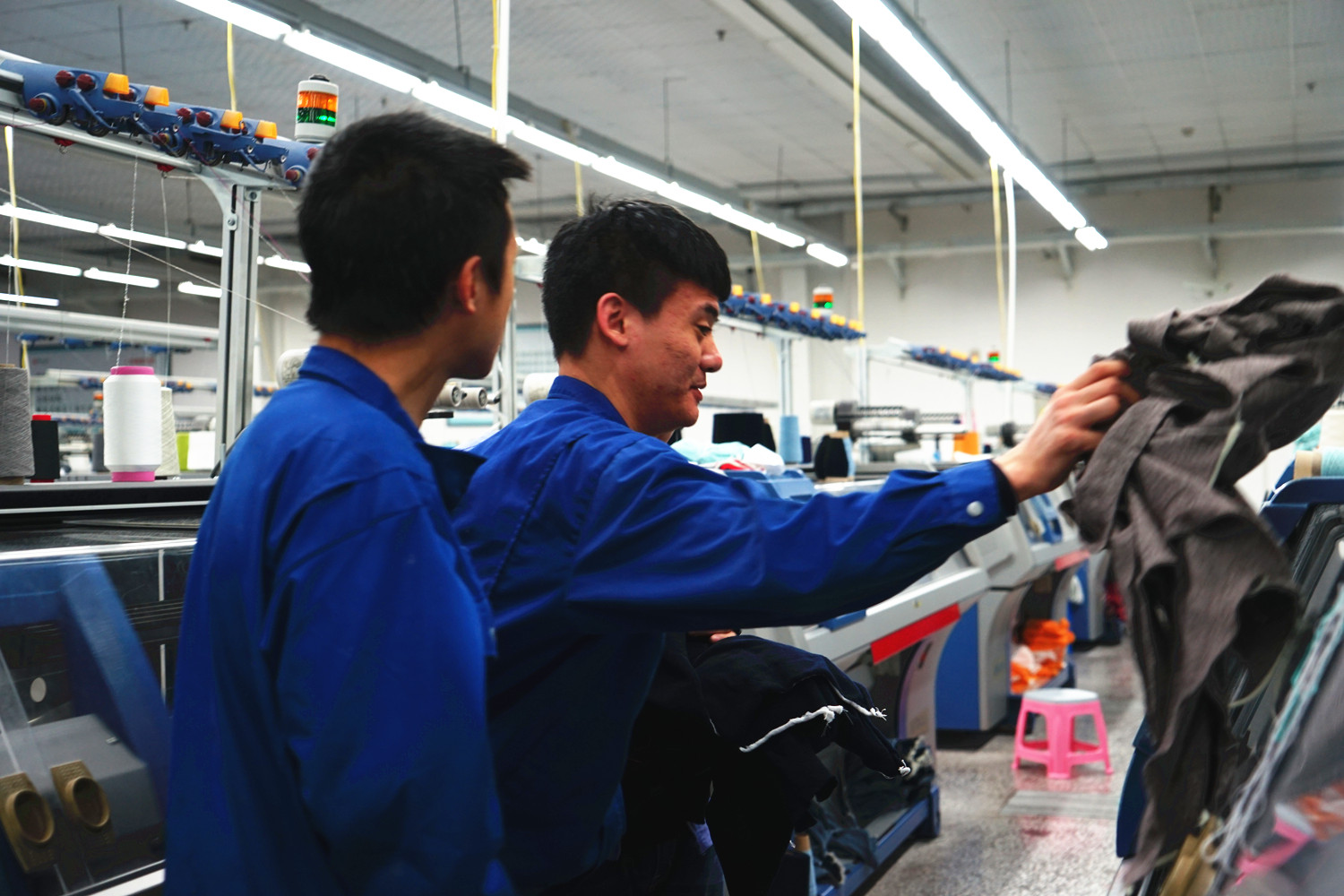 目前羊绒衫的加工过程都是成批机械化,首先要将线用机器制成半成品,一片一片的。所以纺织车间的工人很少,几乎看不到人。而且还是男人居多,他们负责看机器就行。成片的再上机器缝制。http://si1.go2yd.com/get-image/0IqMLITeHRY