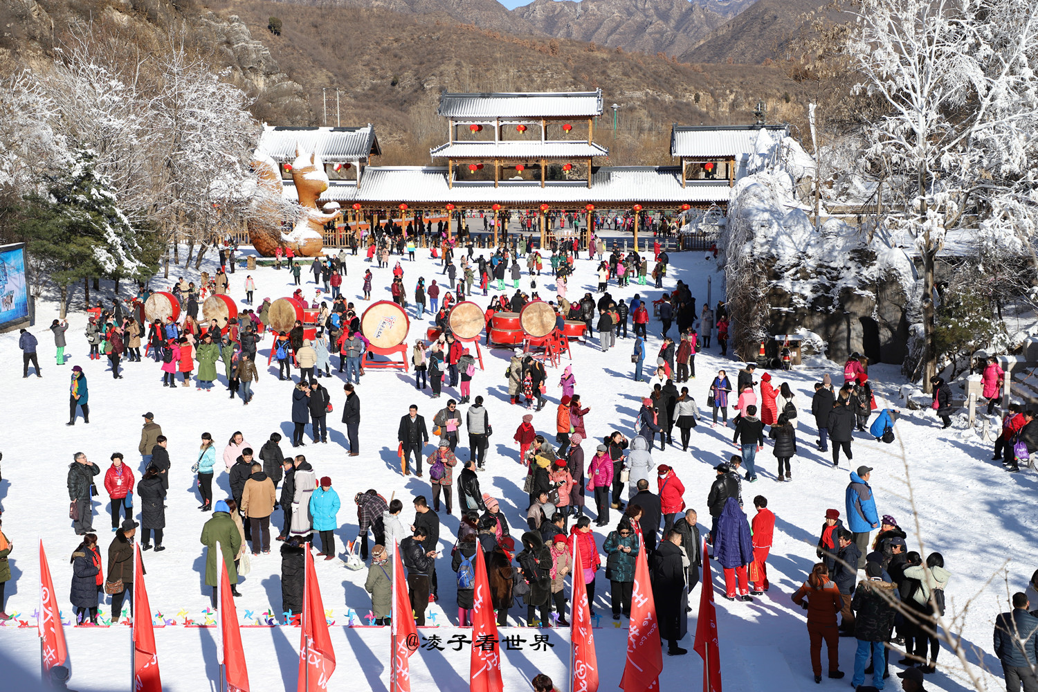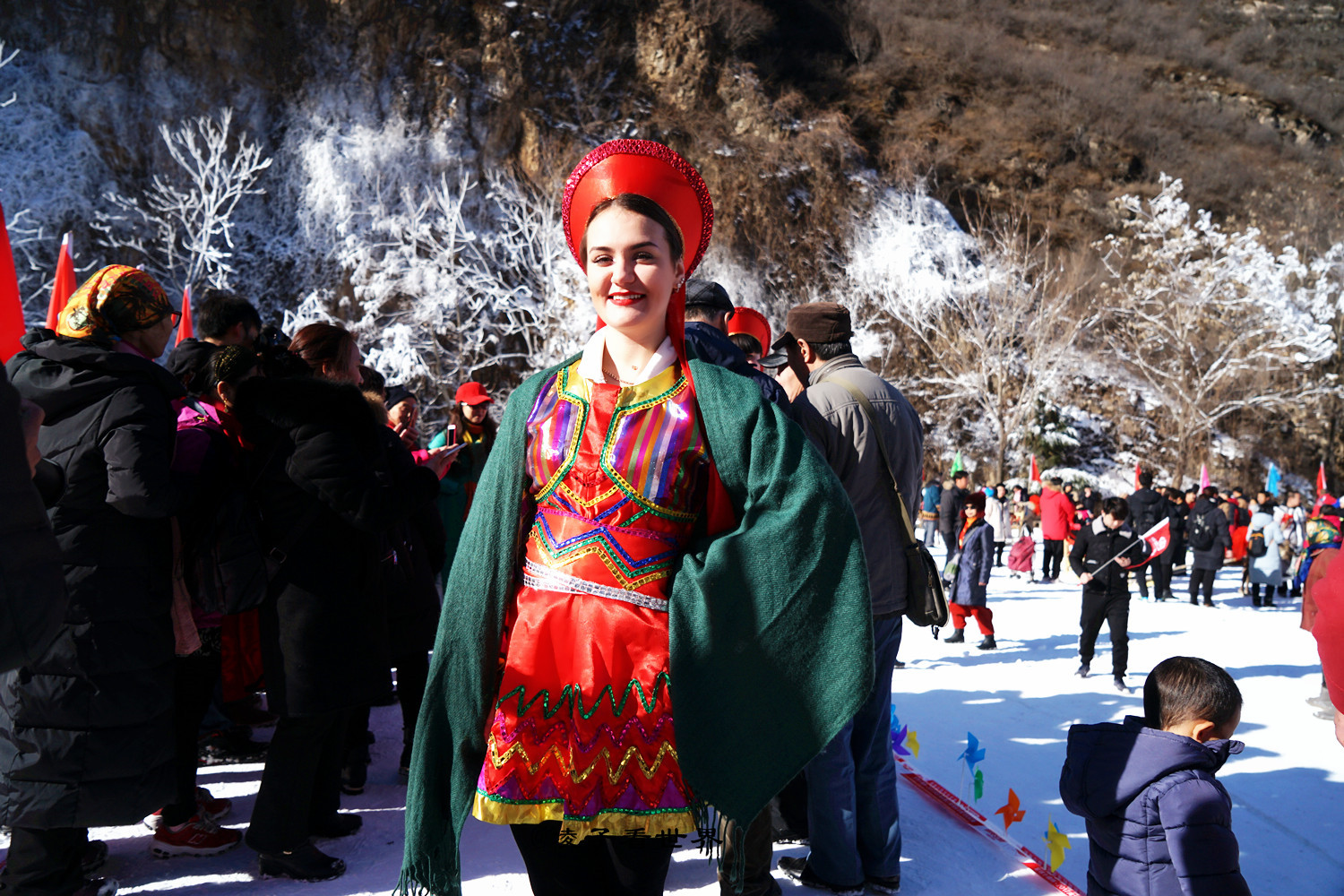 从北京到百里峡大约两个半小时的车程,很快就到了百里峡。远远的就听见锣鼓喧天,热闹异常,就看着一群群的人往雪谷里走。嗬!这人可真不少,走到雪谷广场才知道原来是今年冬季百里峡雪季狂欢节开幕,怪不得如此多的人。http://si1.go2yd.com/get-image/0J9qIcUQxNo