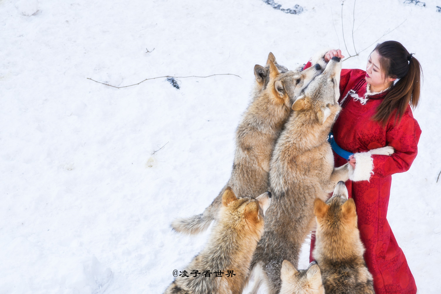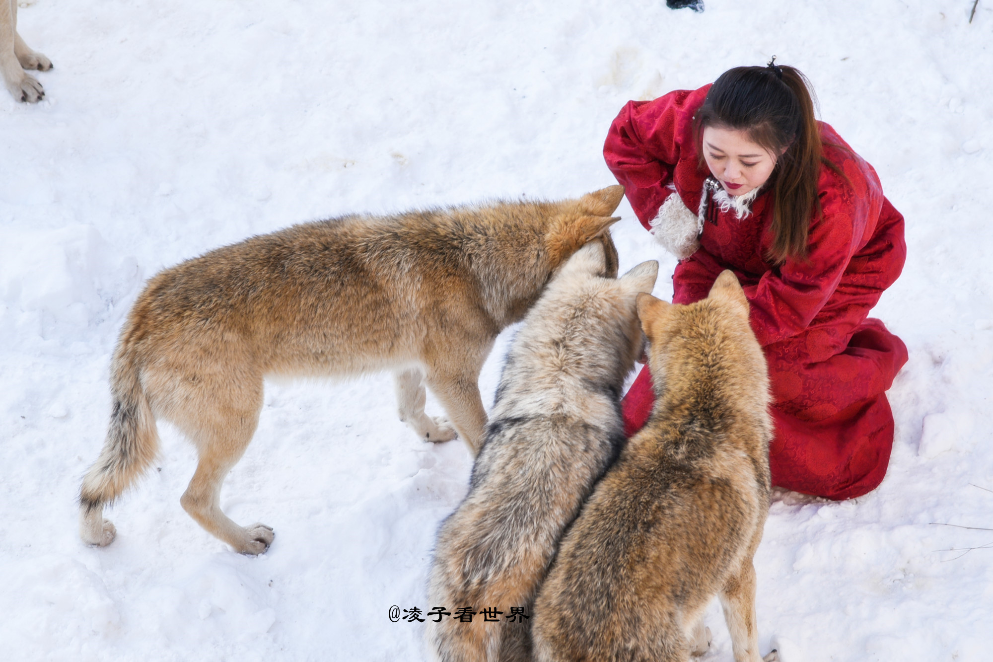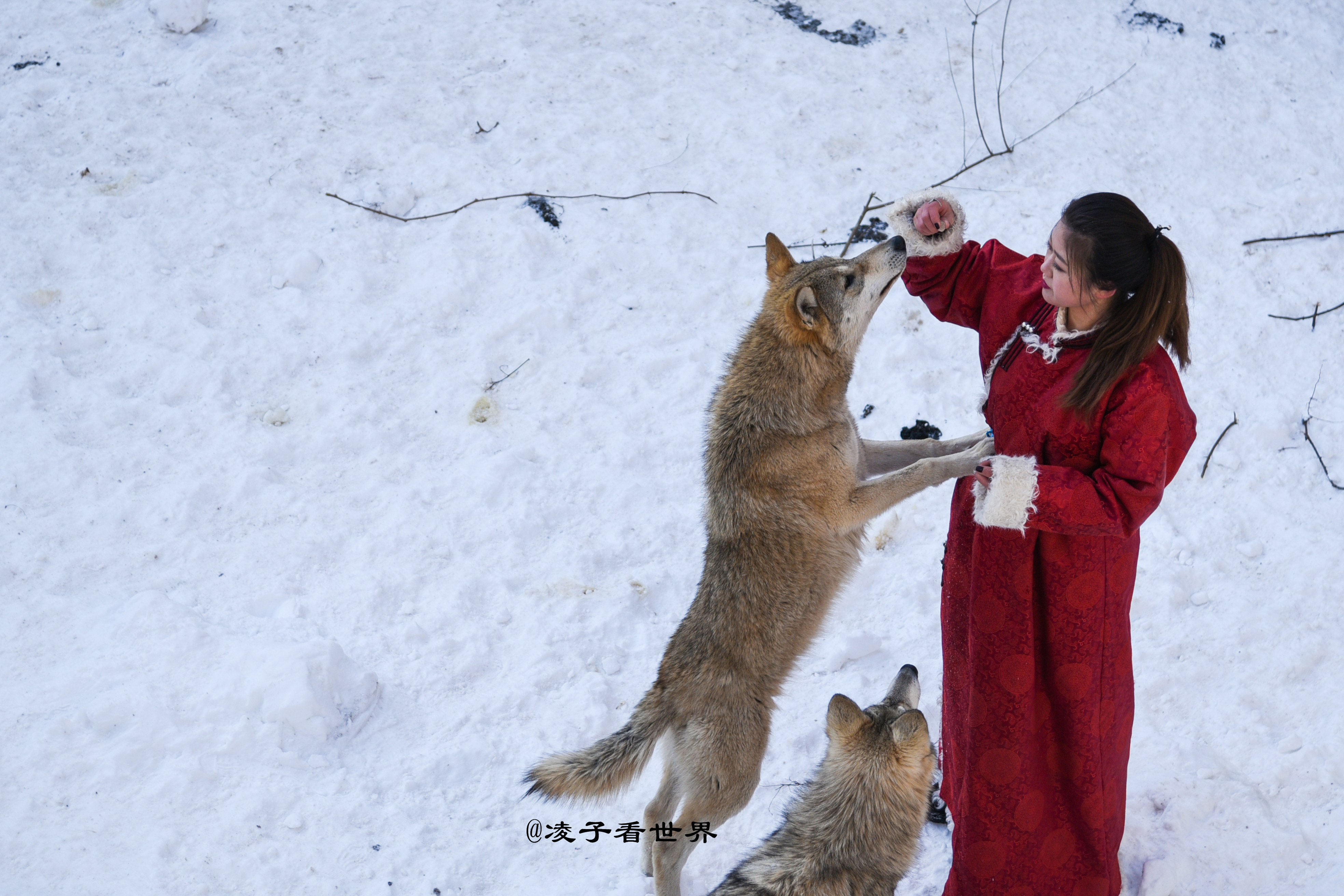 首届百里峡冰雪季居然引来了俄罗斯美女与狼共舞