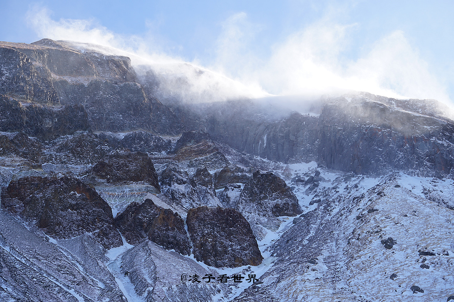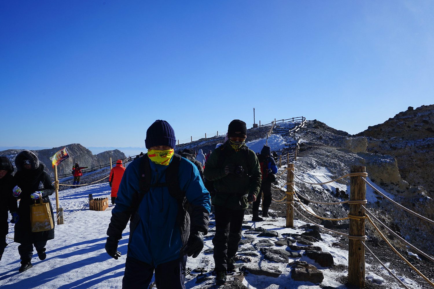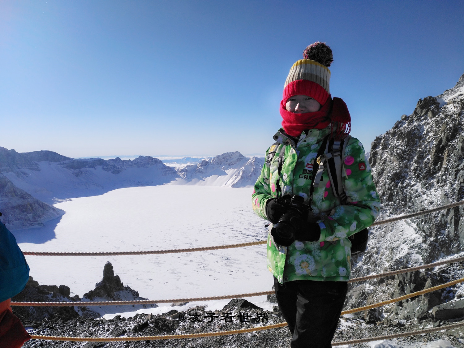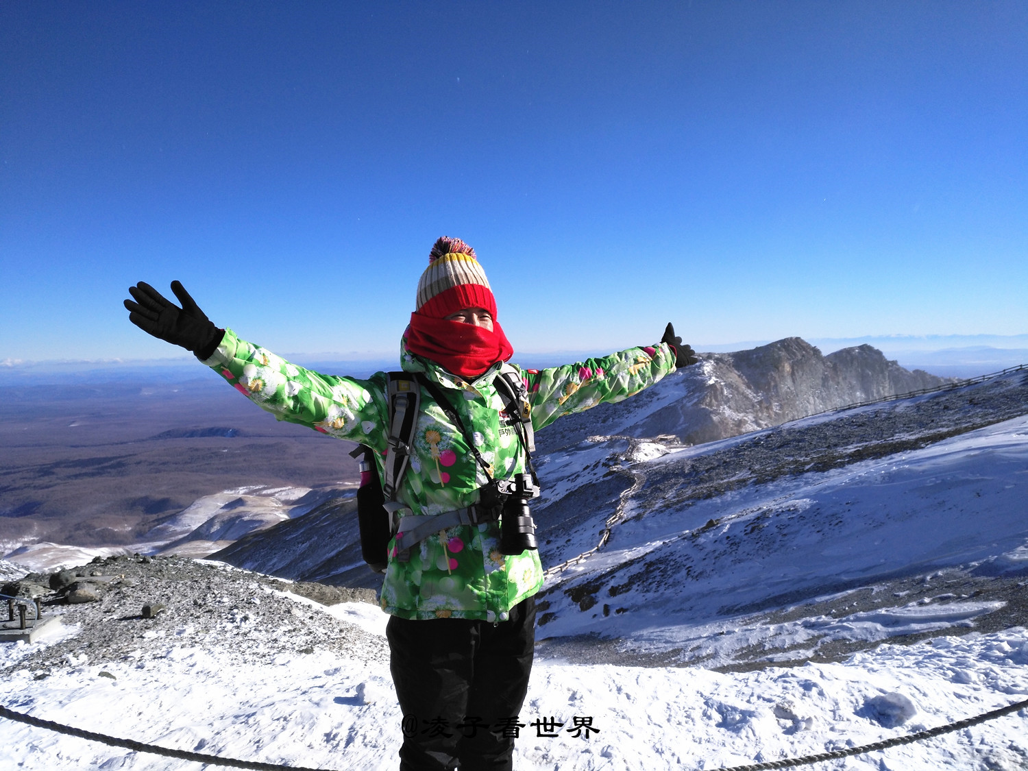 耳边呼啸而过的寒风,冷的让人不寒而栗,装进手套中的手如果拿出来,瞬间就会冻的麻木。来之前做了充足的准备,防寒的户外服,高筒棉靴,羊绒围巾,家里最厚的毛线帽子以及医用十六层的大厚口罩。似乎穿上这些也没有抵挡住这里的严寒,还是被瞬间吹的透心凉。尤其是相机和手机,拿出来就瞬间冻死机。不敢多逗留,匆忙拍了几张照片就下来了。建议要来的朋友多穿厚衣服,保护好相机。