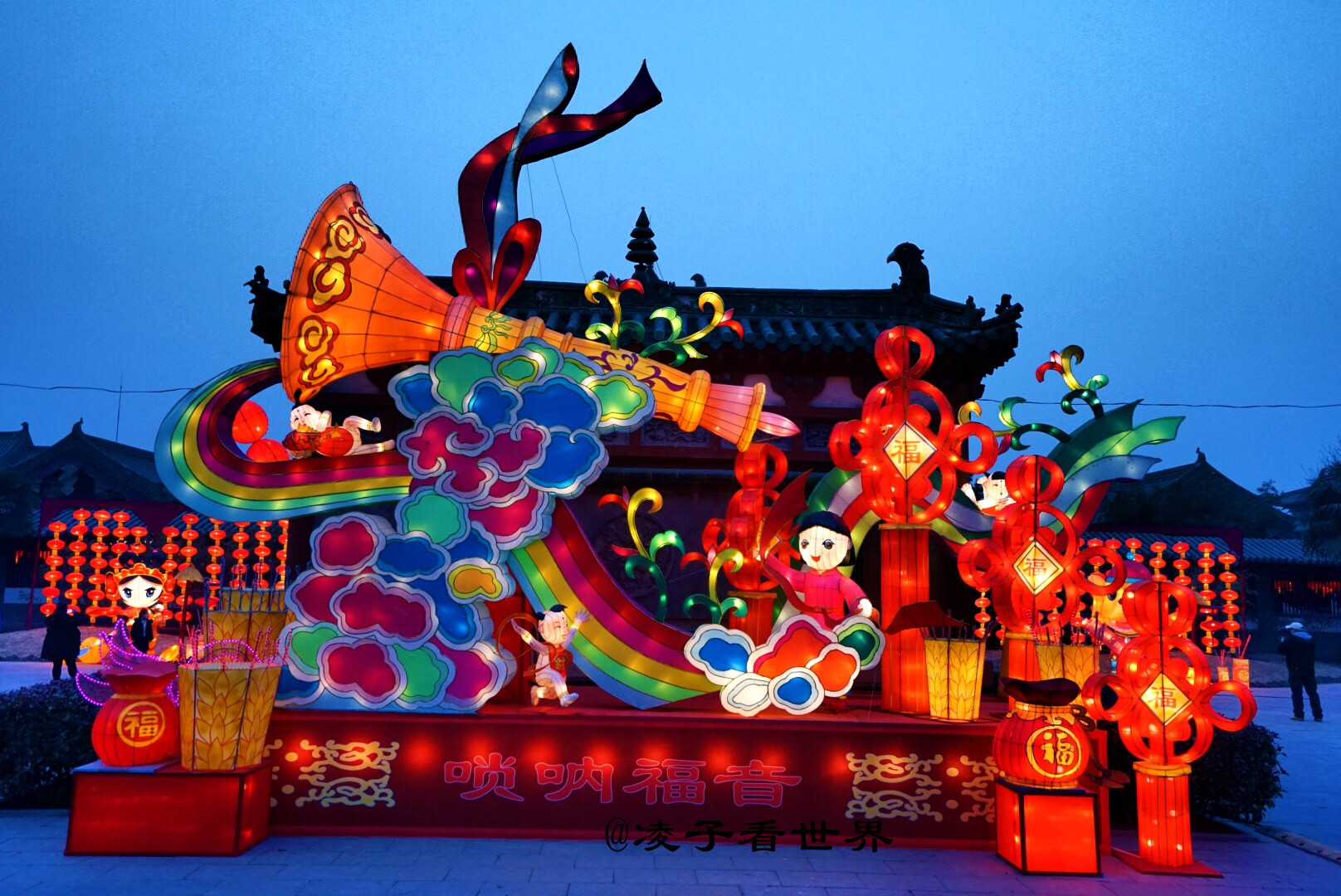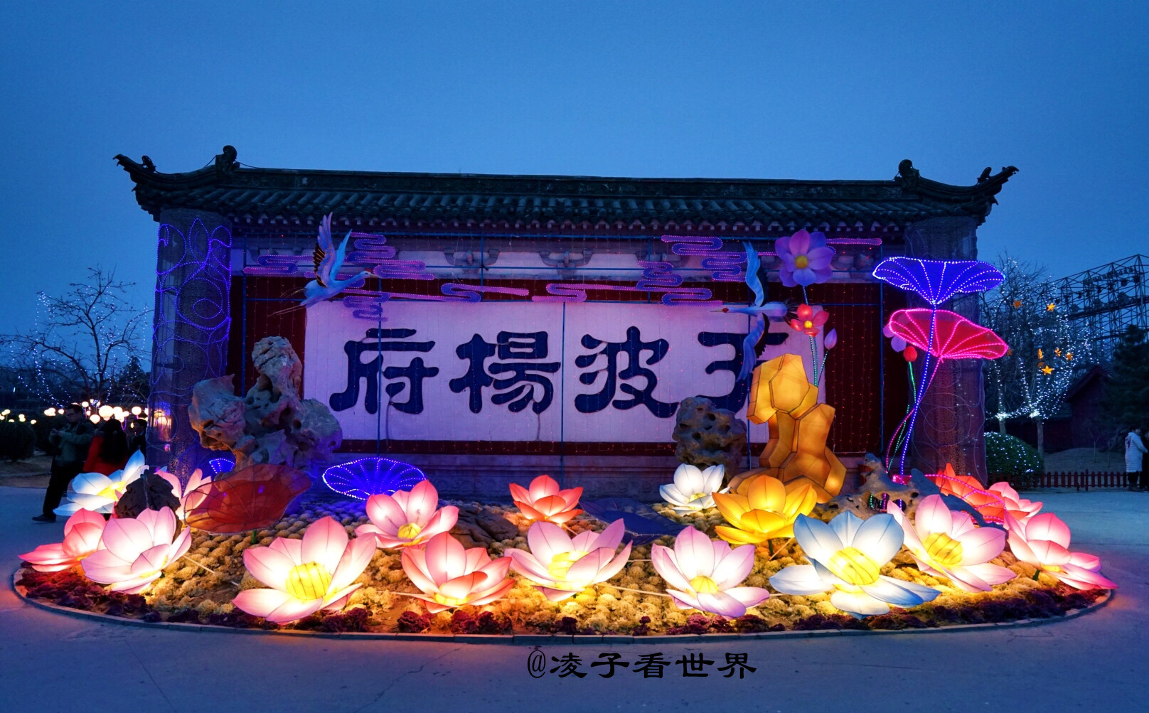 本届天波杨府灯会主题为“喜庆热烈、幸福吉祥”,旨在突出“杨府家宅”的年节氛围,而我游园赏灯的心情,可能跟其他游人稍有不同,毕竟我姓杨,尽管这是根据史料和传说重建的天波杨府,但还是有一种怀古思亲的情绪在我心中蔓延。