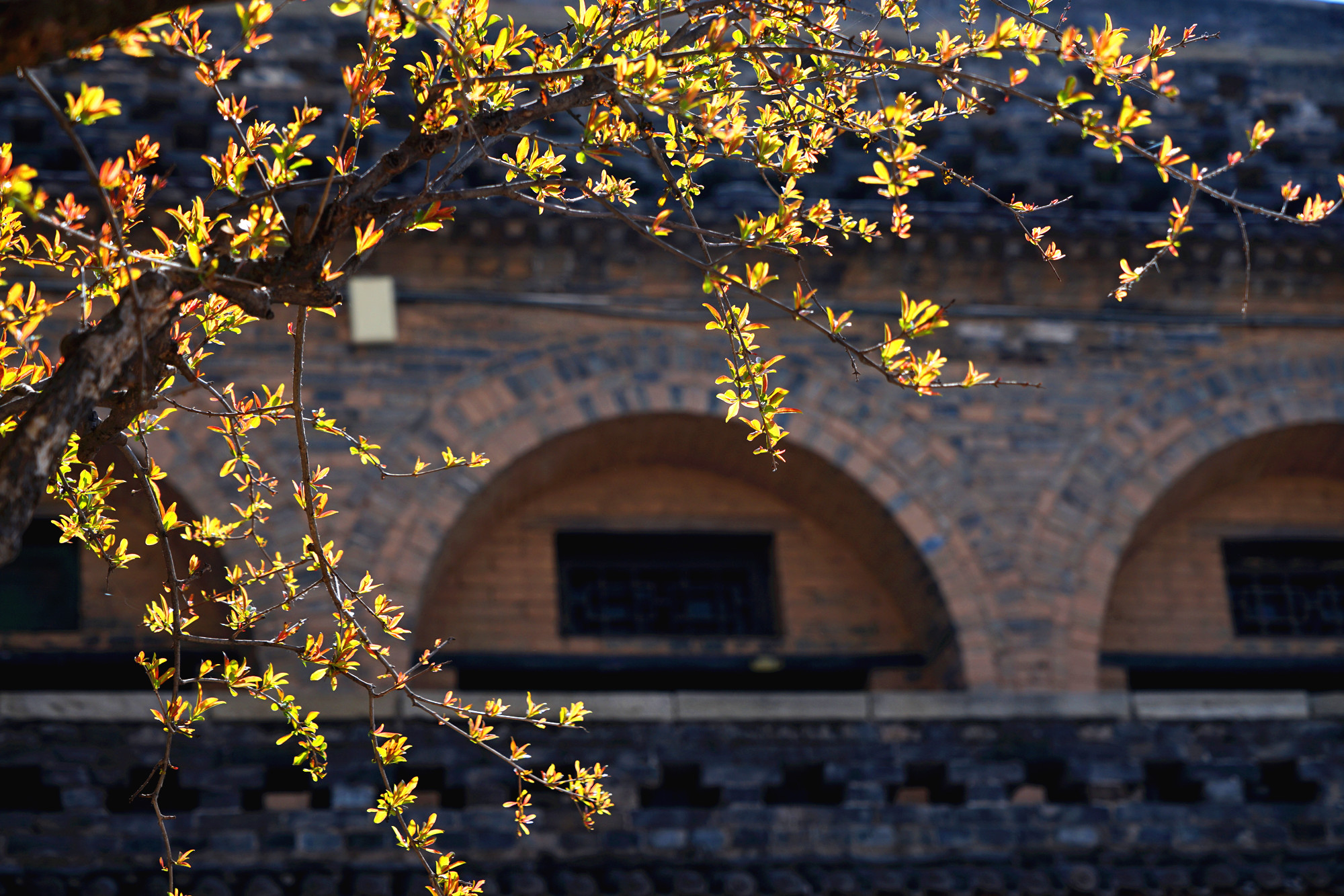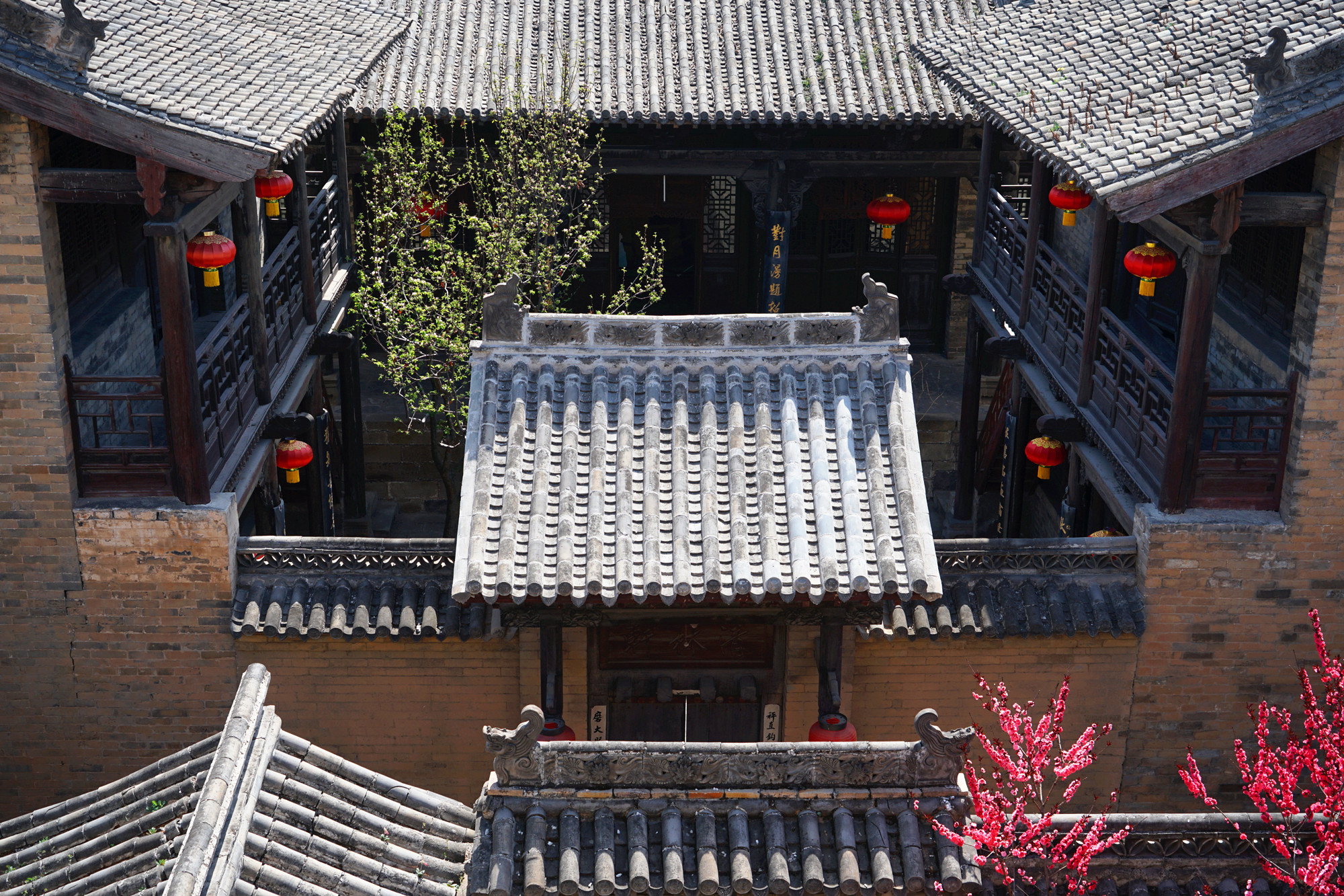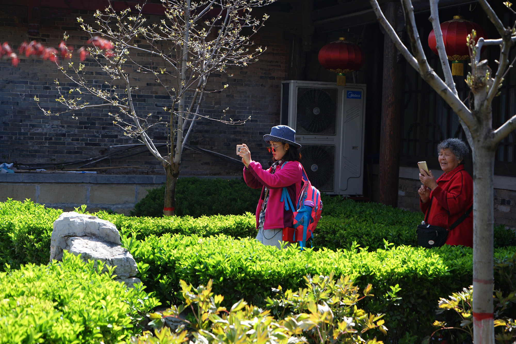 从小姐花园可以登上城墙,站在城墙之上,可以俯瞰整个院落,也可以把北留镇尽收眼底。看着院落中的一棵桃树与旁边的樱花争相怒放着,似乎要为这四月的皇城相府带来浓浓春韵。