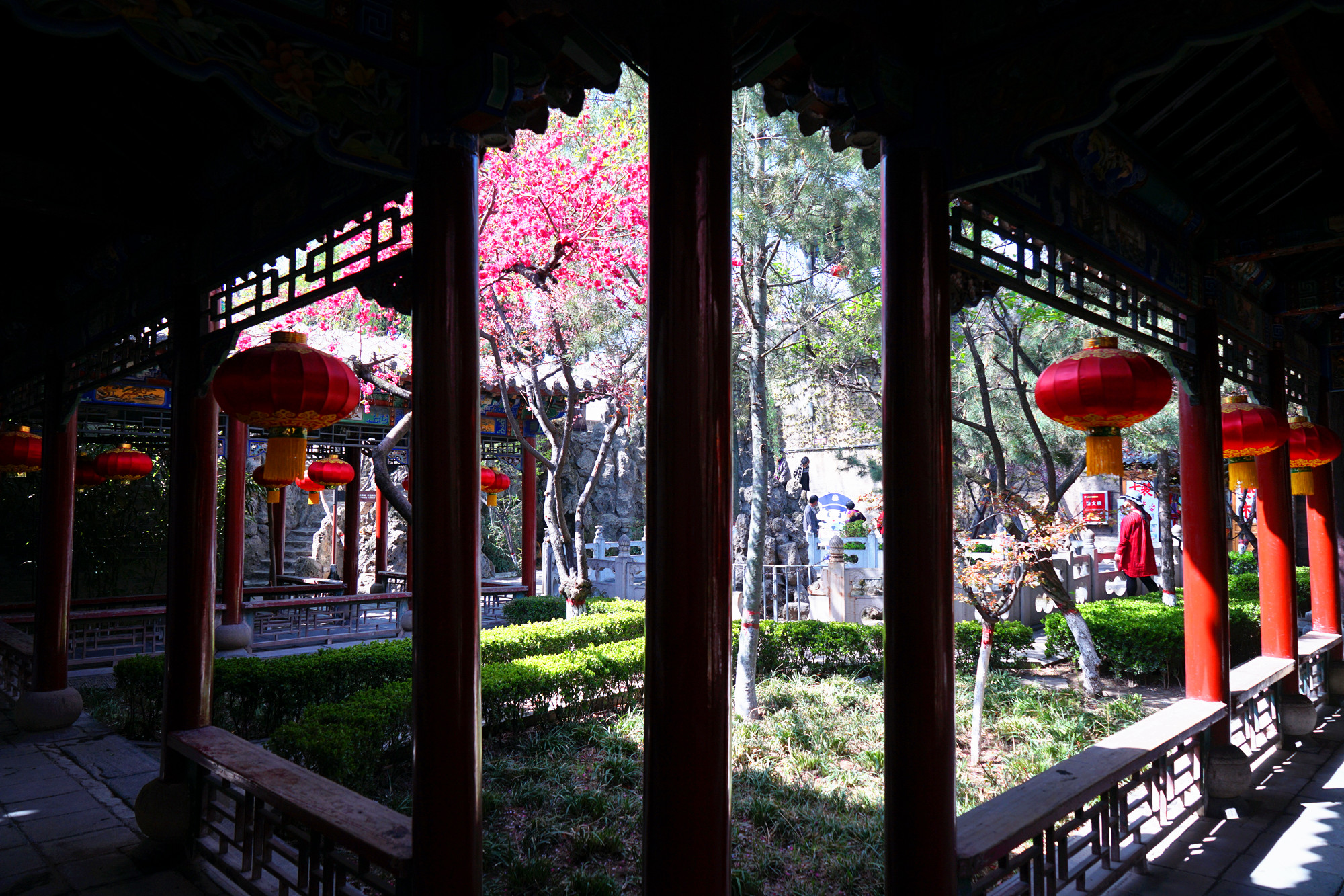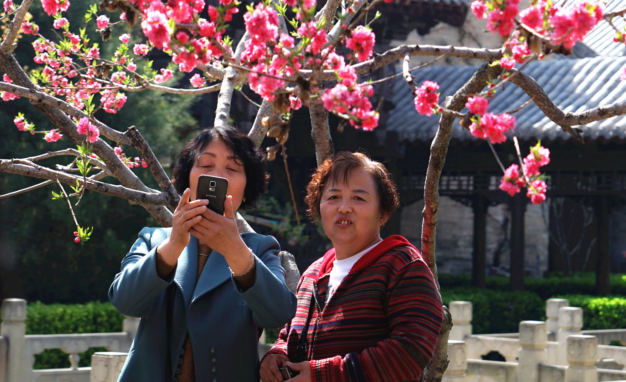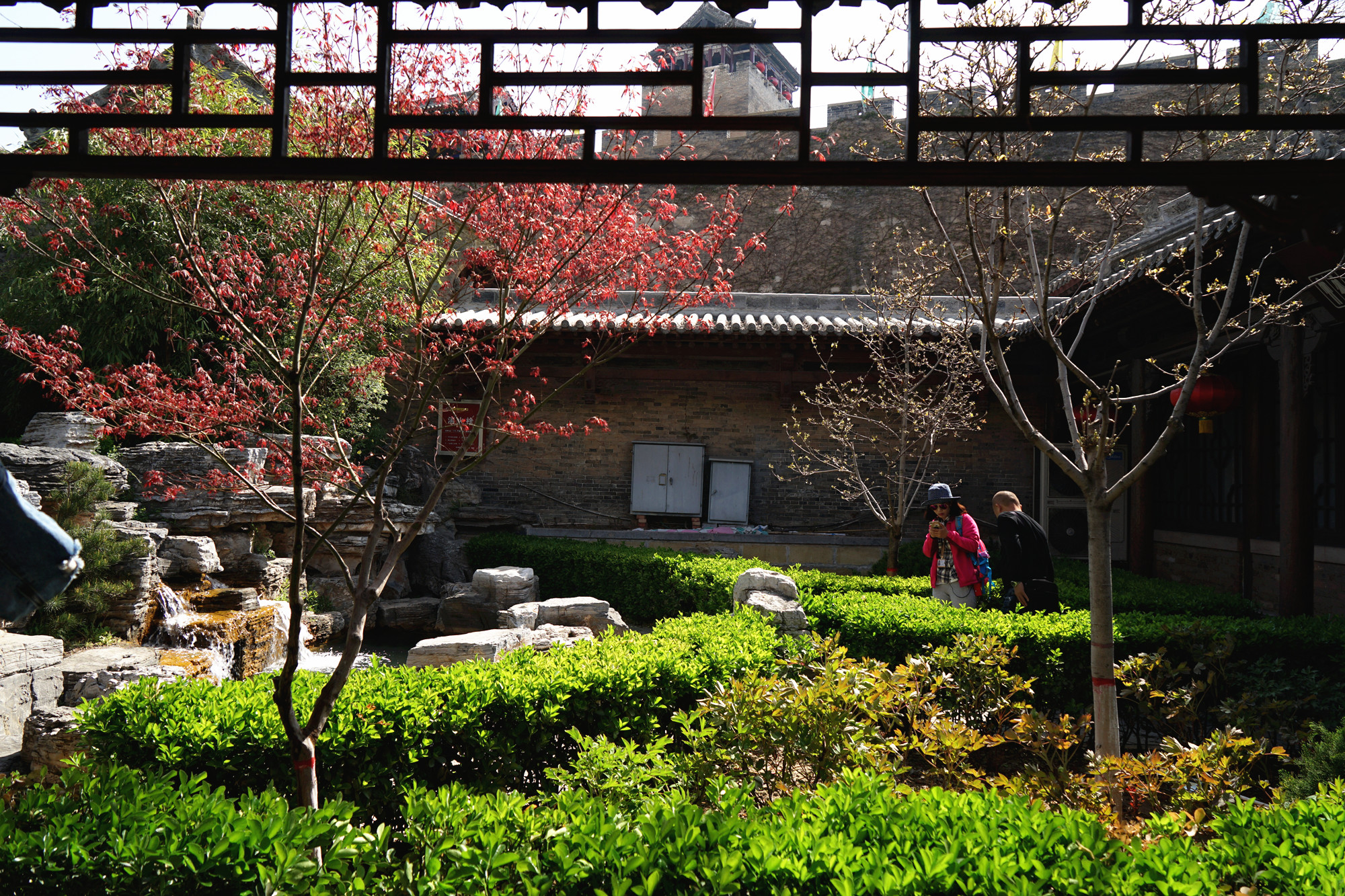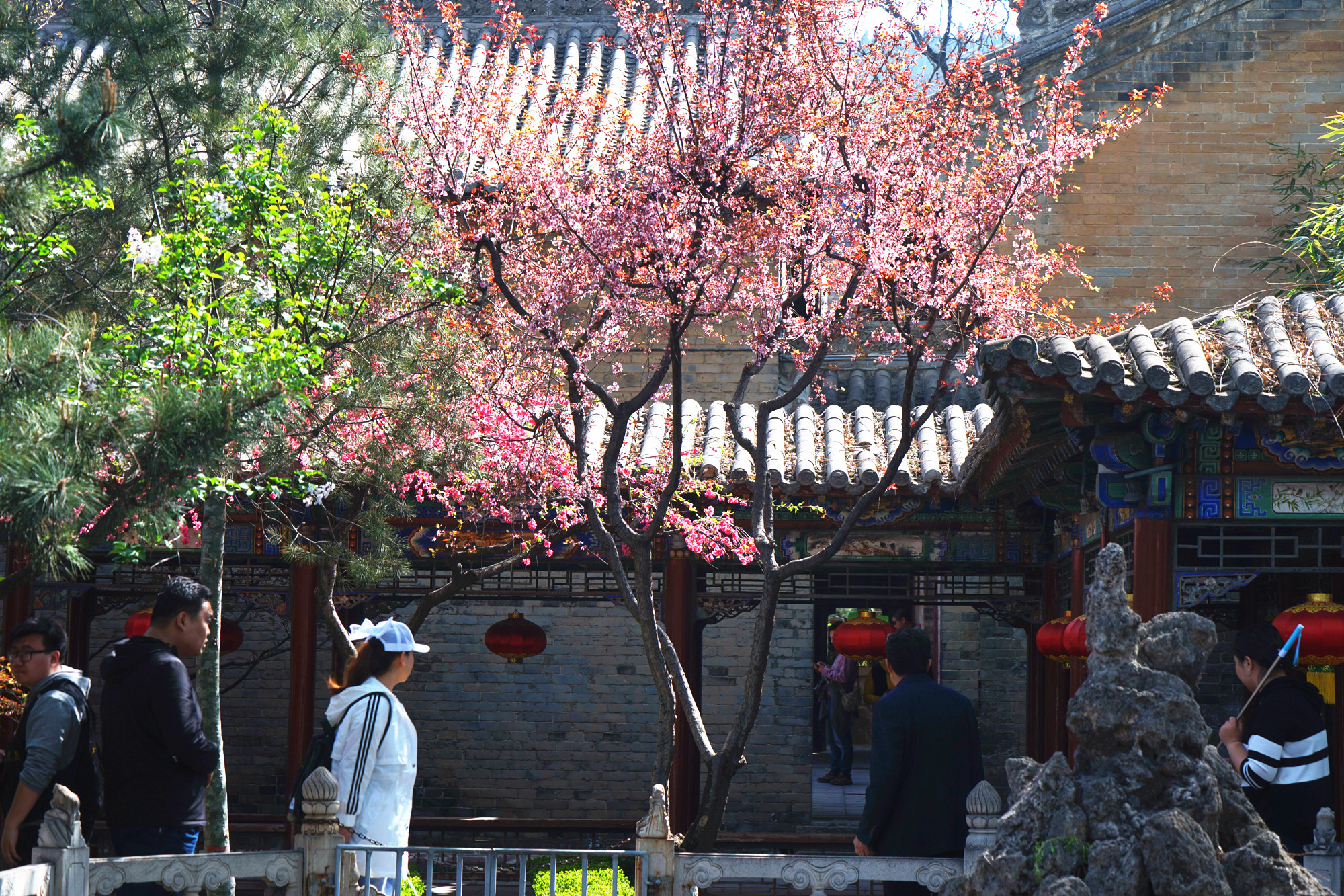 从小姐花园可以登上城墙,站在城墙之上,可以俯瞰整个院落,也可以把北留镇尽收眼底。看着院落中的一棵桃树与旁边的樱花争相怒放着,似乎要为这四月的皇城相府带来浓浓春韵。