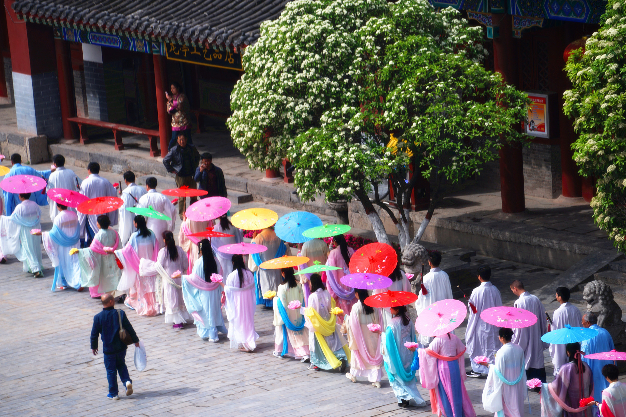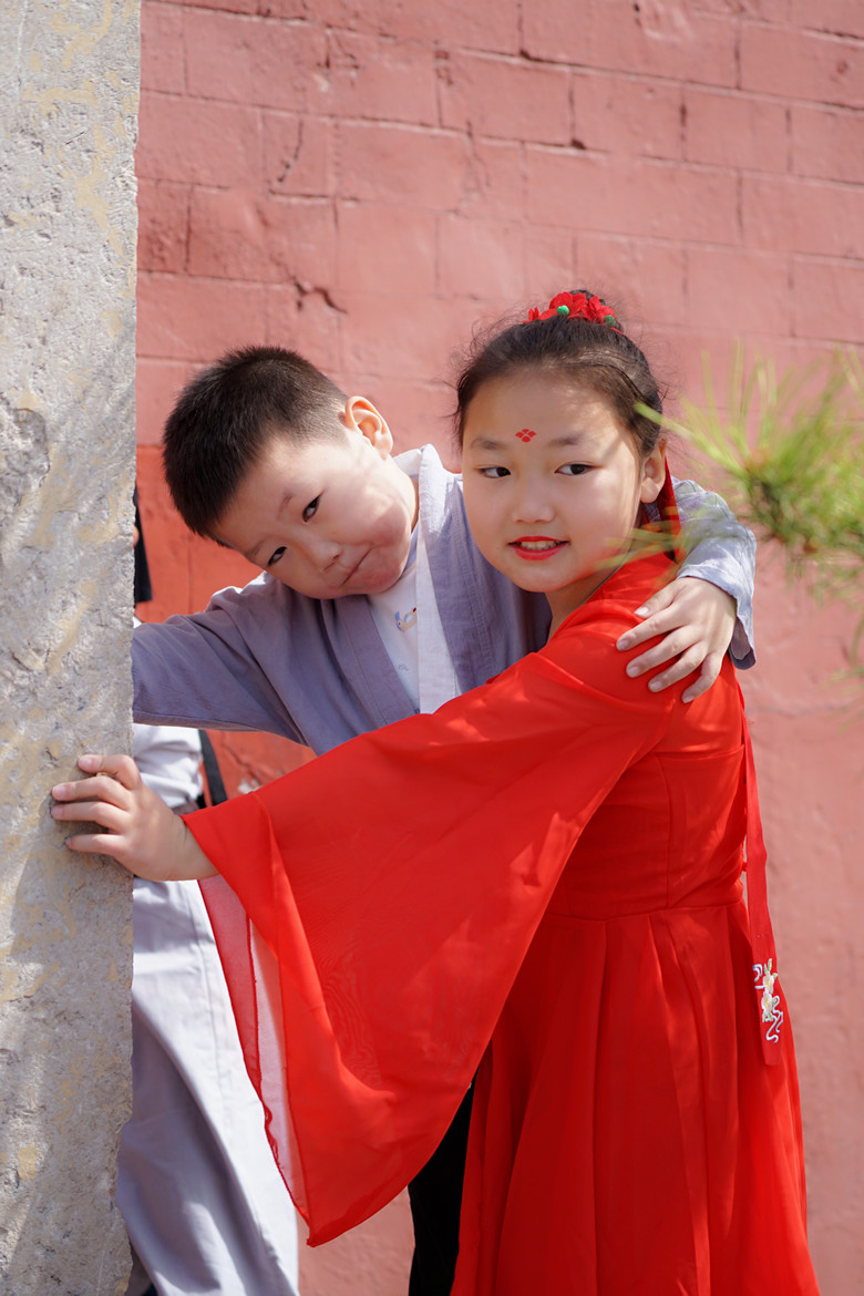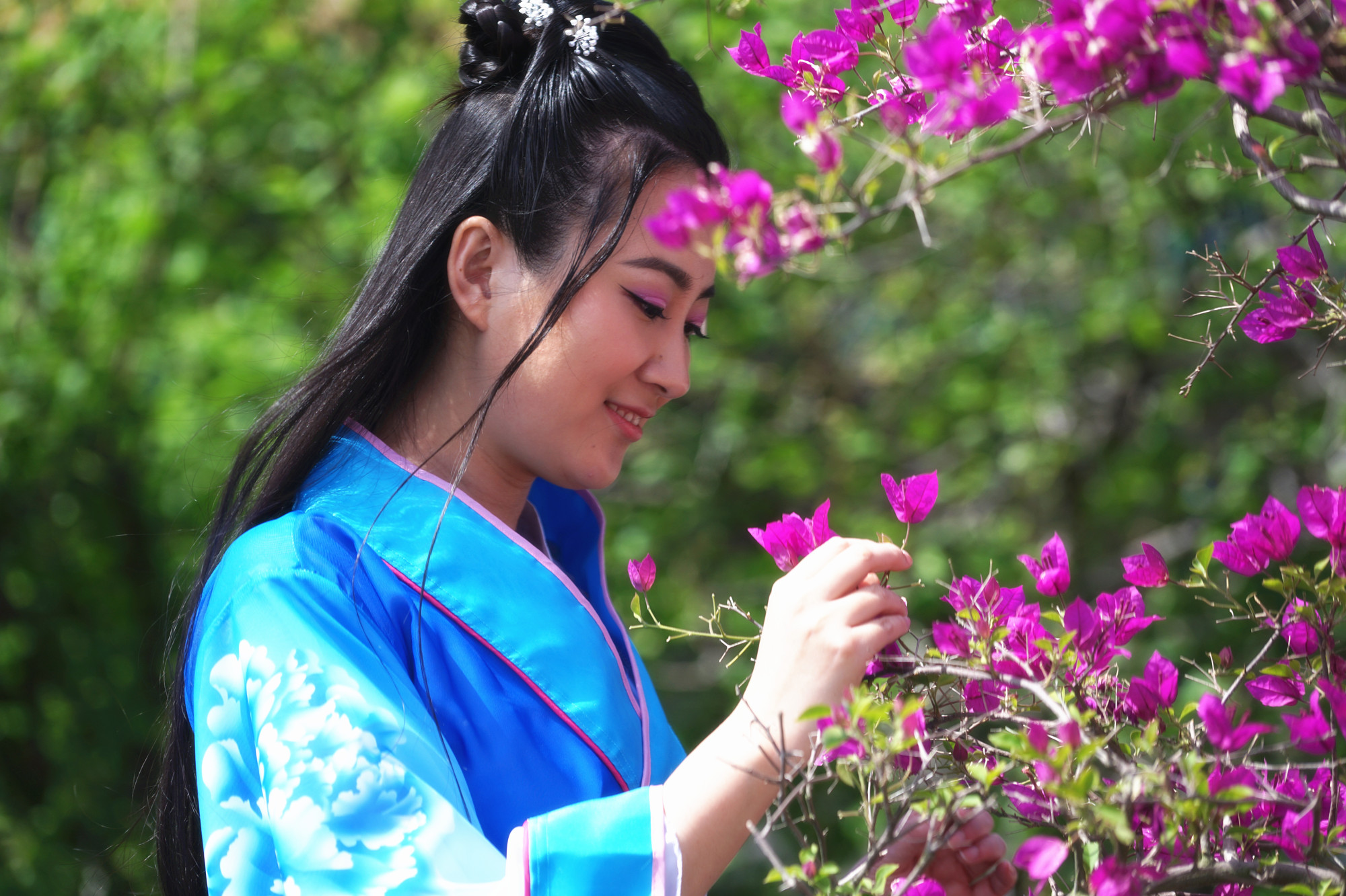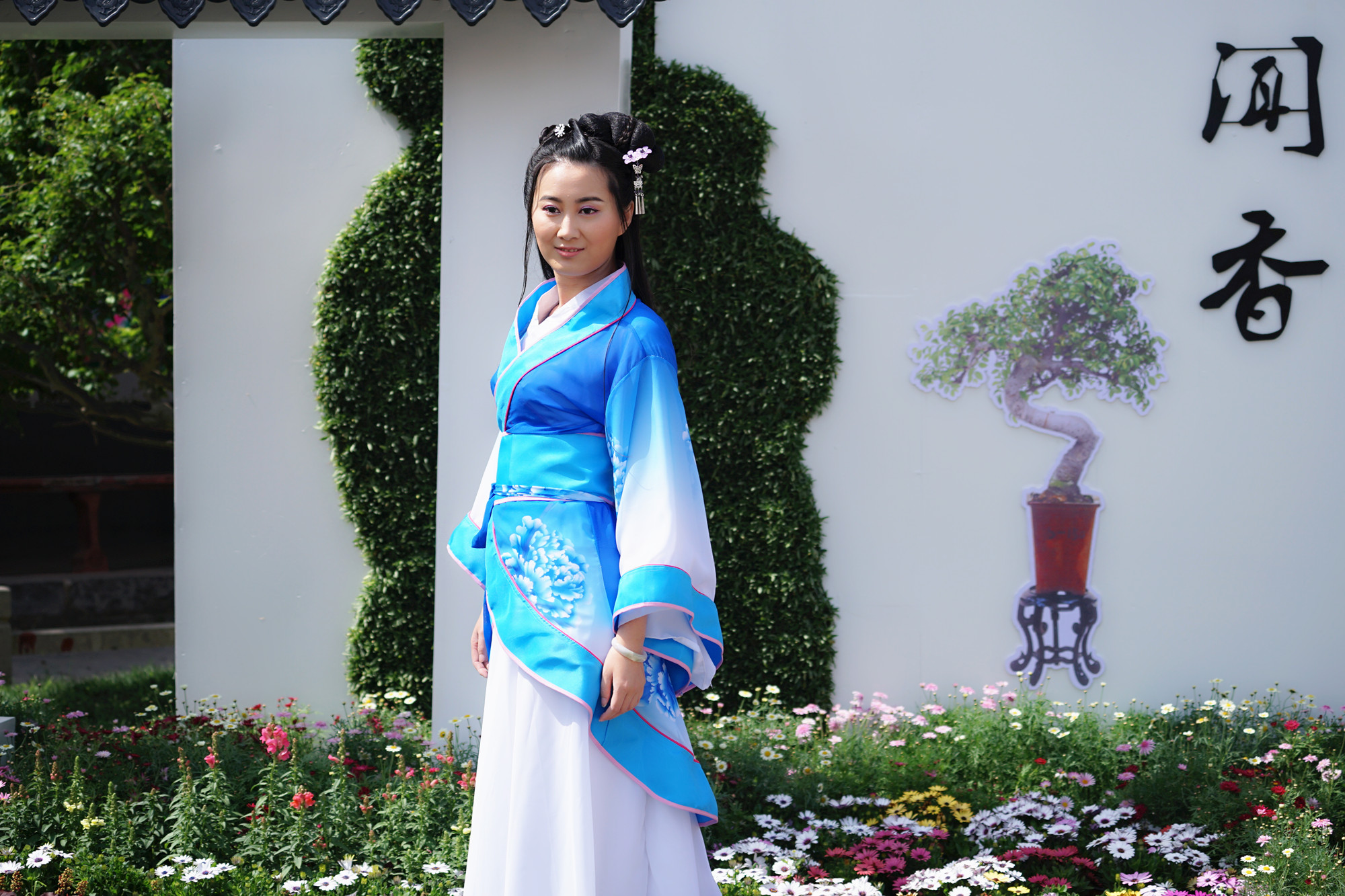 赏花的同时会有很多身着古装的俊男靓女穿梭在人群中,甚至是小朋友,老奶奶都不例外。