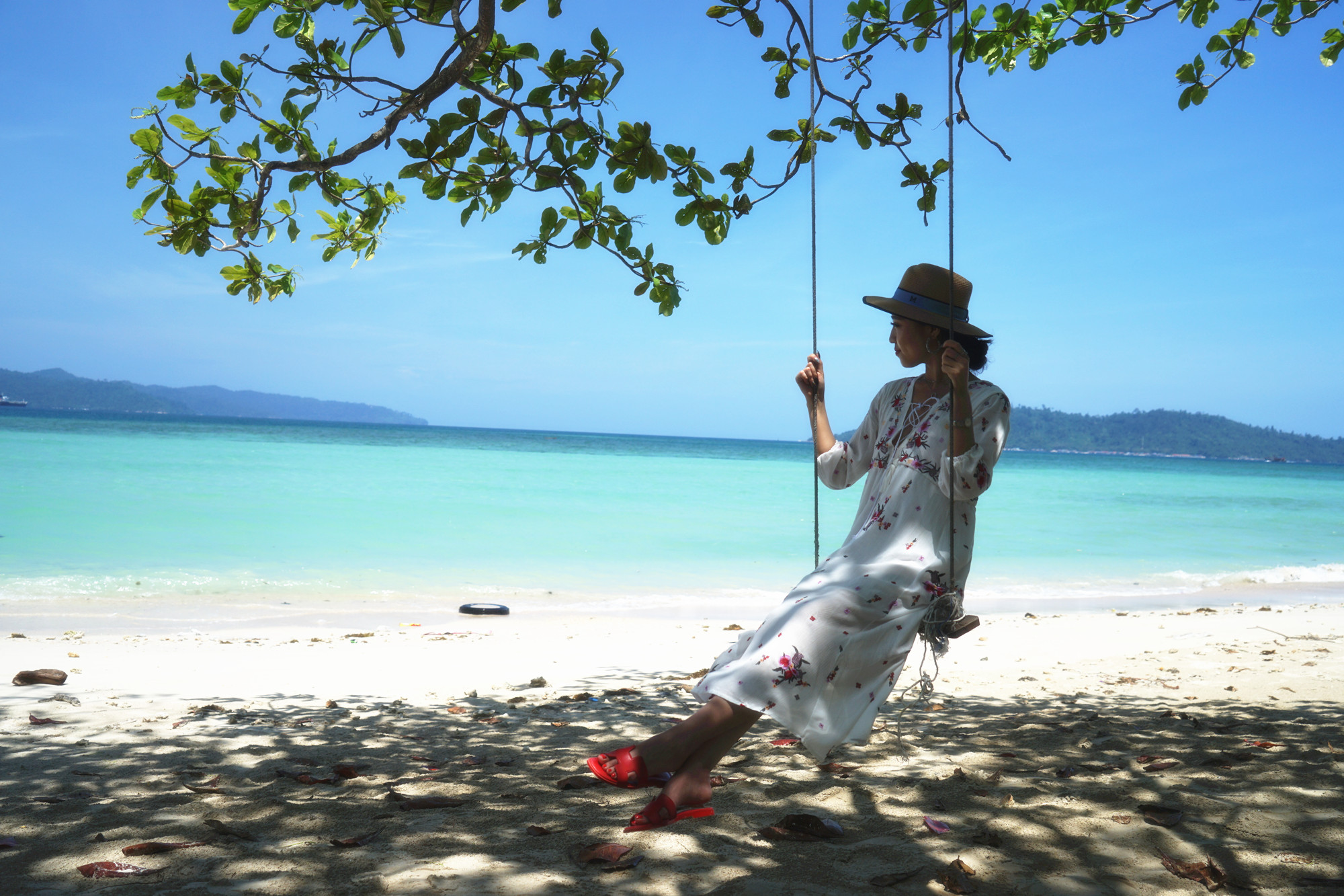 望着碧蓝的大海,草帽姐妹不停的在海边摆着各种优美的pose,不知是这里太美,还是因为她们太美。纯净的海水,蓝中泛着一丝丝的绿意,洁白的沙滩美的都不忍心去踩踏。树下摇曳的秋千是姑娘们最喜欢的,惬意的摇来摇去,任由柔柔的海风随意的轻抚。一望无际的大海,海天一色,如果不是姑娘们在海边嬉戏,恍惚间就分不清那个是天那个是海。