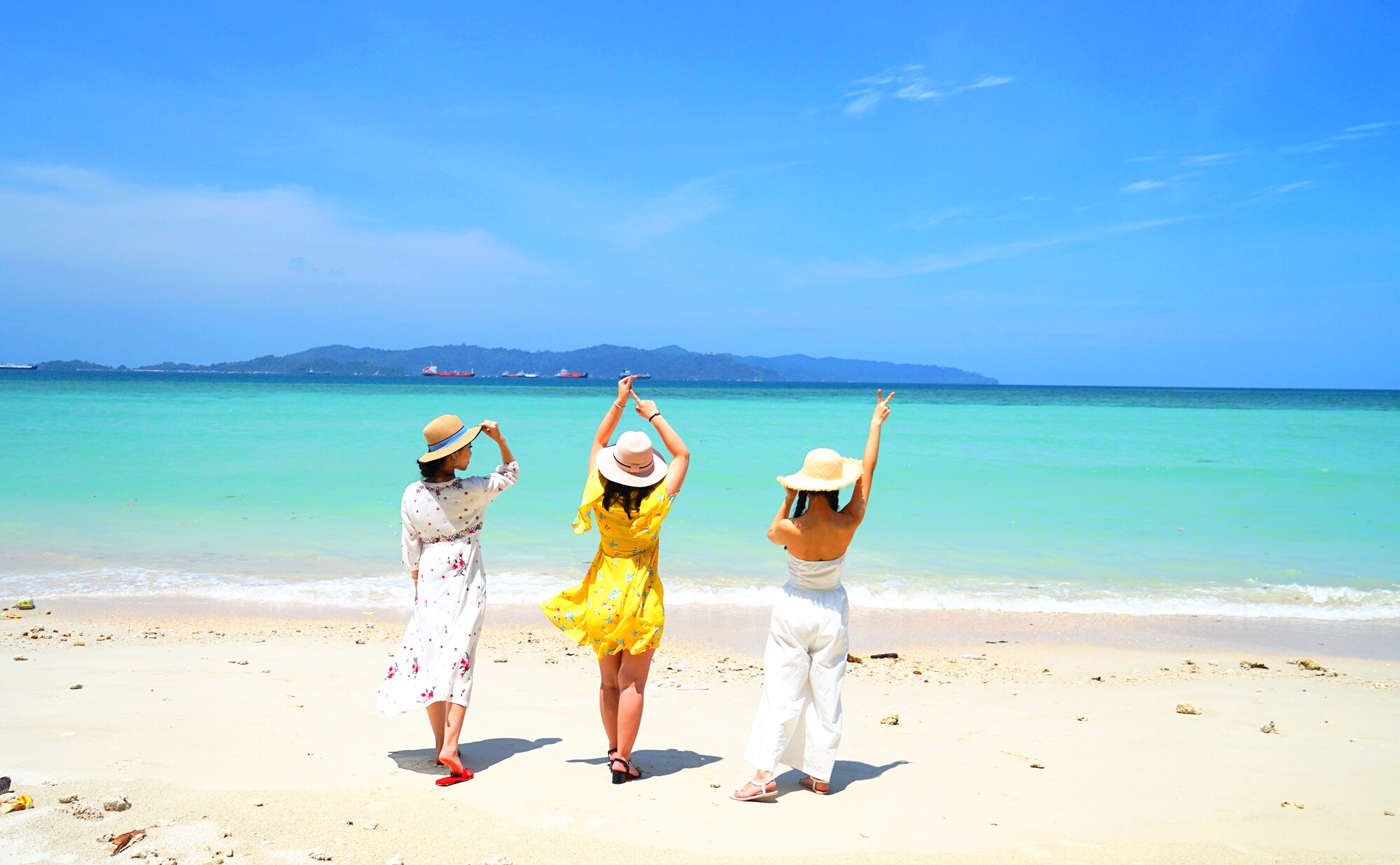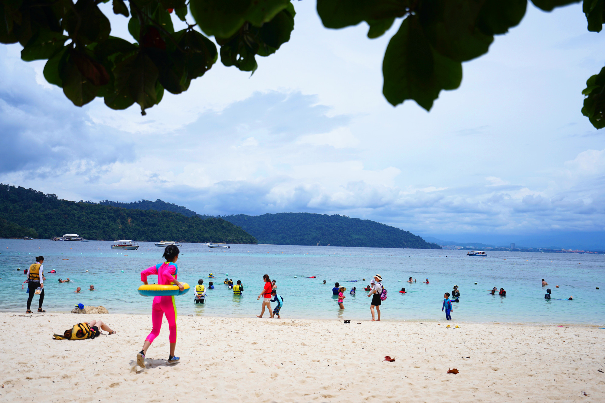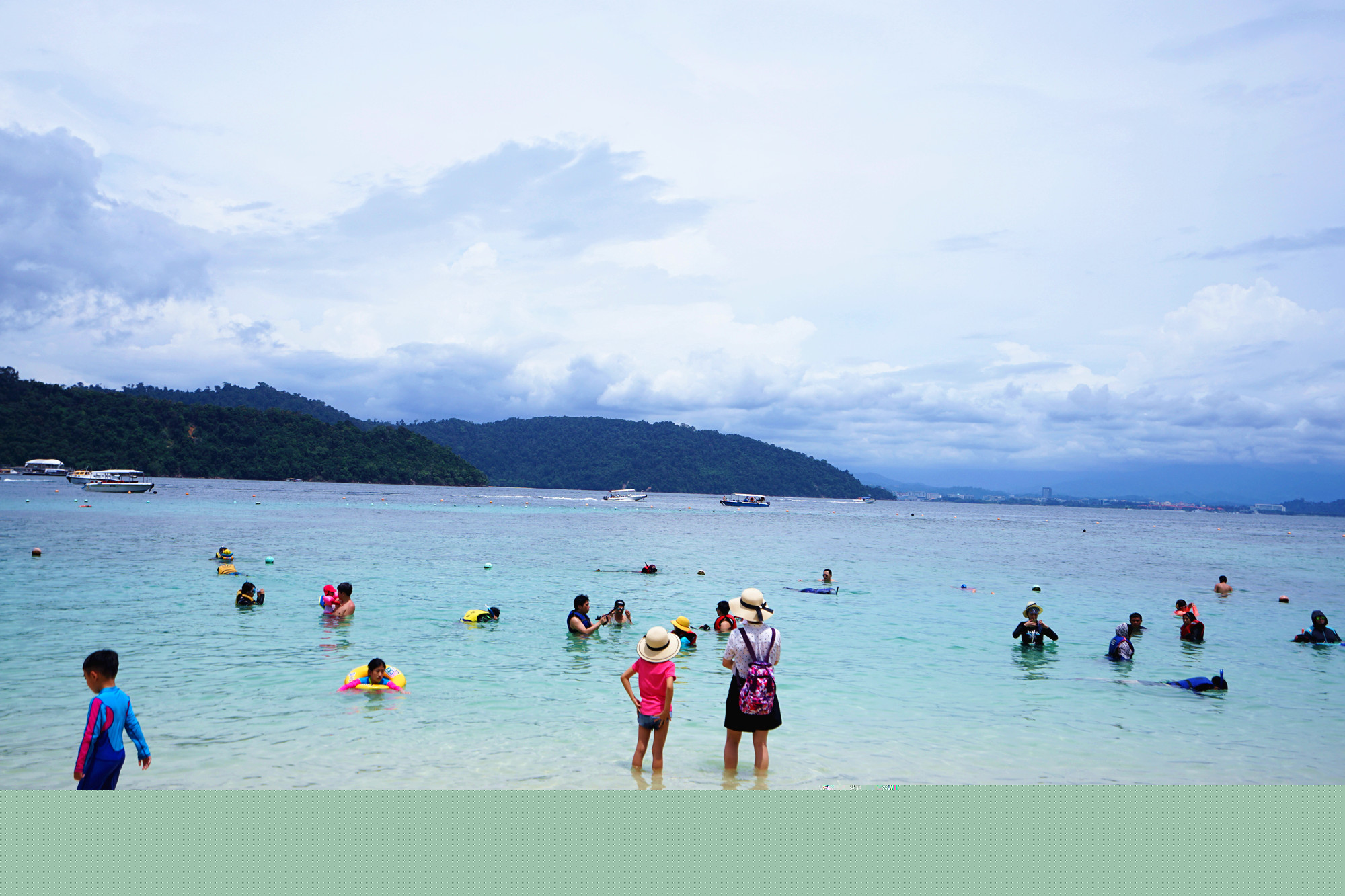 一上岛就被眼前的水震撼了,这水也太清澈了吧,海里的小鱼儿尽收眼底,海底的石头似乎伸手就能摸到。满心的喜悦,恨不能跳下去抓鱼。岛上有很多休息的地方,放眼望去几乎都是我们国内过去的,所以岛上的工作人员几乎都说汉语,沟通没有障碍。找好休息的地方,放下贵重物品,有人看管。金色的沙滩细腻柔软,海天一色,周边水域到处都是美丽的珊瑚。比起沙巴大学宁静优美的沙滩,这里就繁荣了许多,沙滩上人较多,热闹。两个是截然不同的感受。