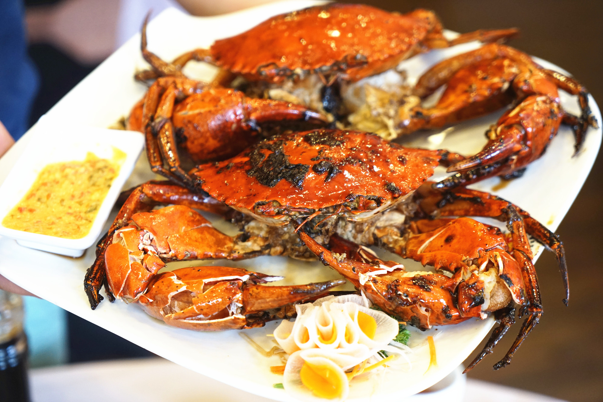 酒店旁边有一家蟹皇海鲜餐厅,这里的烧螃蟹口味真是好,而且螃蟹的个头都很大,吃起来肥美,吃一个都不过瘾,还得吃两个。论个头卖,比起国内的还是便宜多了,必须吃。