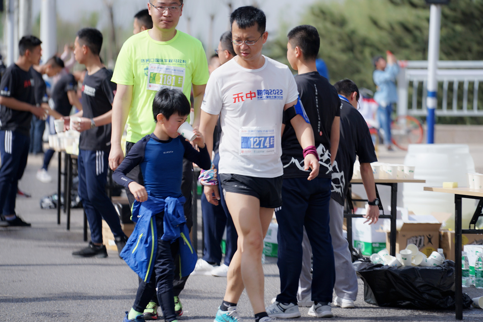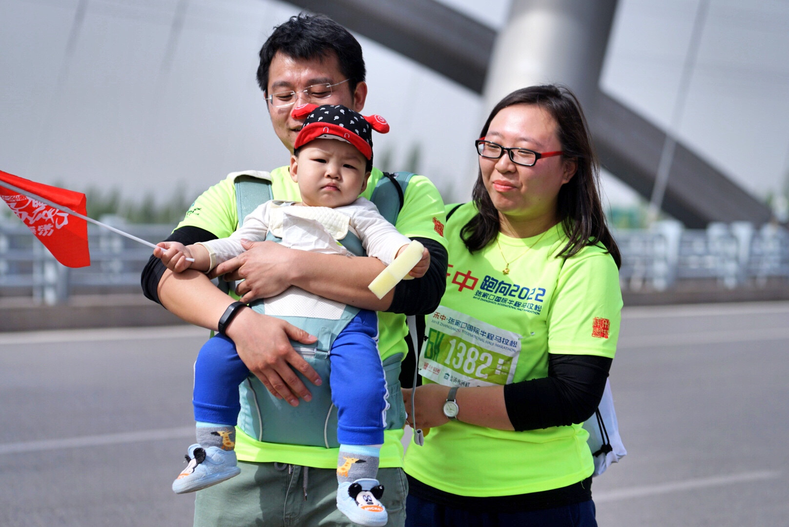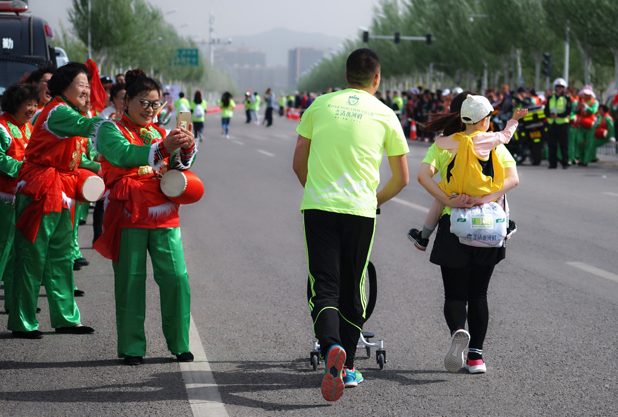 这就是那个最小的参与者,还在父母怀抱中的他,随着爸爸妈妈一起跑完了迷你6公里马拉松,最值得赞扬的是,他一直都是被爸爸抱着跑完全程的,这父母太牛,点赞。中途还不忘在补给站吃一口香蕉,多可爱的一家人。