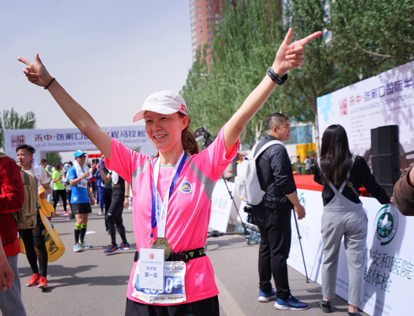 赛场上的美女们那可是巾帼不让须眉,看看这位就是这次取得张家口半程马拉松赛女子组冠军,名叫张利红是一位公交车司机,而且还是张家口的人,这美女厉害,不愧是老司机,点赞!第二名是来自天津的李红梅,第三名来自北京胡前英,她们都是太棒了。