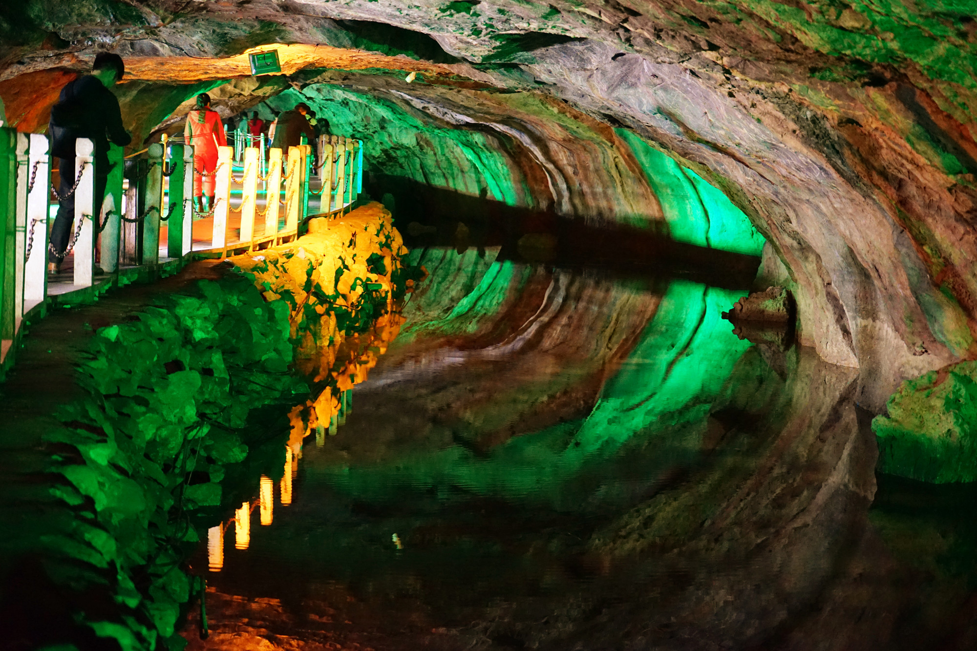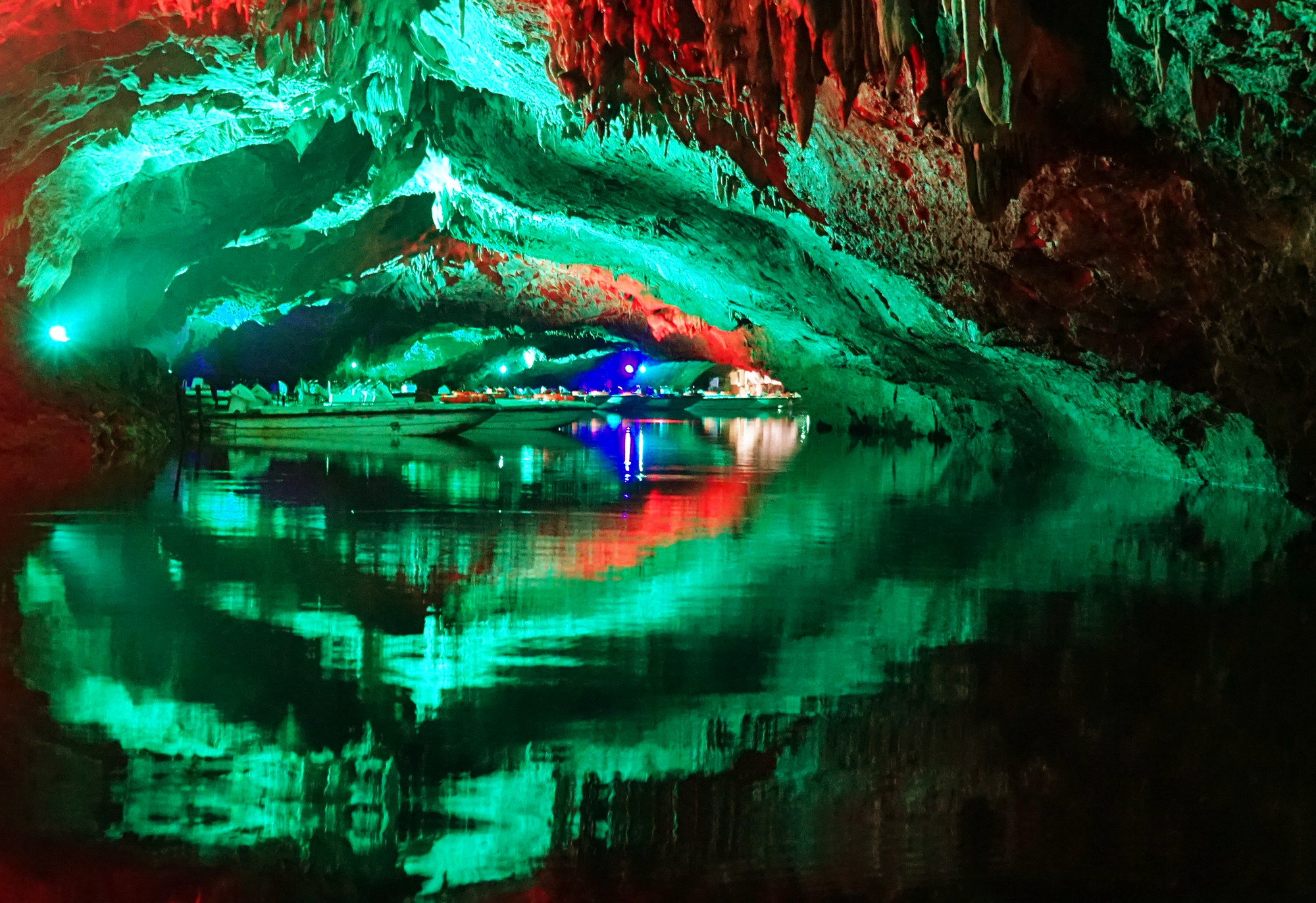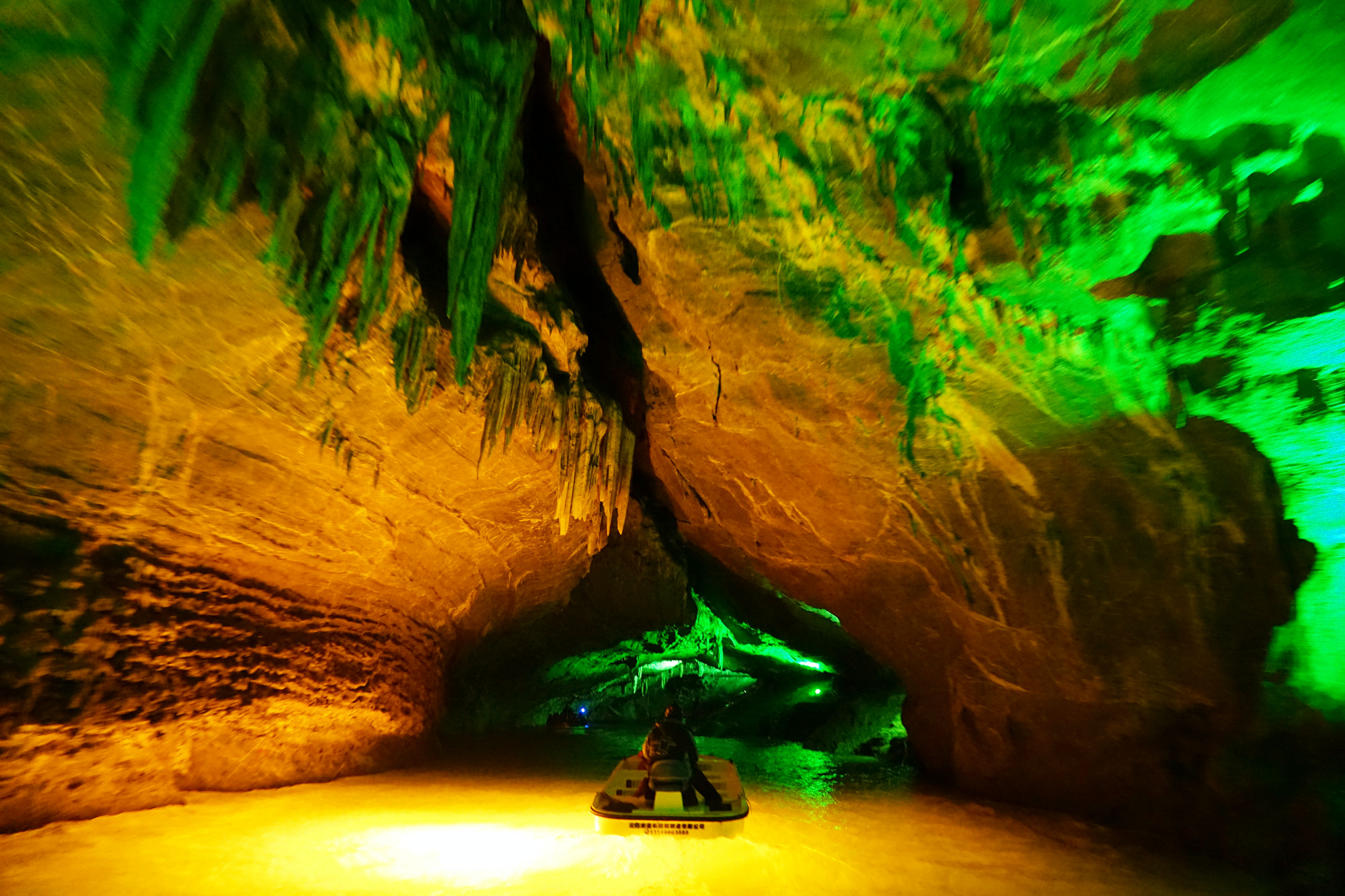 乘船游览溶洞一定要趁早,最开始进去会看到别人看不到的倒影奇观,洞中的水纯净透亮,清澈见底。水面平静如镜,看到的人都不敢大声说话,怕惊扰到这寂静的水,这梦幻的景。如果有幸第一个上船,而且还是第一艘船的话,可以坐在最前面一排,这样就可以无任何干扰的好好欣赏,九曲十八弯的险峻,它的不同变化,它那如时光隧道般的奇幻倒影。