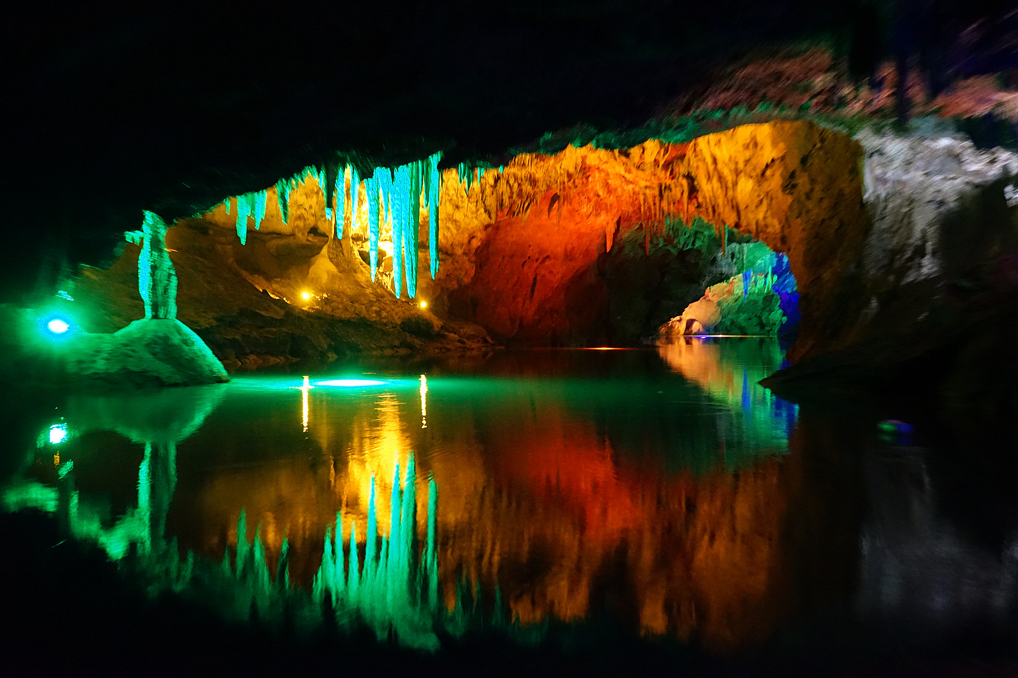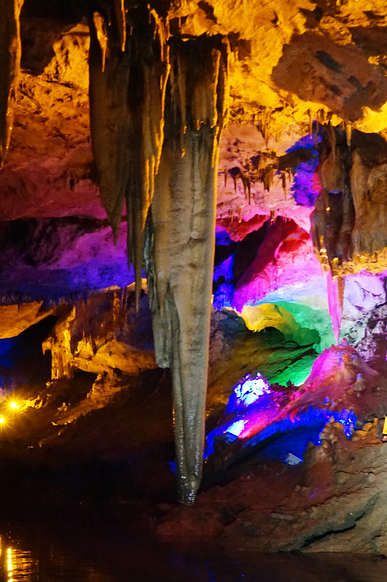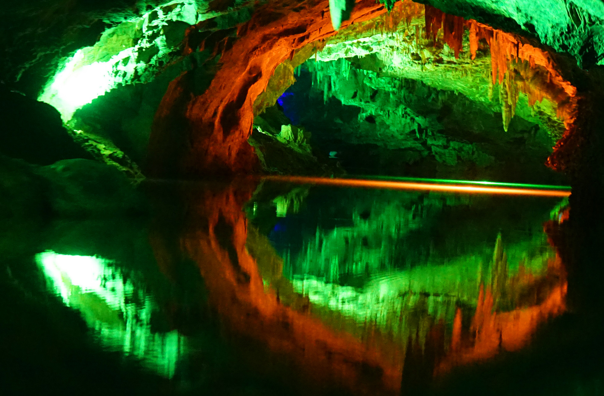 乘船游览溶洞一定要趁早,最开始进去会看到别人看不到的倒影奇观,洞中的水纯净透亮,清澈见底。水面平静如镜,看到的人都不敢大声说话,怕惊扰到这寂静的水,这梦幻的景。如果有幸第一个上船,而且还是第一艘船的话,可以坐在最前面一排,这样就可以无任何干扰的好好欣赏,九曲十八弯的险峻,它的不同变化,它那如时光隧道般的奇幻倒影。