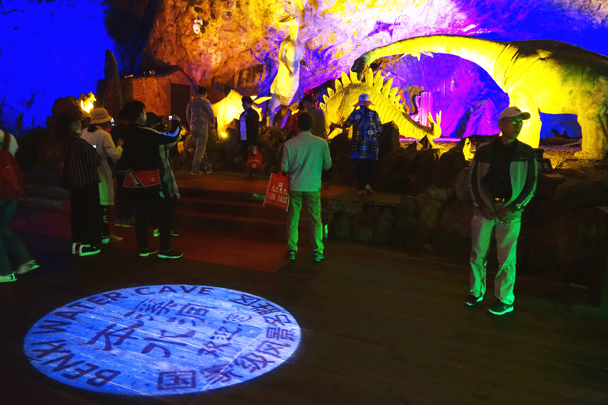 水洞确实和我想象的不一样,以前看到的溶洞很少有水,即使有也是一小部分。而本溪水洞最大的亮点就是这个溶洞完全是要坐着小船才可以游览的。水洞的入口处很大,居然可以容纳几十条快艇在这里。水洞入口右手边是一个旱洞,里面一点水都没有,最大的一个洞穴里有恐龙可供欣赏,还有一些古人类劳作的场景。