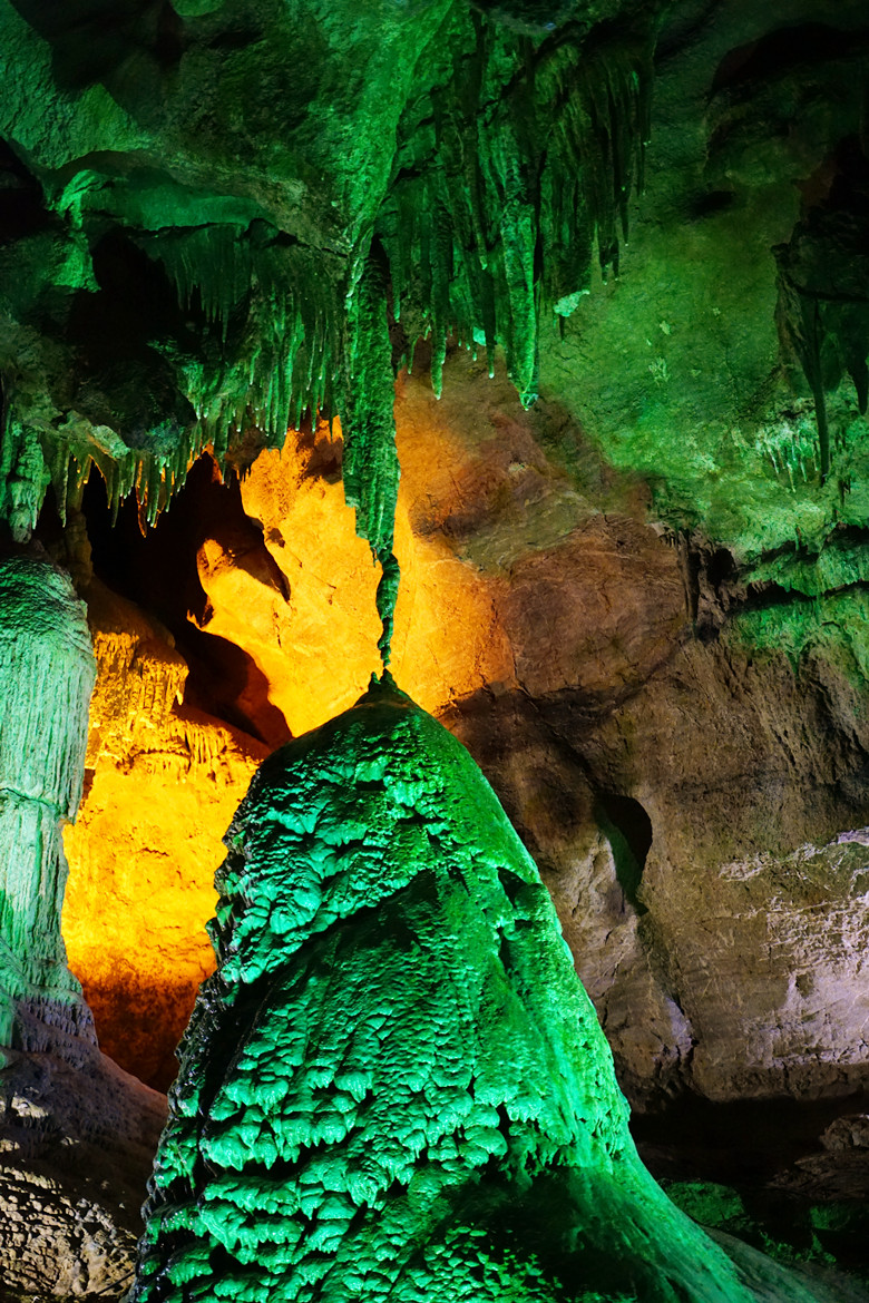 继续前行又会看到一个横空出世的天生桥,抬头望去,浑然天成,巍峨宏伟。桥的两岸长满了形态各异的石笋。无论是洁白的蒙古包,还是群仙聚会,都是惟妙惟肖,惊艳无比。