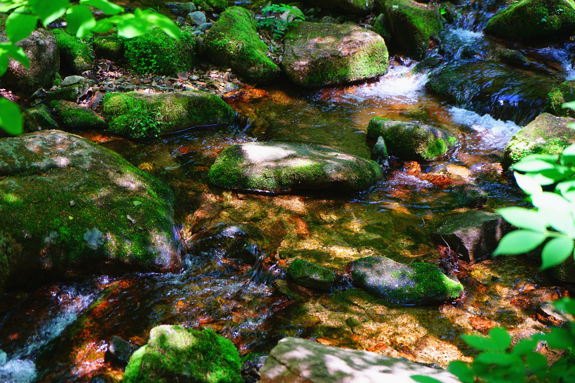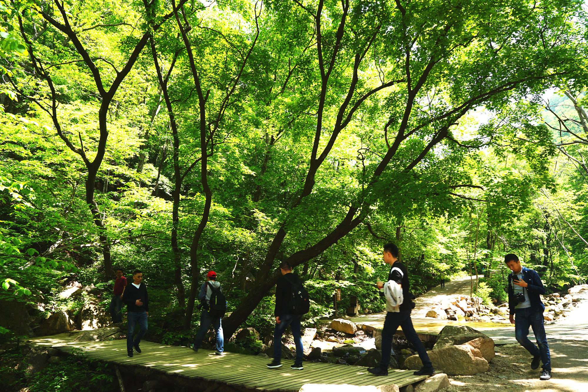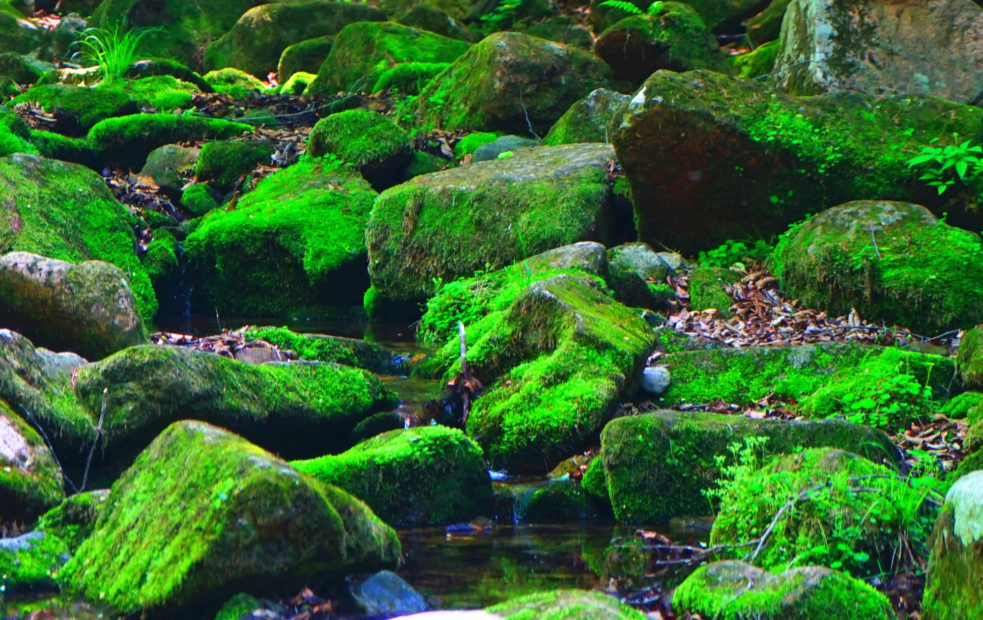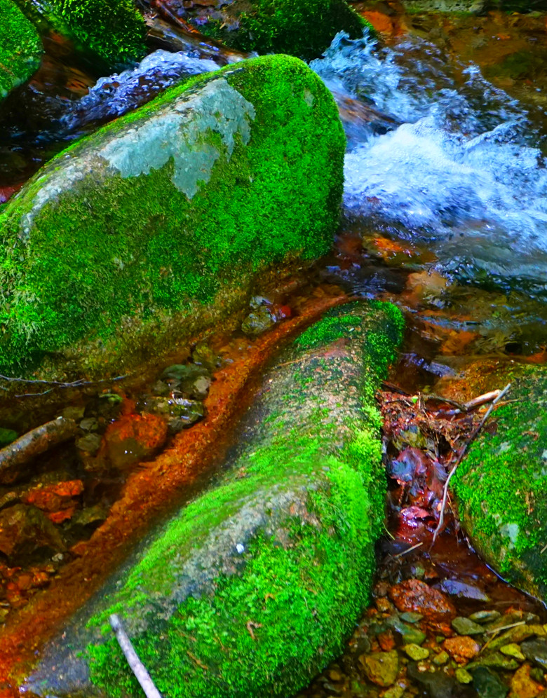来到绿石谷,犹如画中行,这里步步是景,处处是水。清脆欲滴的山,涓涓细流从山巅一直流到谷底。栈道两边的溪流中有着数不清的绿色宝石,一个个的绿石头或大或小,随意的散落在溪边。好奇的朋友忍不住会去摸一摸,猛然间大叫,好柔软的石头。引得大家纷纷去看去摸。原来这是被绿色苔藓所包裹的石头,怪不得远远的望去是那么的青翠,好看。尤其在阳光下更加的耀眼,每到夏季沟底大大小小的石头就会穿上碧绿的衣服,静静的生长,为这溪流带来无限生机,无限美好。这些石头只能看,千万不要上去踩,因为有水有苔藓,会很湿滑,一不小心就会栽倒水中。