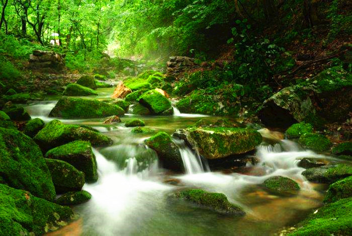 炎炎夏日请到绿石谷避暑纳凉吧,夏季谷内青峦叠翠,凉风习习。溪水峰回路转或急或缓,微小的落差造成数不清的大小瀑布,如珠帘、如绸缎,清澈的流淌在谷内长满青苔的圆石、枯木之间。