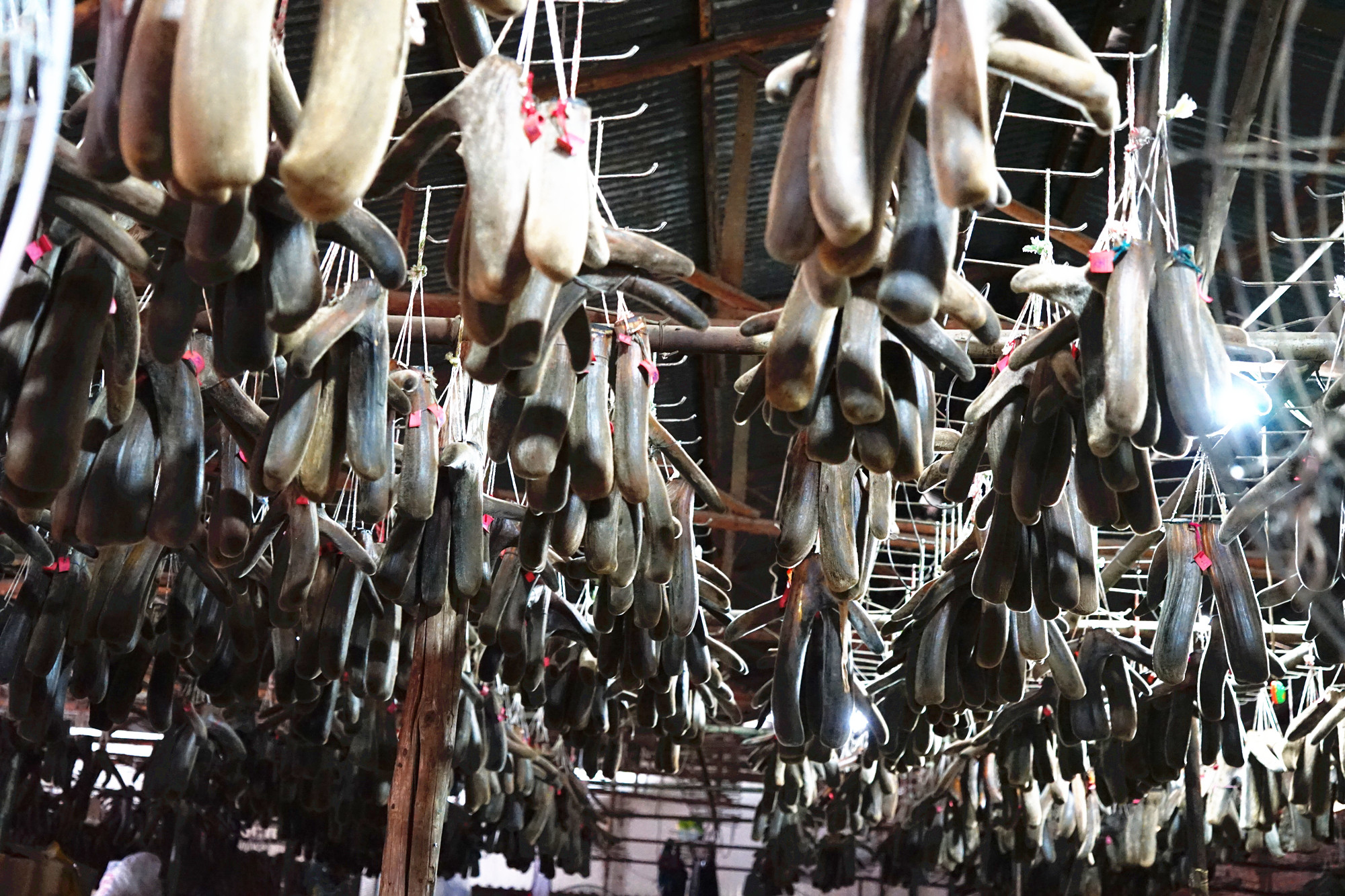 看看这集市上热闹的场景,都是不远万里来这里采购的各地商人。与当地的鹿农在不断的讨价还价之后,满意的带着自己收获来的新鲜鹿茸,再次走进集市周边的加工厂。新鲜的鹿茸是不可以直接运输的,必须在24小时内快速经过高温,杀菌,消毒,然后逐渐风干。这样才能保证鹿茸的有效营养不再流失,才能保证鹿茸的品质。