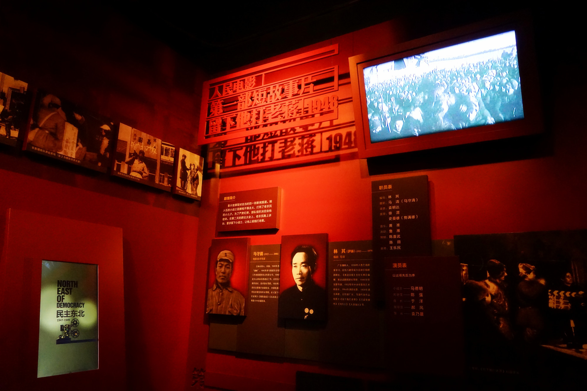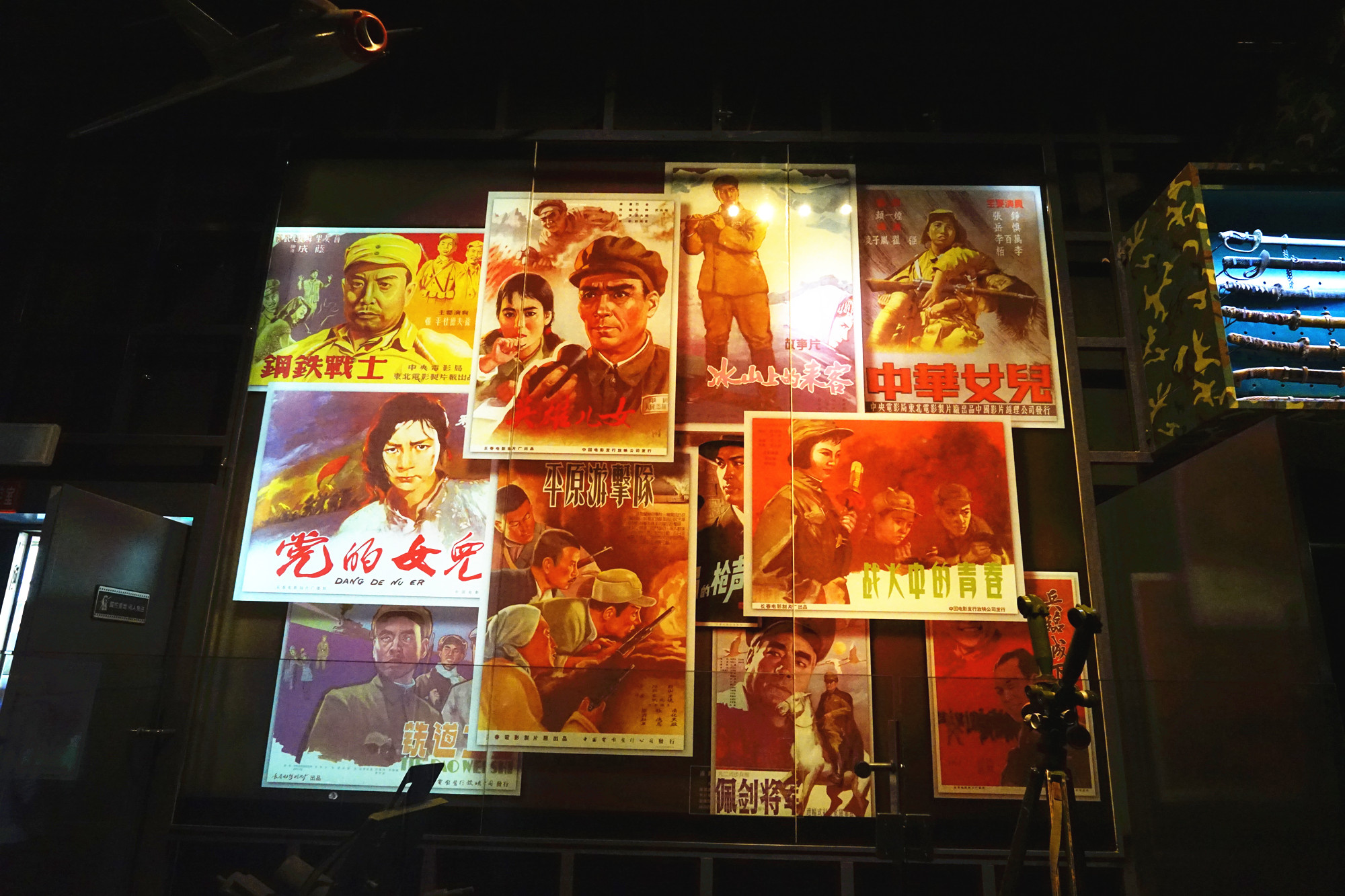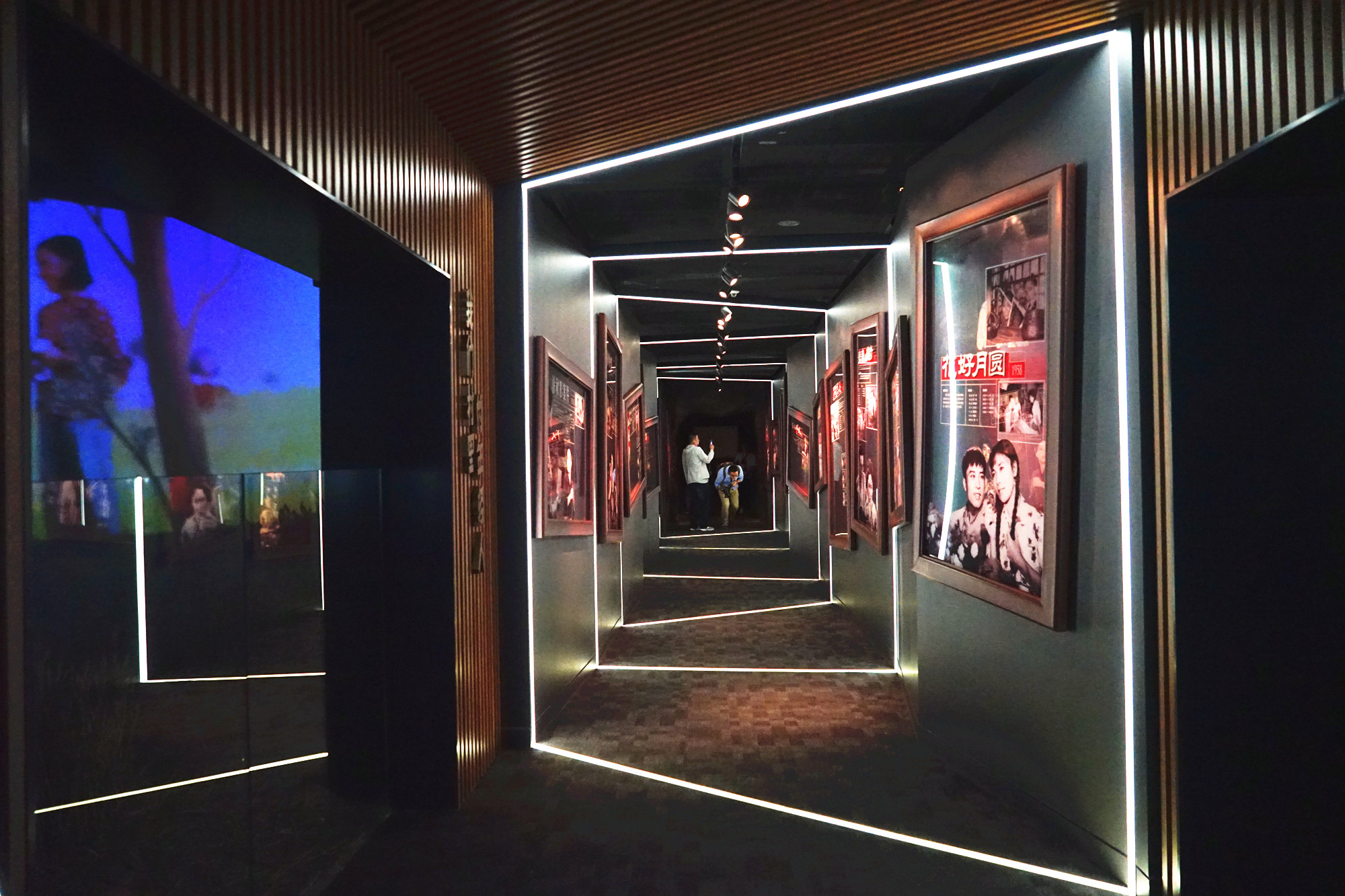 走廊汇集了长影城市题材、农村题材、军事题材、历史题材等影片中所使用的老道具,集中展示了长影艺术家们所使用的不同年代的电影器材和设备,还有不同时期的手绘电影海报。