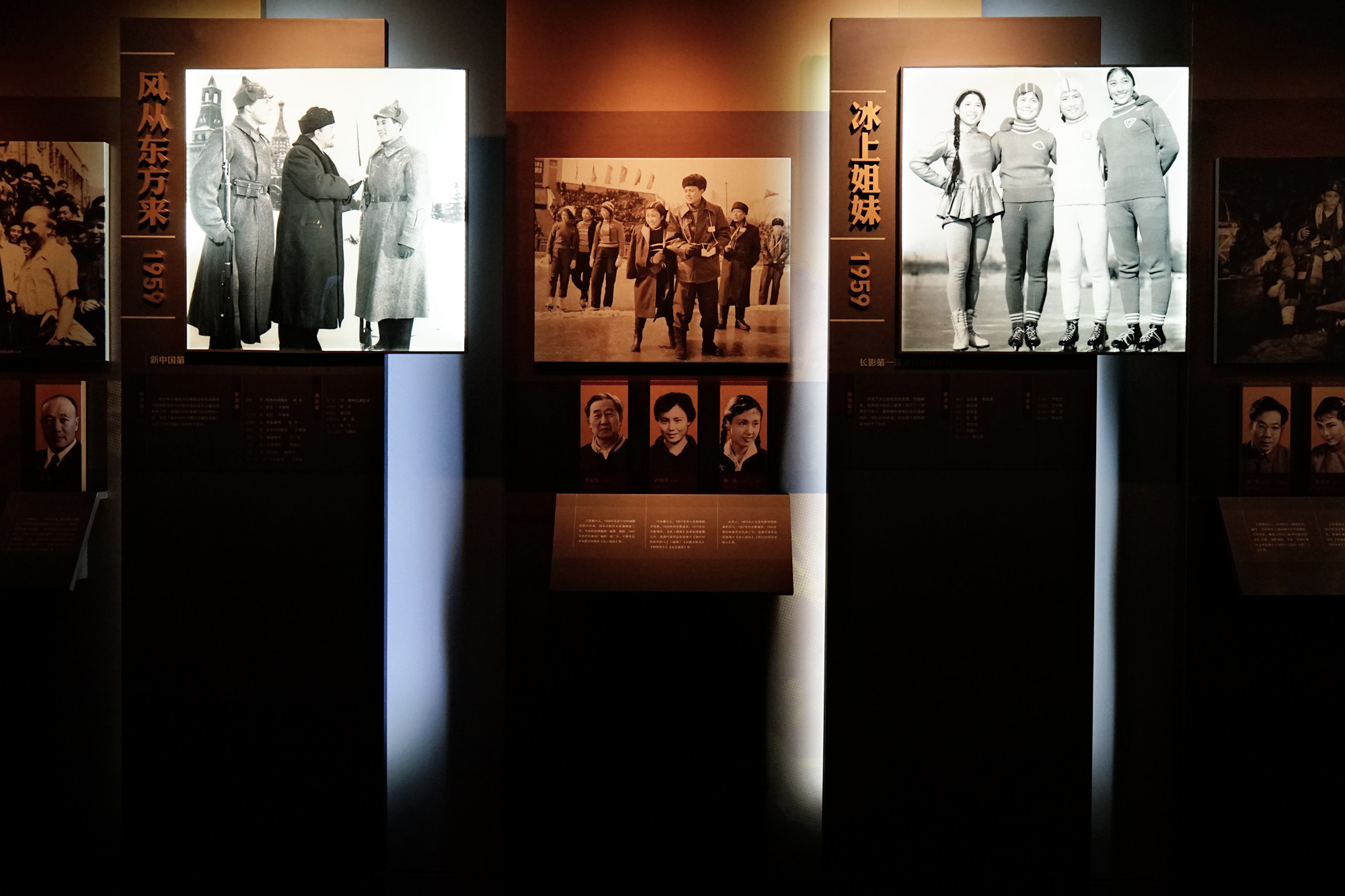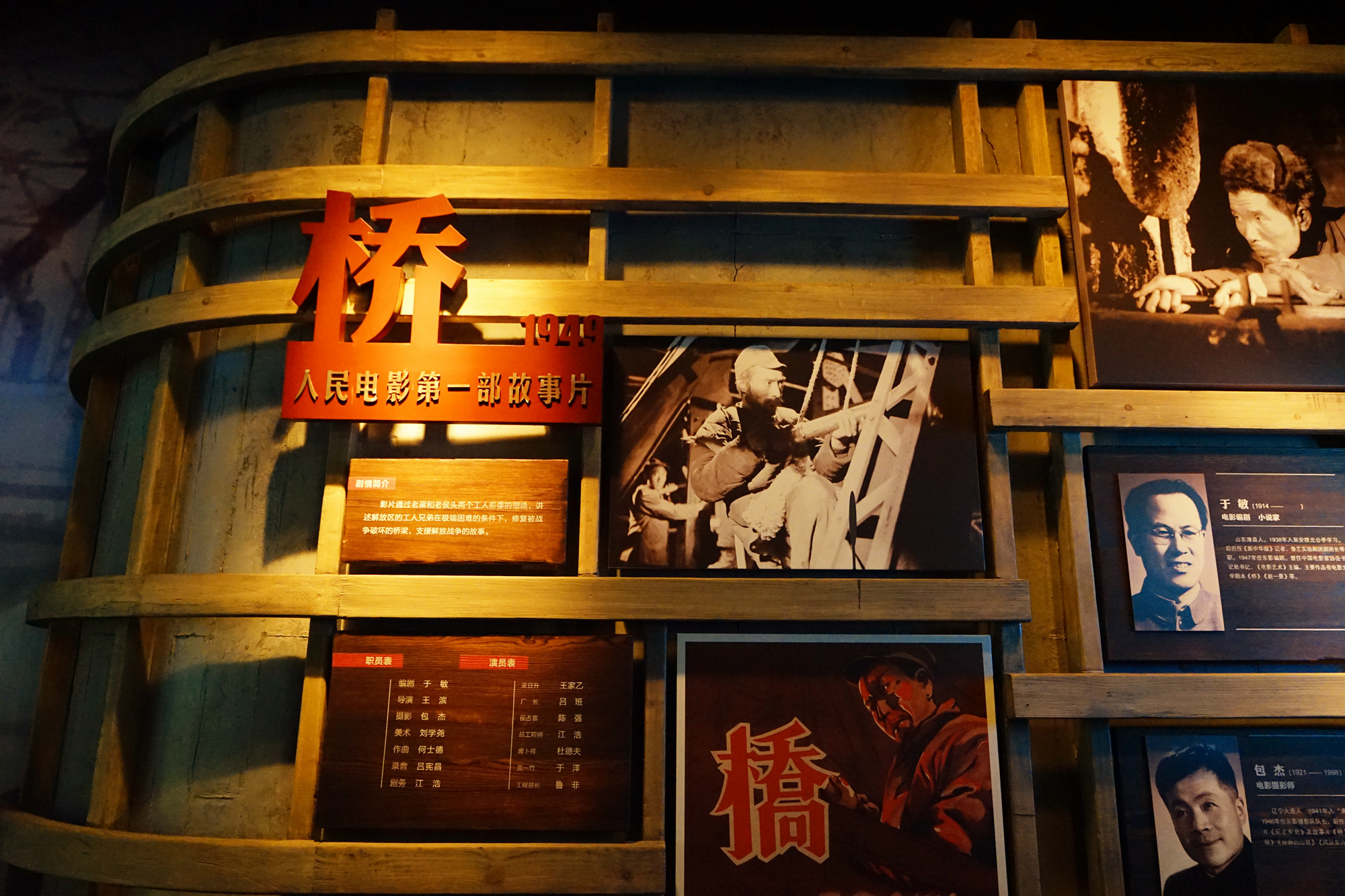 长春电影制片厂开创了新中国电影史上的“七个第一”。中国电影第一部木偶片《皇帝梦》,第一部动画片《瓮中捉鳖》,第一部科教片《预防鼠疫》,第一部短故事片《留下他打老蒋》,第一部长故事片《桥》,第一部译制片《普通一兵》,第一部多集新闻纪录片《民主东北》。墙上展示了七部电影的介绍与经典图片,在这里找找看,能不能找到你看过的那部老电影。