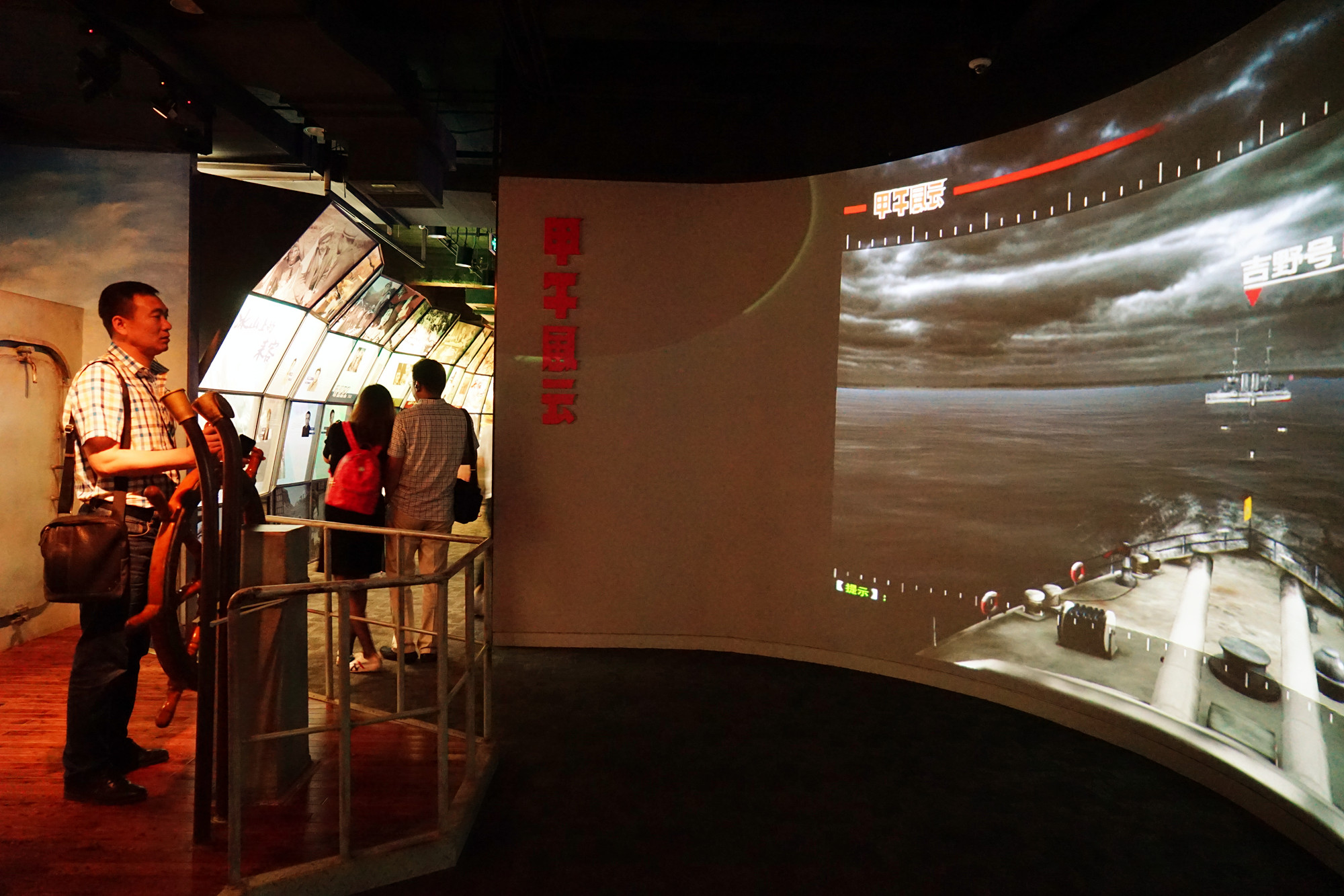 http://si1.go2yd.com/get-image/0O7sHTHA8zw《甲午风云》以其思想和艺术上的杰出成就,奠定了它在中国当代电影史上的地位。这个展区是互动区域,站上去体验一下“撞沉吉野”的壮烈。