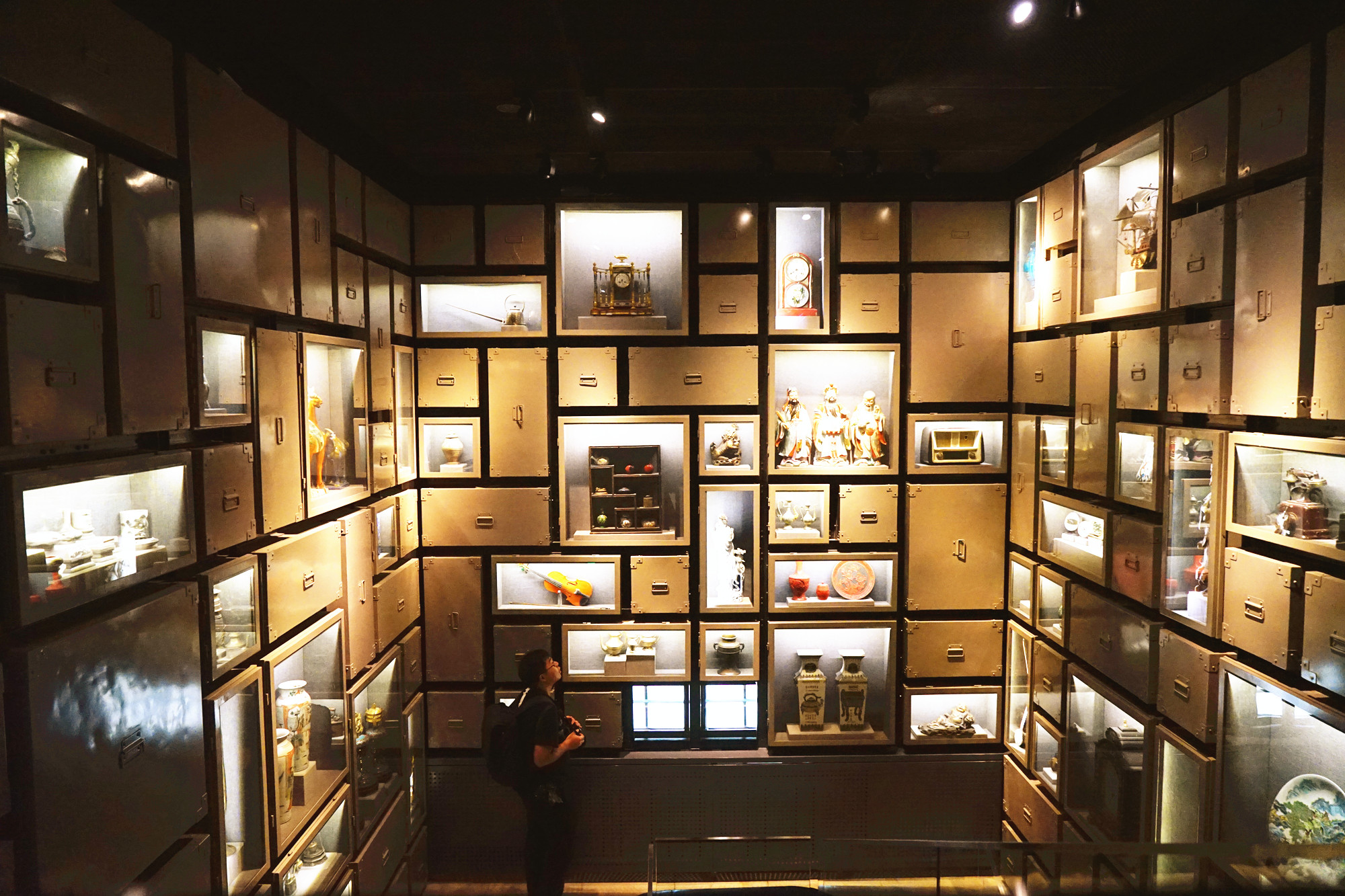通往二楼的楼梯间是一个多宝阁式的展示,这里有一些拍电影的道具。二楼的每一个走廊都设计的特别漂亮,每个展厅也是巧妙的运用现代设计与古老图片的完美结合。让人看了感到特别的有创意,有想要继续看下去的欲望。