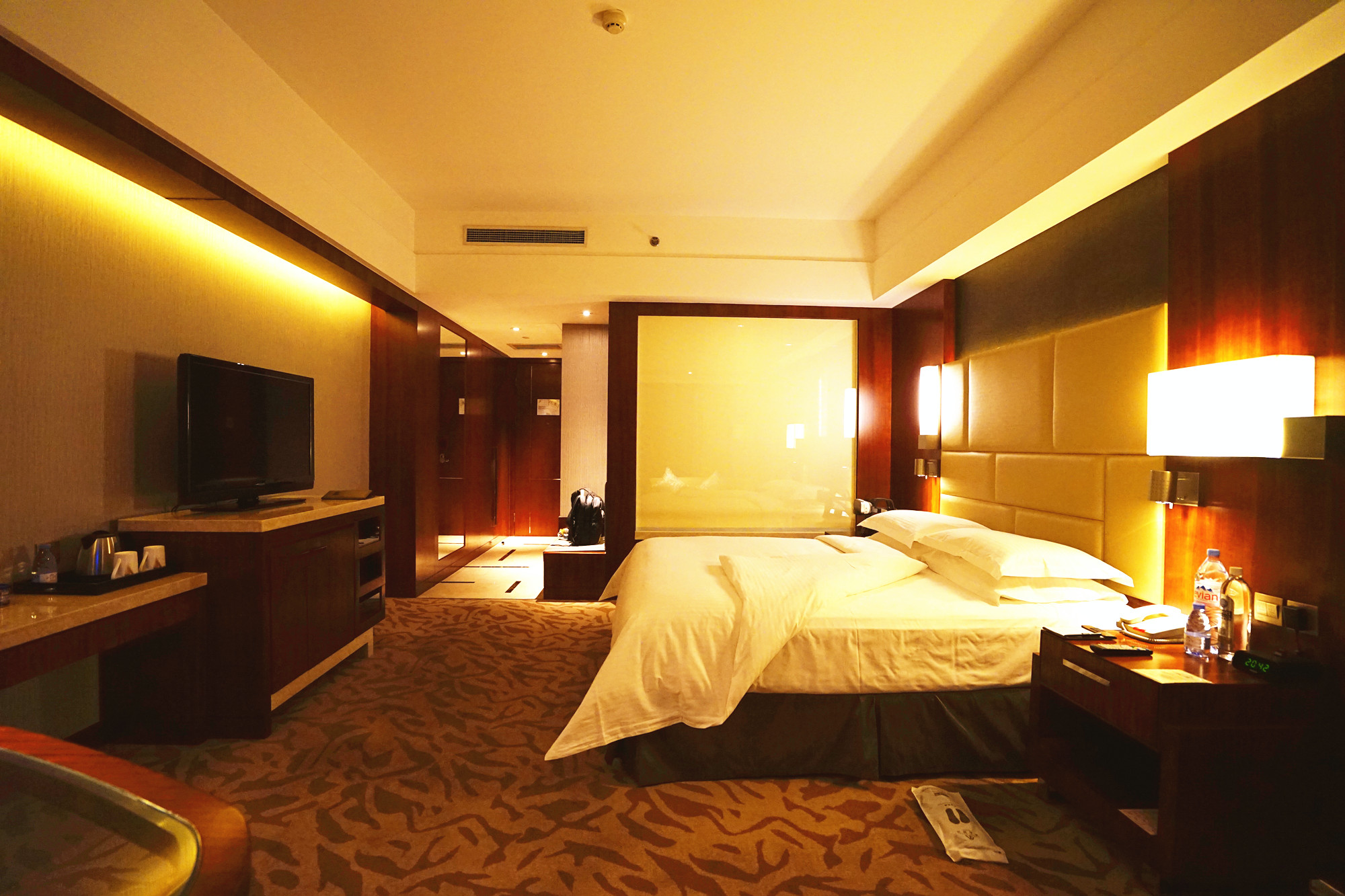 酒店VR客房非常的宽敞干净,我住的是大床房,每到一个酒店都会对床要求很高,这里的床躺上去不会很软,也不会很硬,和家中的几乎没有什么区别,所以我很中意。房间有提供各种矿泉水,只有一种是可以免费喝的,如果你想喝其它的就要付费。卫生间不仅空间大,还有一个大浴缸可以舒服的泡个热水澡。