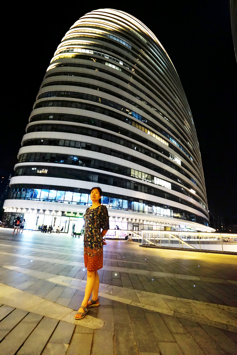 房间的落地大玻璃窗可以望见对面的大望京SOHO。清晨沐浴着第一缕阳光,躺在床上就可赏风景。灯火通明的夜晚,楼下的夜景更是撩人的很。忍不住就去大望京SOHO逛了一圈,看看我拍的照片漂亮吧,把自己拍出了一米八的高挑身材。