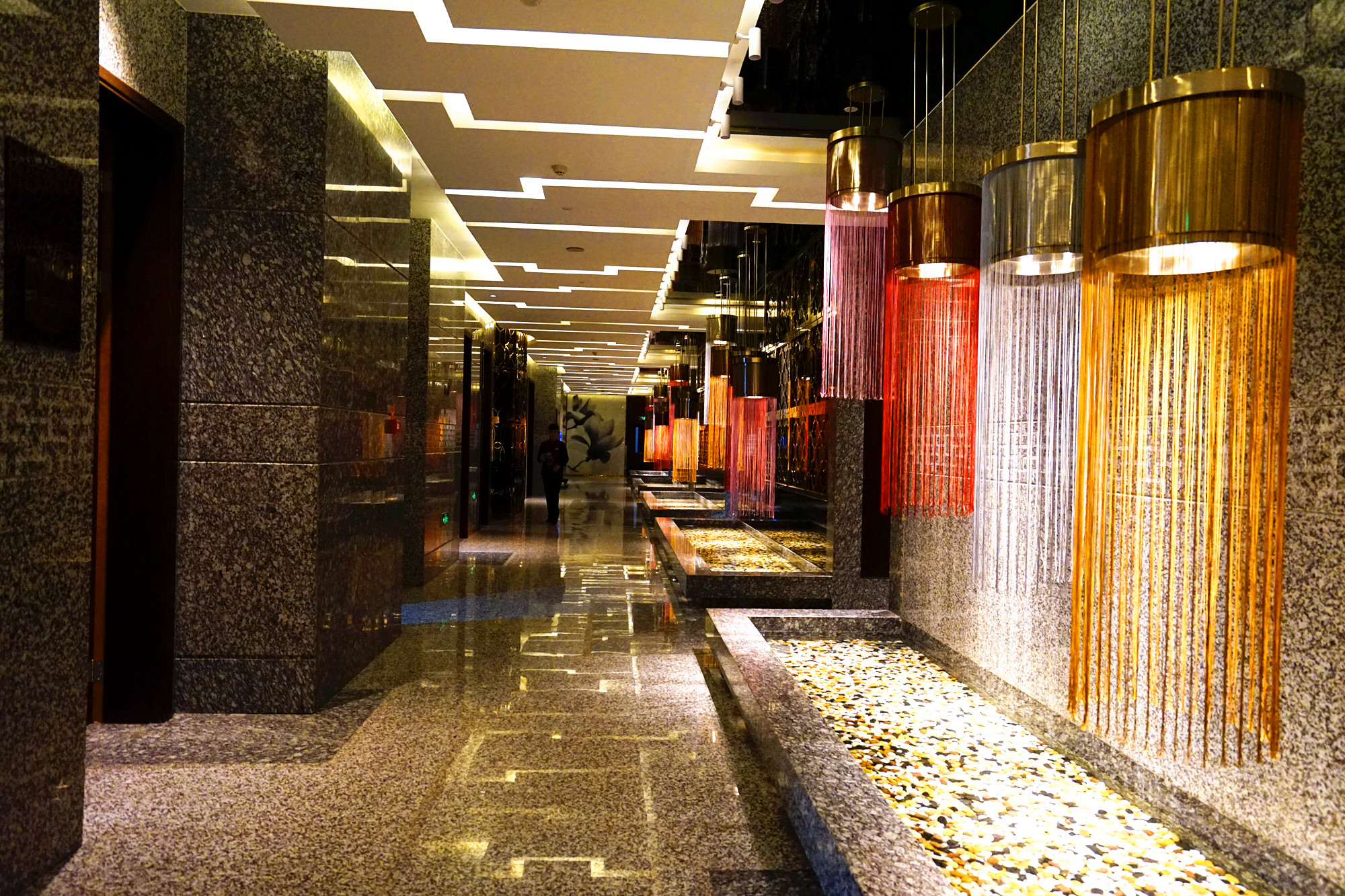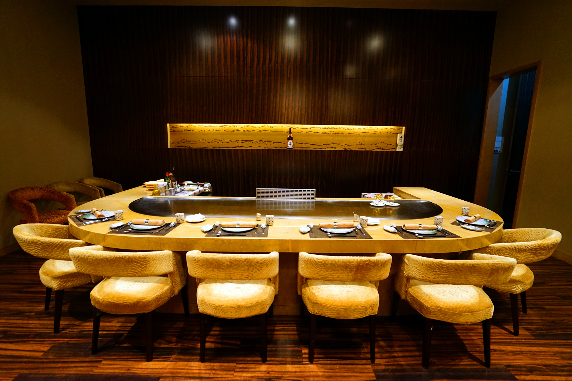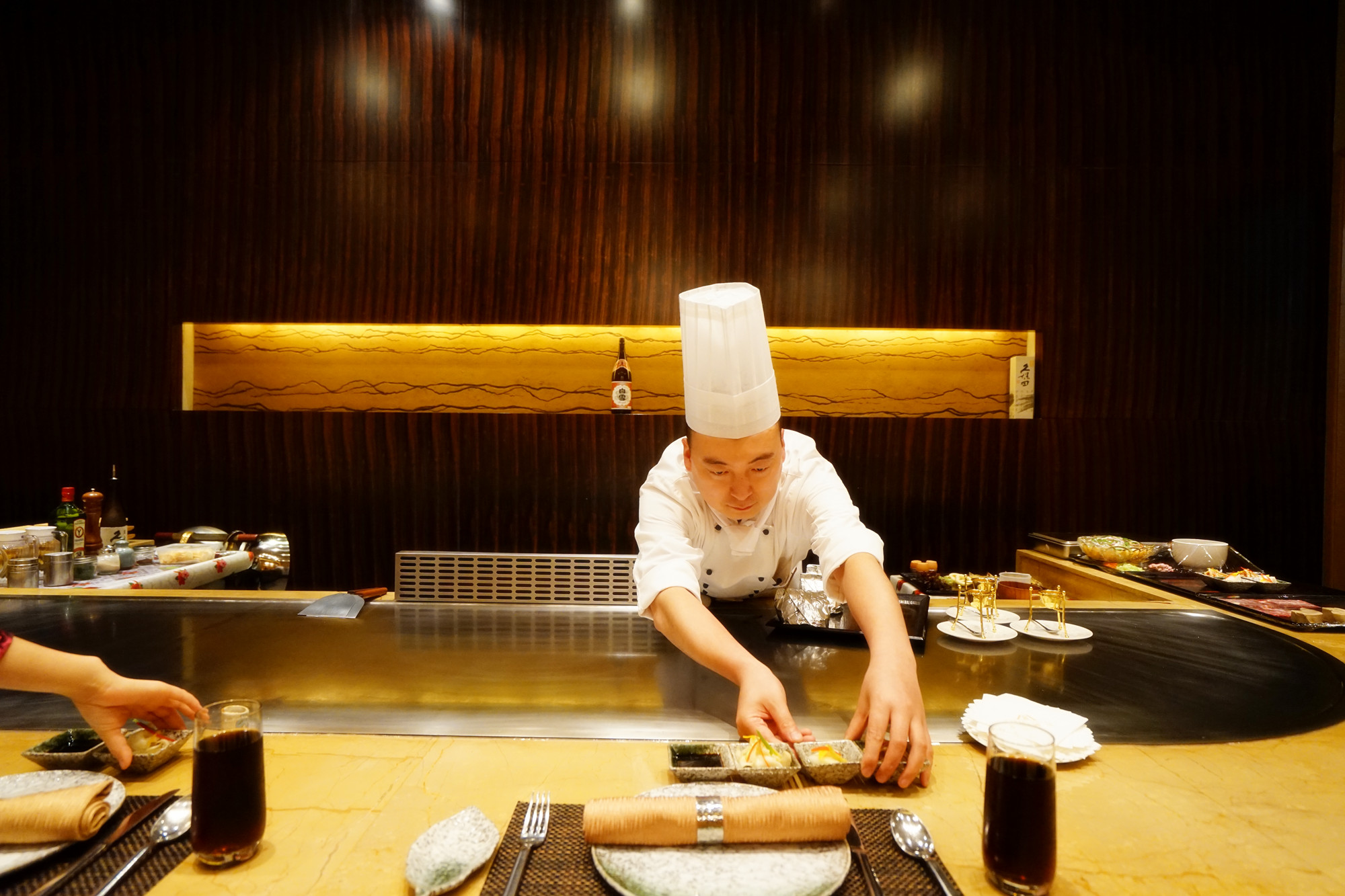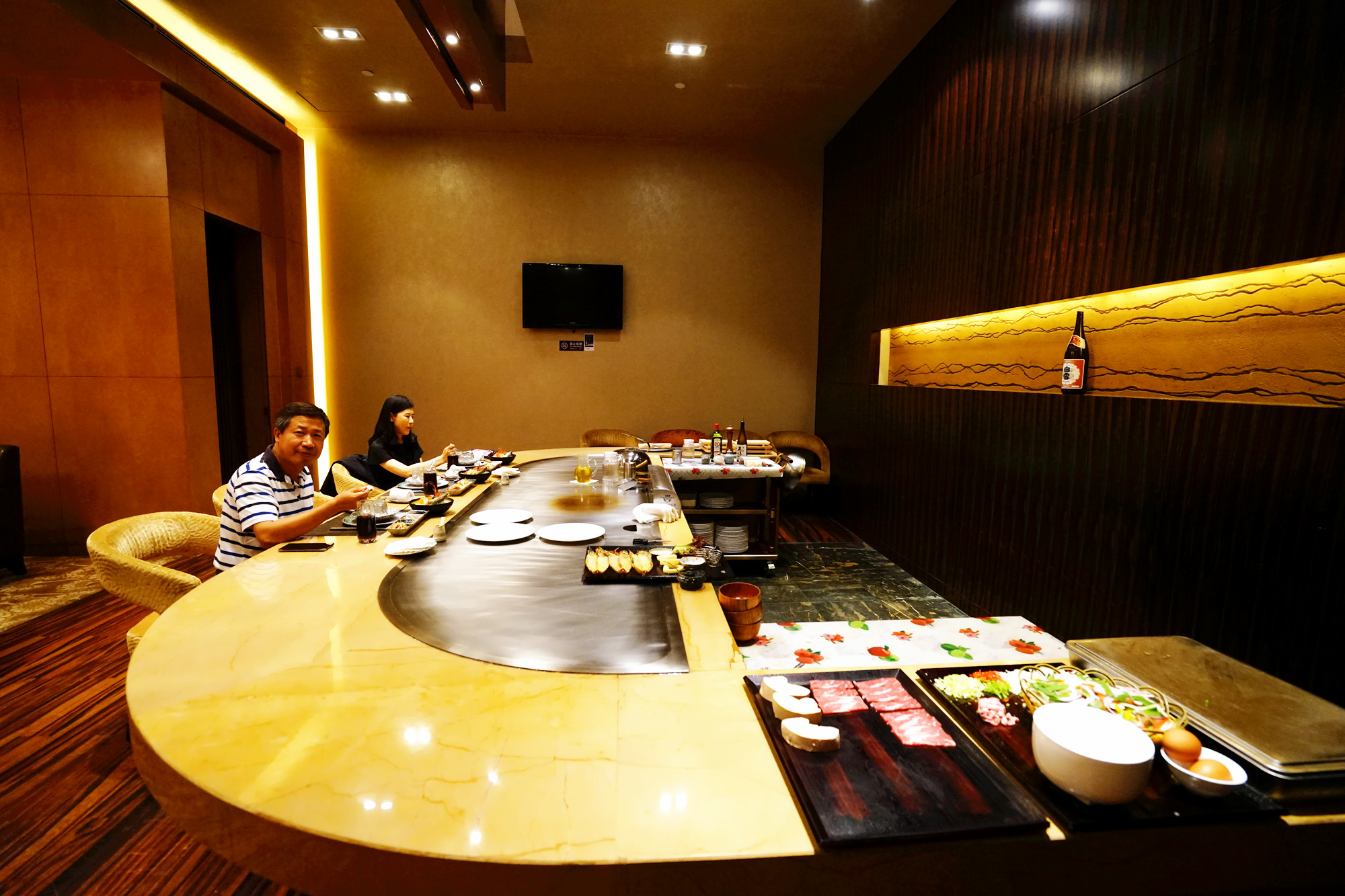 关于酒店的美食,推荐品尝这里的铁板烧,吃过之后才知道以前吃的都是假铁板烧。要想吃就得提前预定,由于价位在一千左右,餐厅环境当然也是相当的私密宽敞。铁板烧可以根据自己的食量定制套餐,如果是一个人有可能就会与其他的客人拼桌。三人以上就可以一个单间,看看图片就知道环境如何。