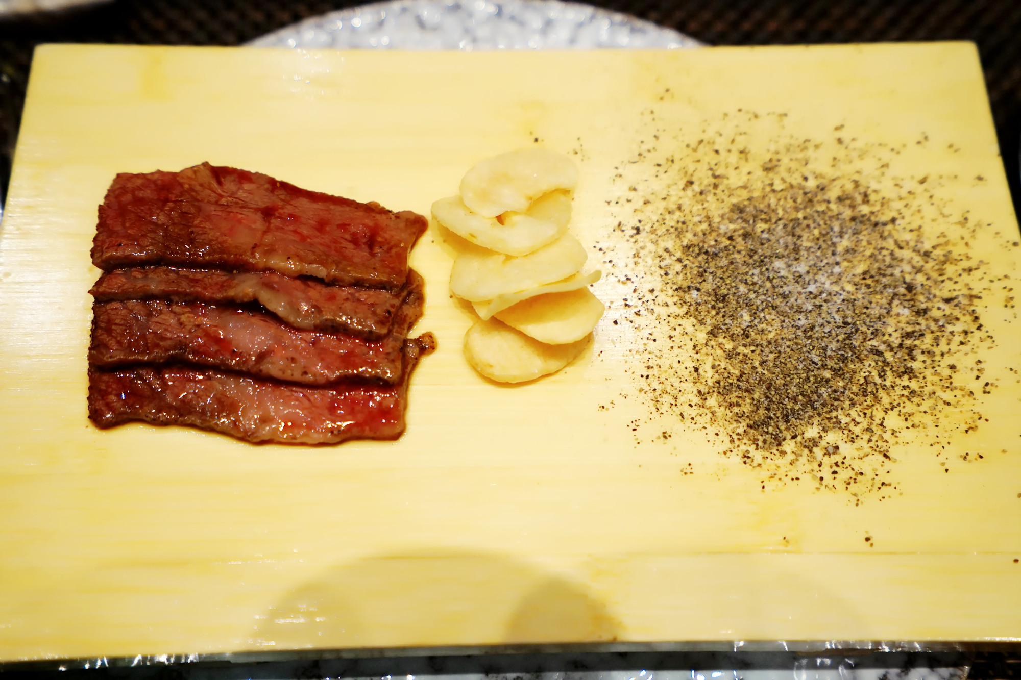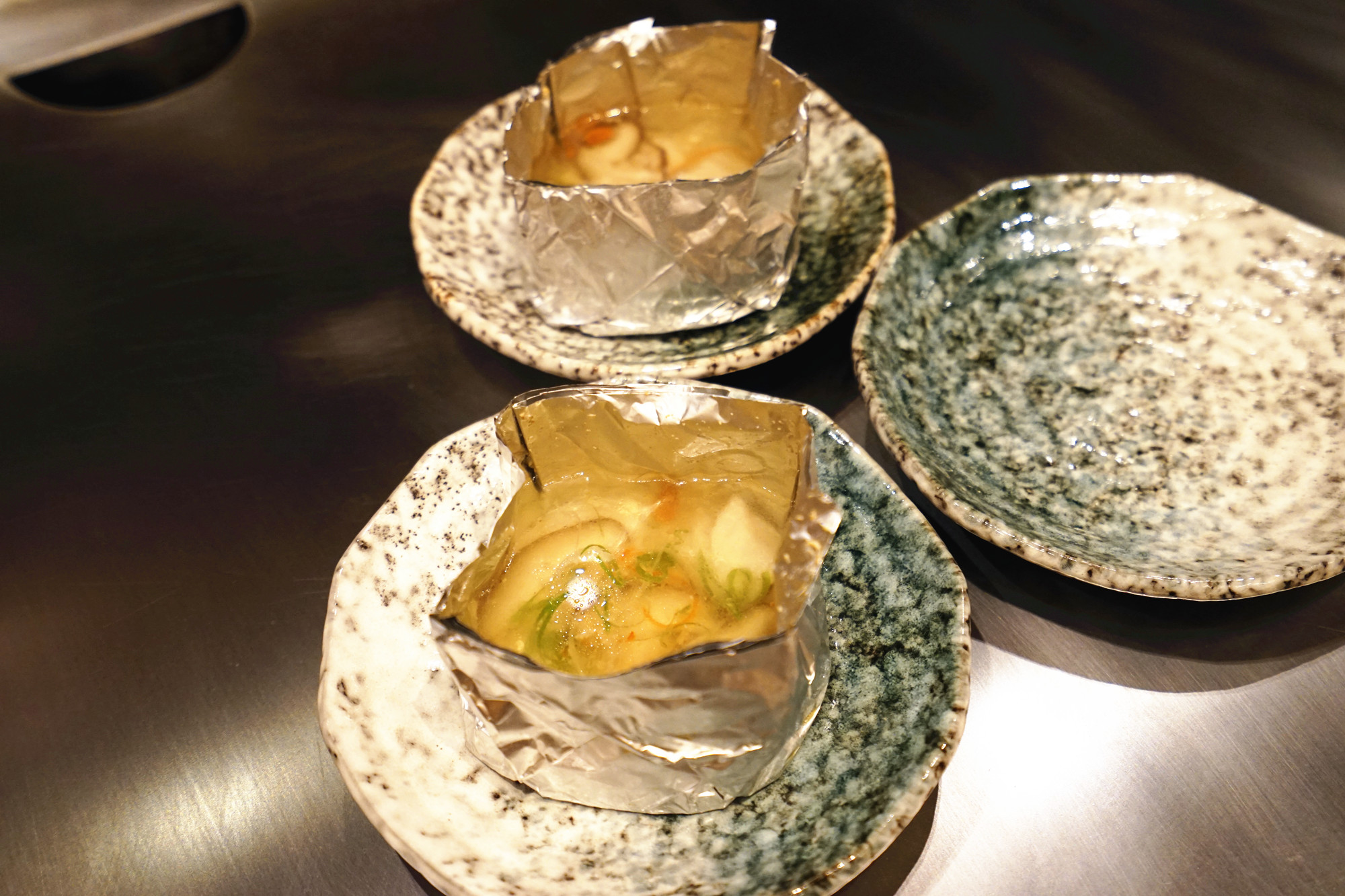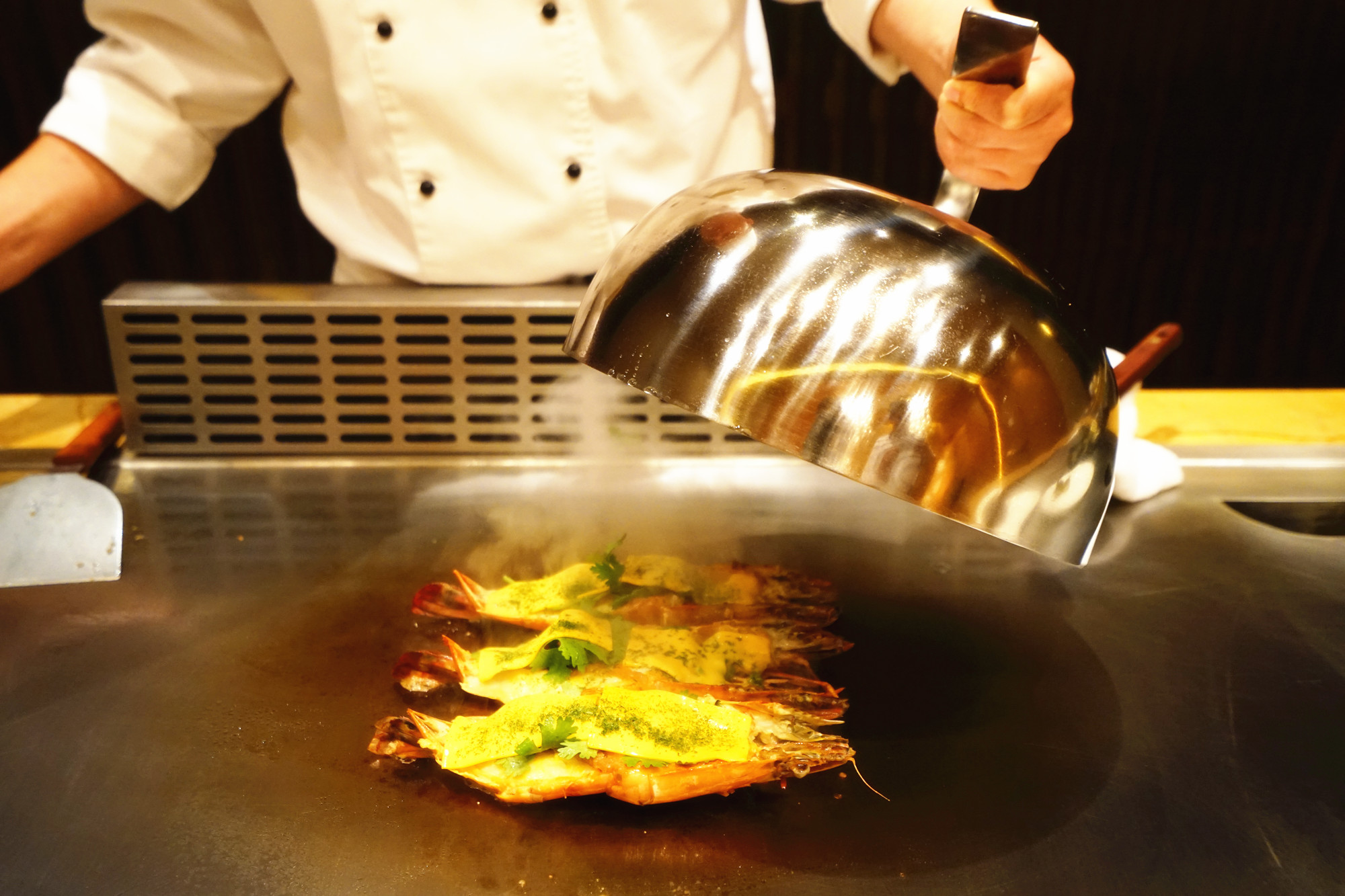 为啥说这里的铁板烧好吃,首先是这个鹅肝,吃过才知道这是我吃过最鲜嫩,最可口的鹅肝,外焦里嫩,一点都不老,感觉咬一口在嘴里就会化掉。尤其是配上这黑鱼子酱,红酒雪梨,简直是美赞。这是大厨曾经获过金奖的一道菜,很庆幸自己有口福吃到。本来想和大厨合个影,结果这位大厨太过低调,都不让拍照,我还是没忍住偷偷拍了一张。