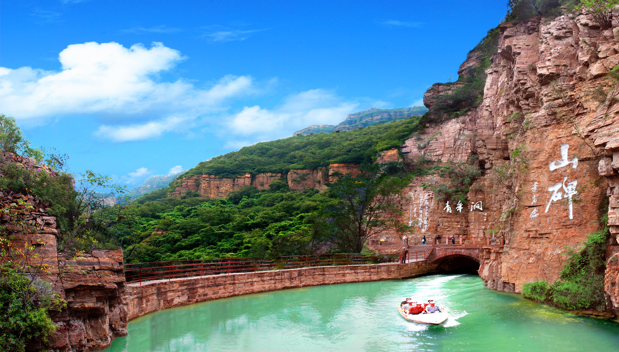 红旗渠青年洞位于风景如画的太行山腰,修筑于峭壁之上,飘荡于云雾之间,是红旗渠水工修筑和自然景观结合最为精妙的地段,也是红旗渠建设最艰巨的地段。渠水蜿蜒,颇为壮观。奔流于太行山腰的红旗渠,宛如一部回荡于太行山脉的交响乐,气势雄浑;堪称“太行一绝”的“一线天”,幽静深邃;横跨两山之巅的步云桥,举步惊鸿;下山滑道,轻松刺激;绝壁栈道,漫步云中。青年洞中可尽享“天河荡舟”的独特感觉。“铁姑娘打钎”、“凌空除险”现场表演,与英雄再度握手,带你追忆那段难忘岁月。