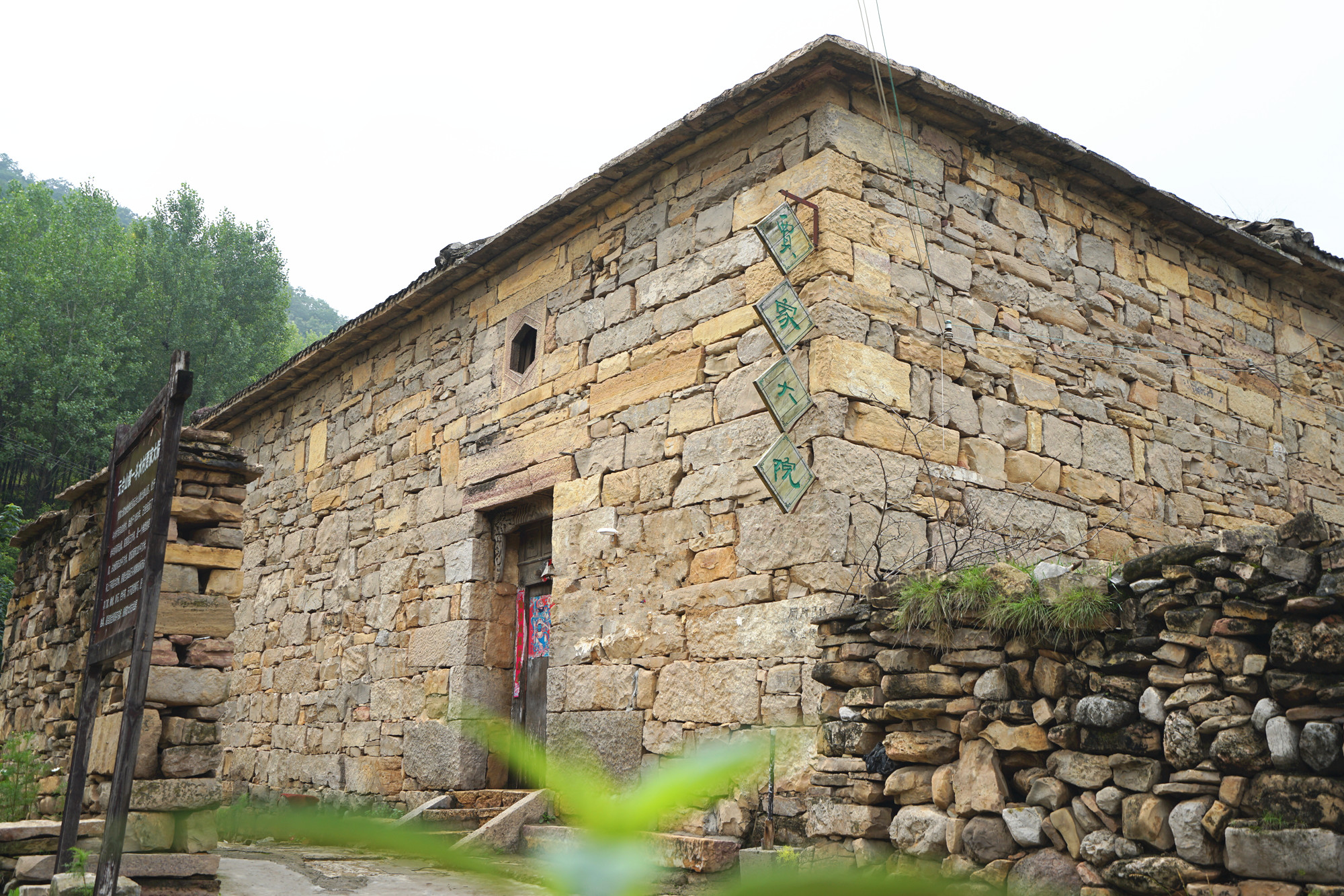 http://si1.go2yd.com/get-image/0Ol9xvyXsqu沿着村中的青石板路一直走,村口的大爷大妈们悠闲的在村头聊天,打牌。村子不大,往上走就看见村子里最古老的两座宅院,李家大院,贾家大院,院子高大宏伟,气派非凡,在这个小山村中尤其显得与众不同。