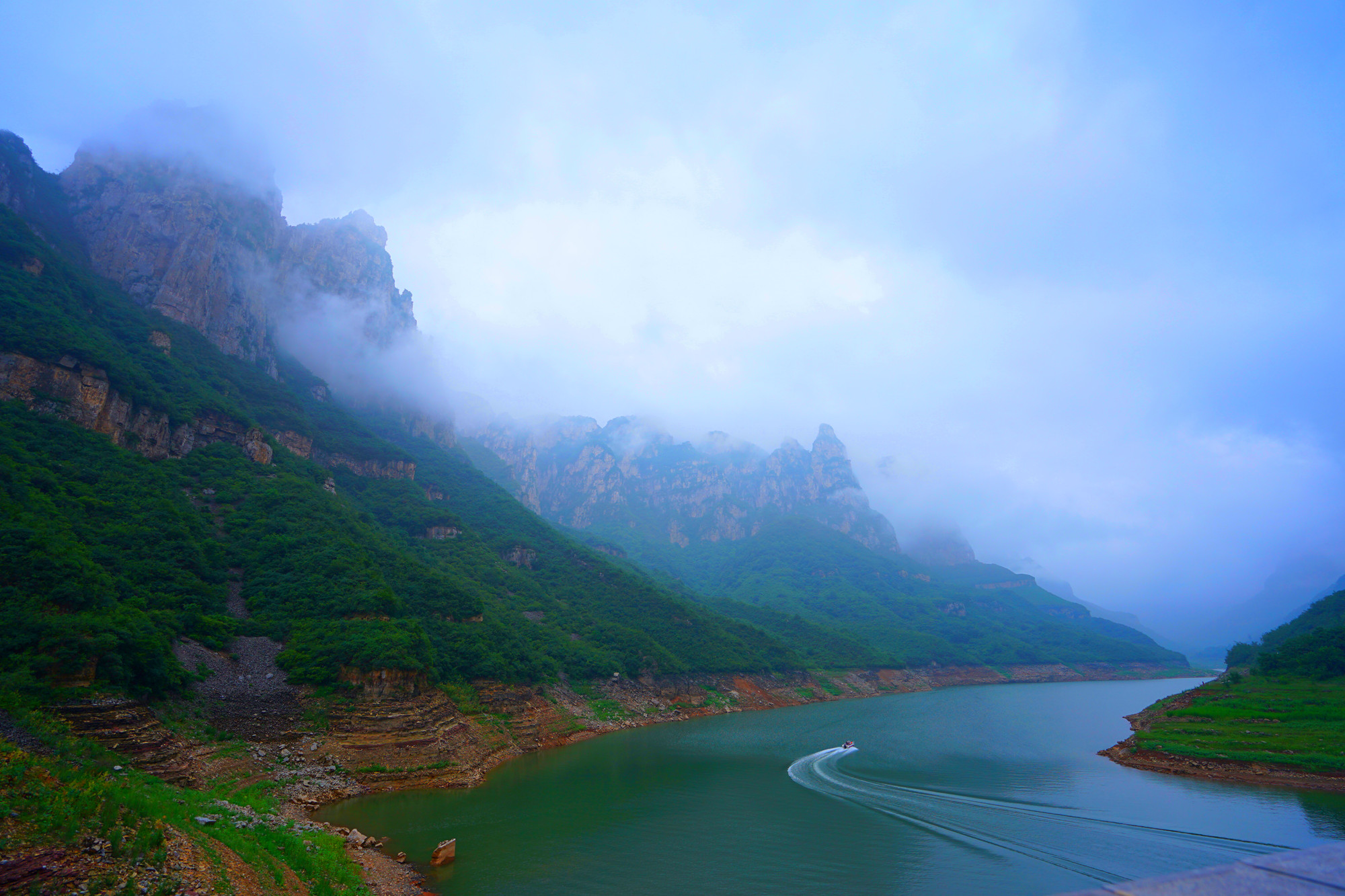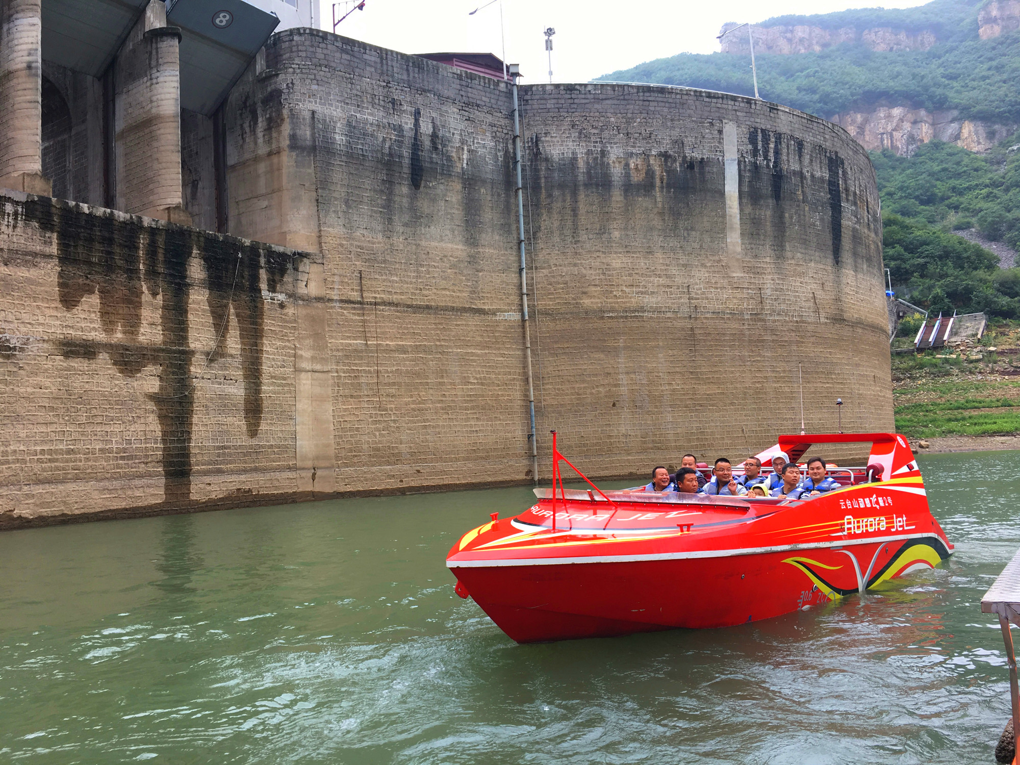 红石峡是单行线游览,不能走回头路。游完红石峡,出得峡谷就来到了子房湖,湖面水域宽阔,两岸群峰林立。这里要玩的就是乘坐飞艇而不是快艇,想知道坐飞艇啥感觉,那要亲身体验才知道。瞬间360度的大旋转,保证让你秒变落汤鸡。