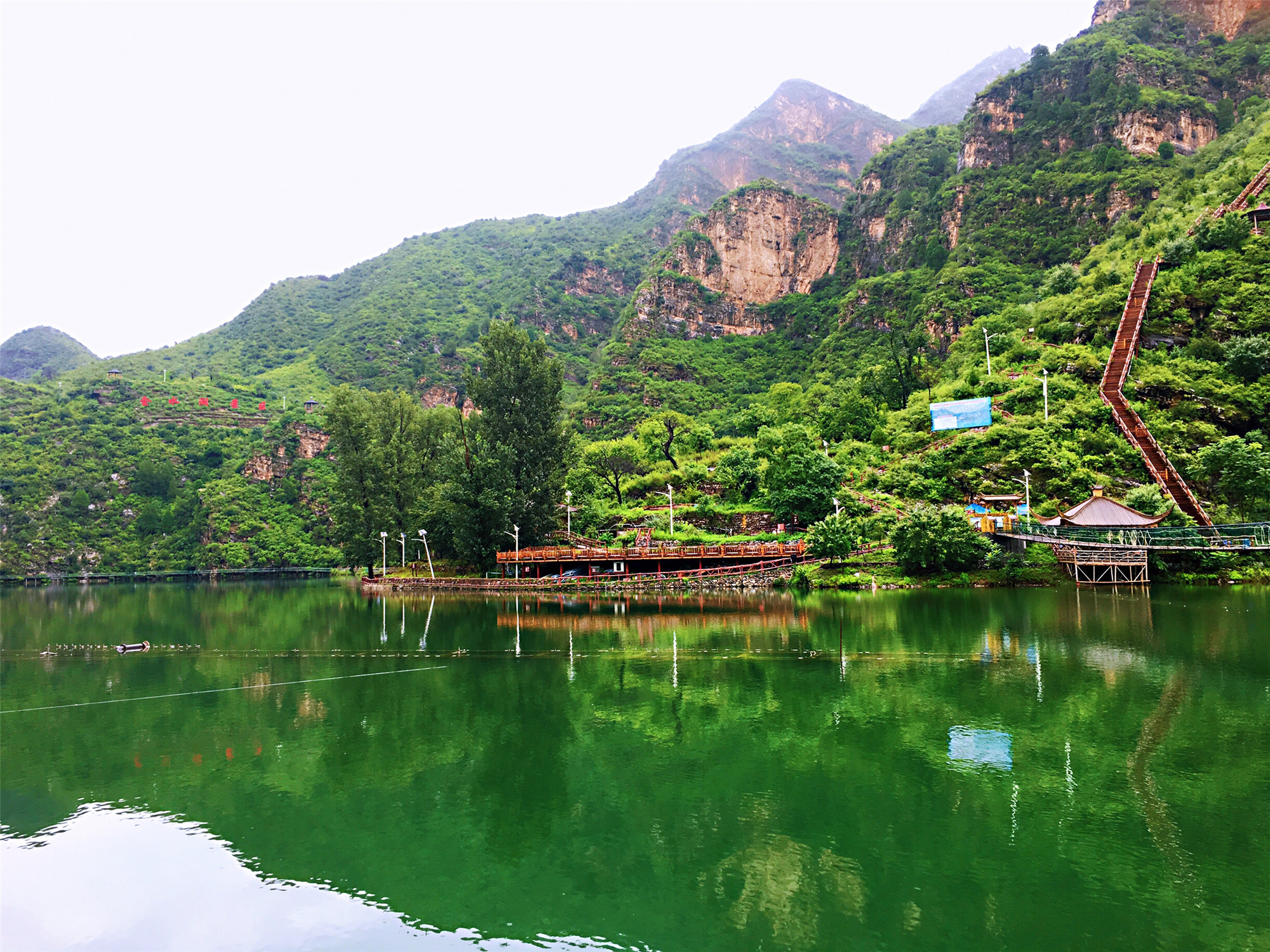 山下的湖水清如碧玉,这里的水主要来自山泉,湖边就是景区的餐厅。登山累了,下山的时候,就可以坐在湖边的餐厅,一边吃着农家菜,一边看着湖中鱼儿游弋。