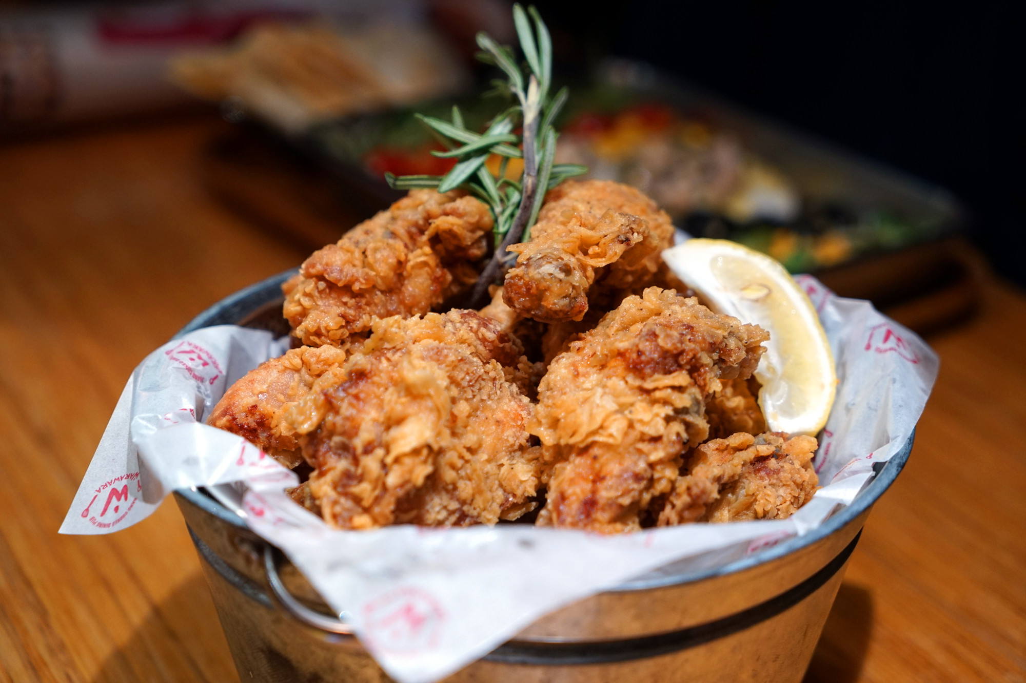 喝的有了,点菜。大桶炸鸡首选,这是WARAWARA餐厅当红花旦。来的人几乎都会点这个,吃过之后,哇!这味道就是我在韩国吃的味道,没有一丝的改变,甚至说比韩国当地还要好吃。炸鸡不仅有大鸡腿,还有大块的鸡胸,外皮酥脆,肉质滑嫩,入味是最重要的。鲜香咸香适口,连续吃掉两大块,别笑我,就是好吃,很实惠的一大桶,够好几个人吃。