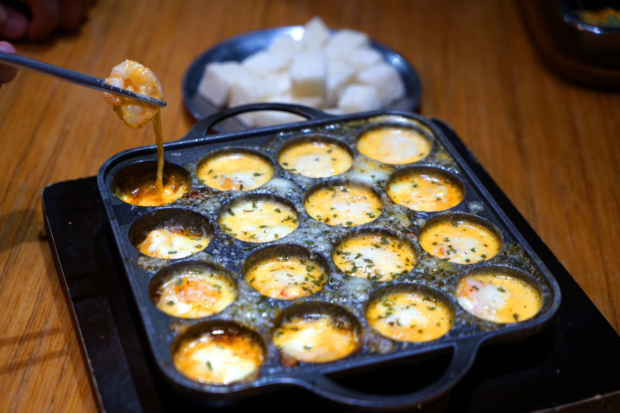蜂巢芝士鲜虾,一个个完整的虾肉静静的躺卧在铺满芝士的巢穴中,犹如正在孵化的蜂蛹,创意萌萌哒,充满新意,让人一看就食欲大开。Q弹的虾肉吃到嘴鲜香润滑,吃完虾肉,巢中的芝士可不能浪费,店家已经为你想到了,这道菜配了小小的面包块用来蘸芝士吃哦!浓郁的芝士入口绵香,好吃的停不下来。