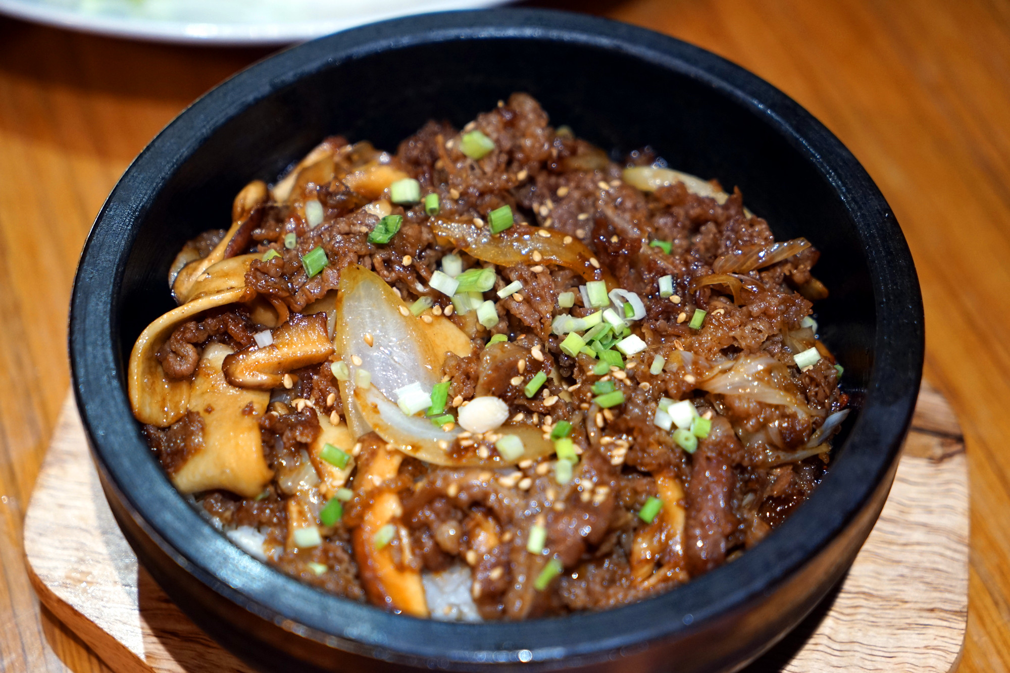 烤牛肉石锅饭,作为一道主食,这个锅子牛肉量大。两三个人足够吃,拌匀之后,香味扑面而来,欲罢不能,赶快来一大勺送进嘴里,感觉油汪汪的米粒裹挟着牛肉的香味,没等细细咀嚼便被一口吞下。