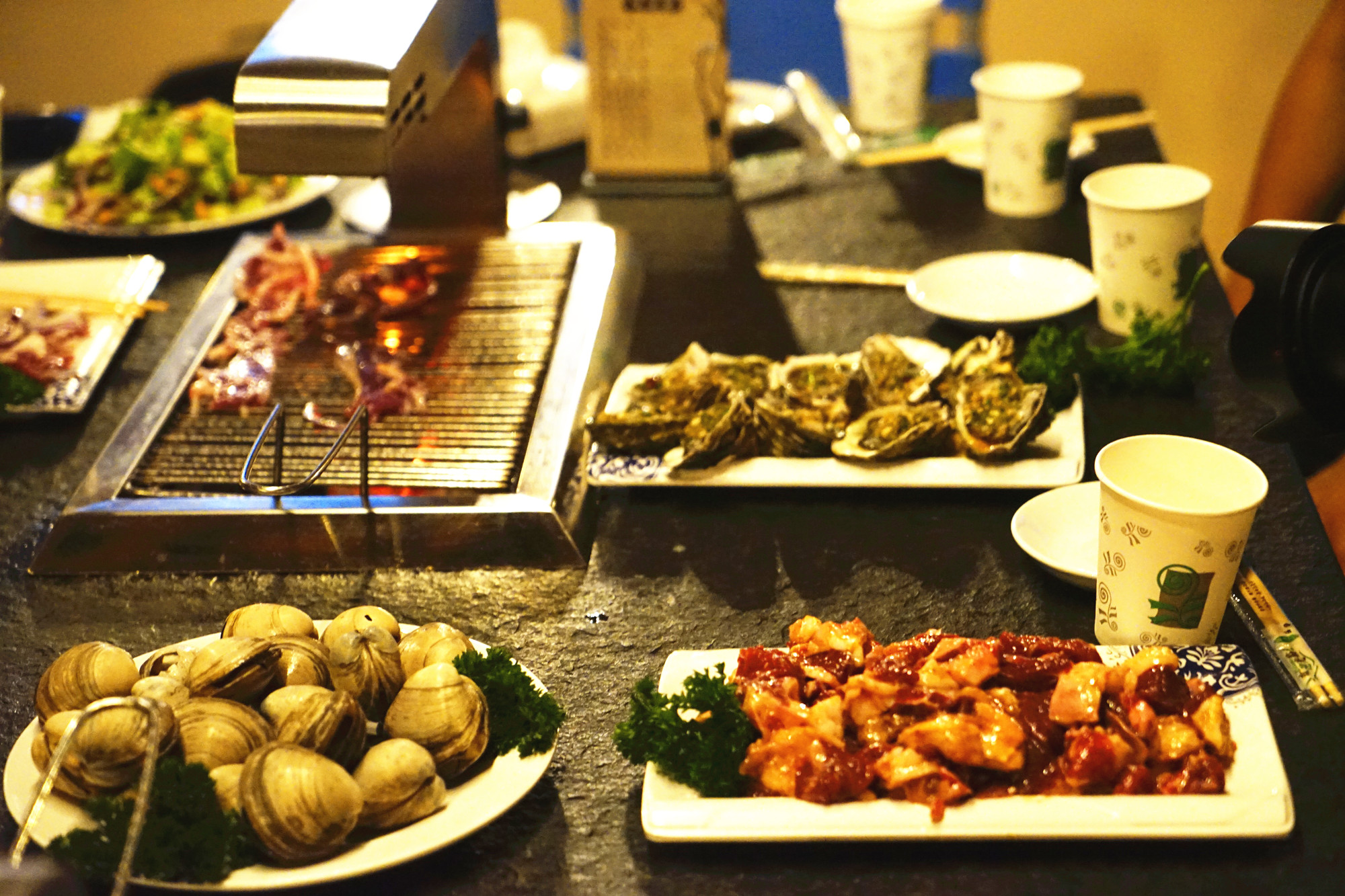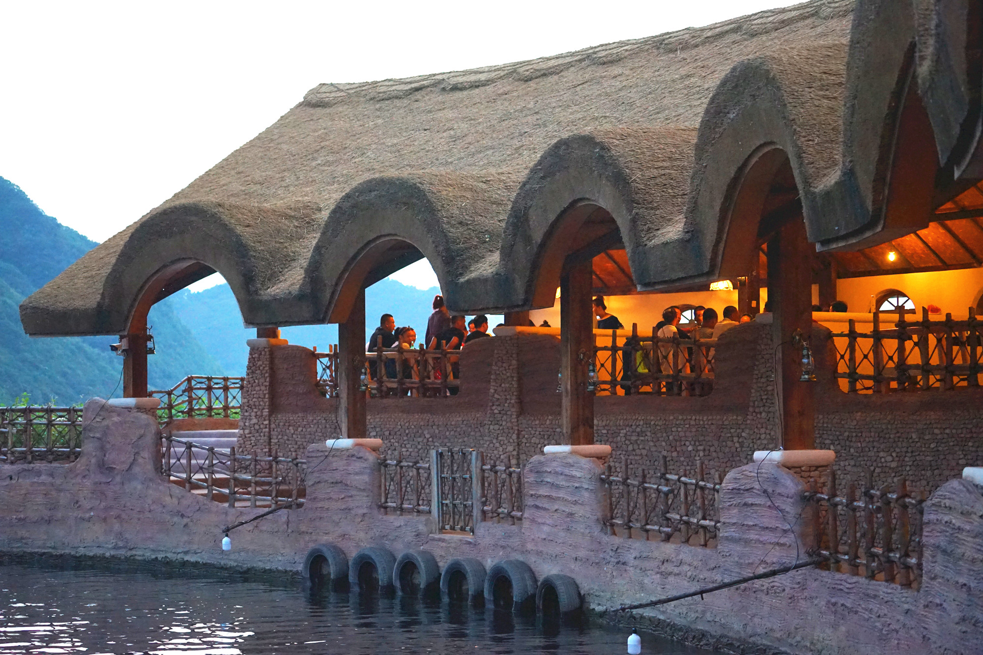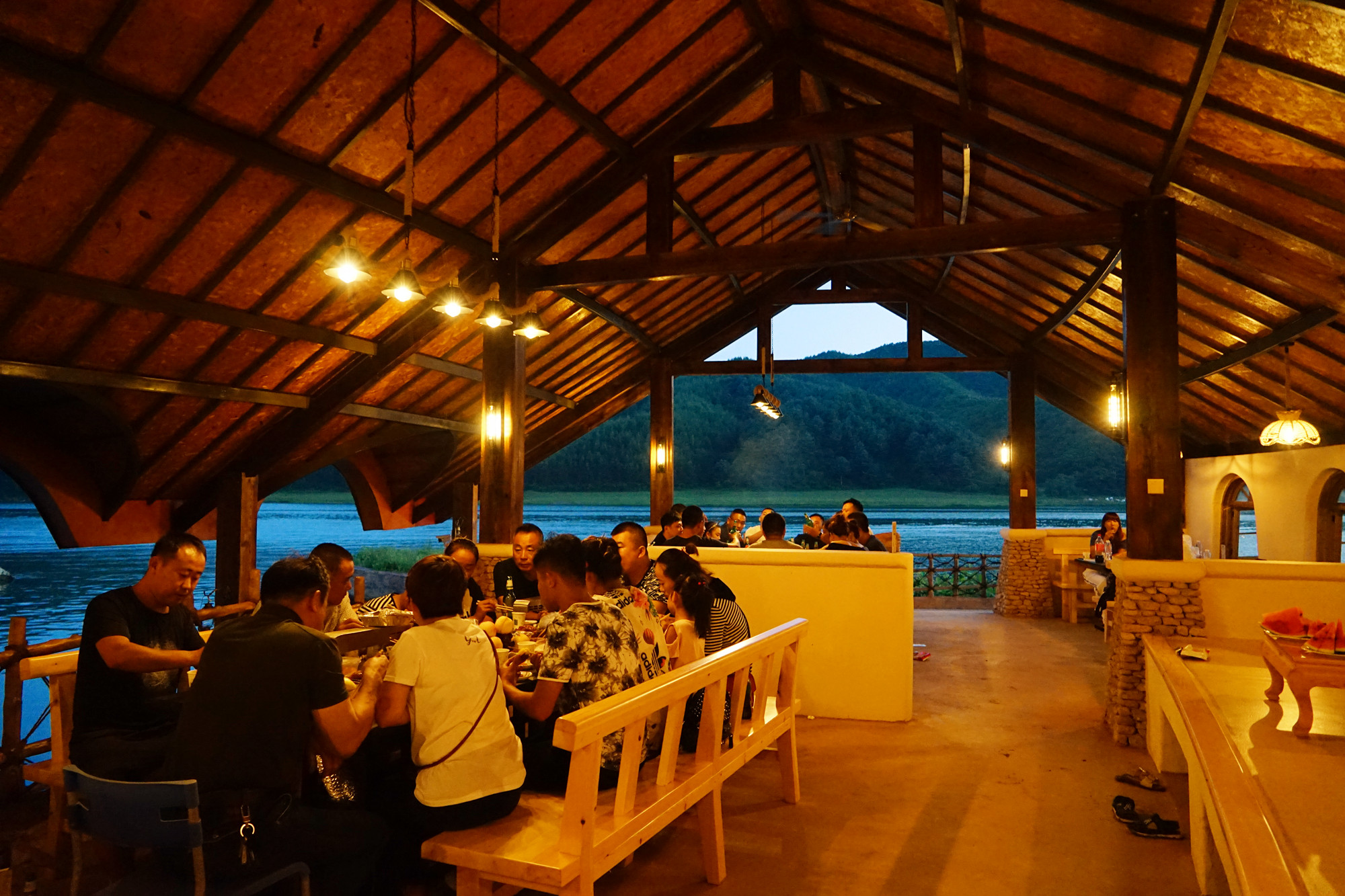 玩累了可在靉河渡歇息喝茶,晚上可以在这里烧烤哦,海鲜,烤全羊任你点。午饭可以在景区外的爱河人家用餐,团餐一桌两百多,价格很实惠,菜品很丰富。不想吃团餐的,可以单点,这里的特色美食以当地的美食为主。看我拍的图片就知道好不好吃。