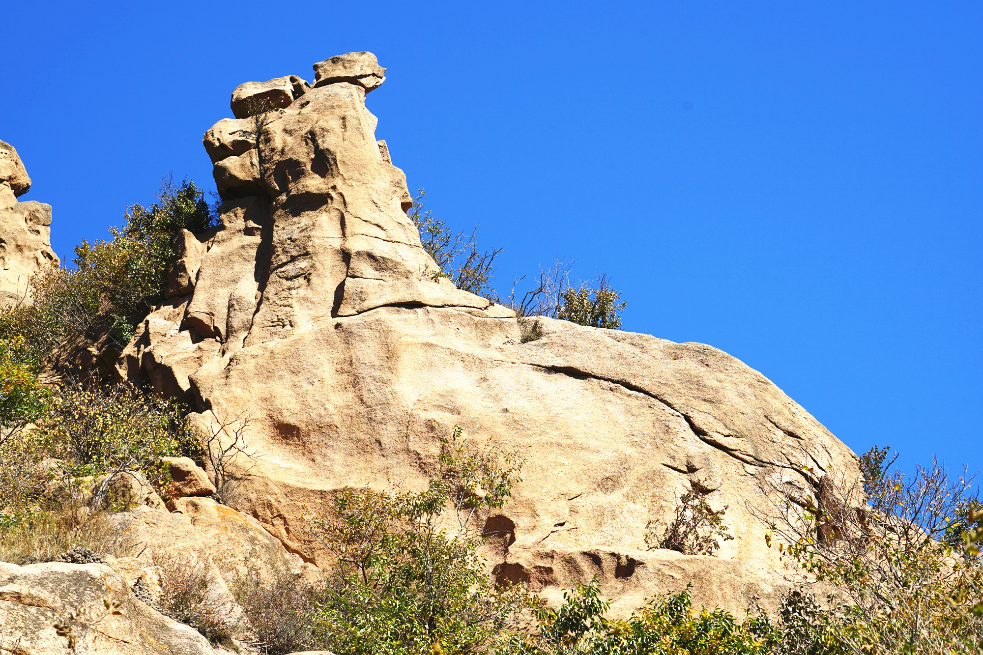 大黑山以怪石闻名天下,山间各种造型的石头全是天然生成,你看它像什么那便如你所愿,但是换个角度,又会是不一样的形状,一个个的石头灵动的无法判断。所以说,不到大黑山,就无法探秘山中的故事。