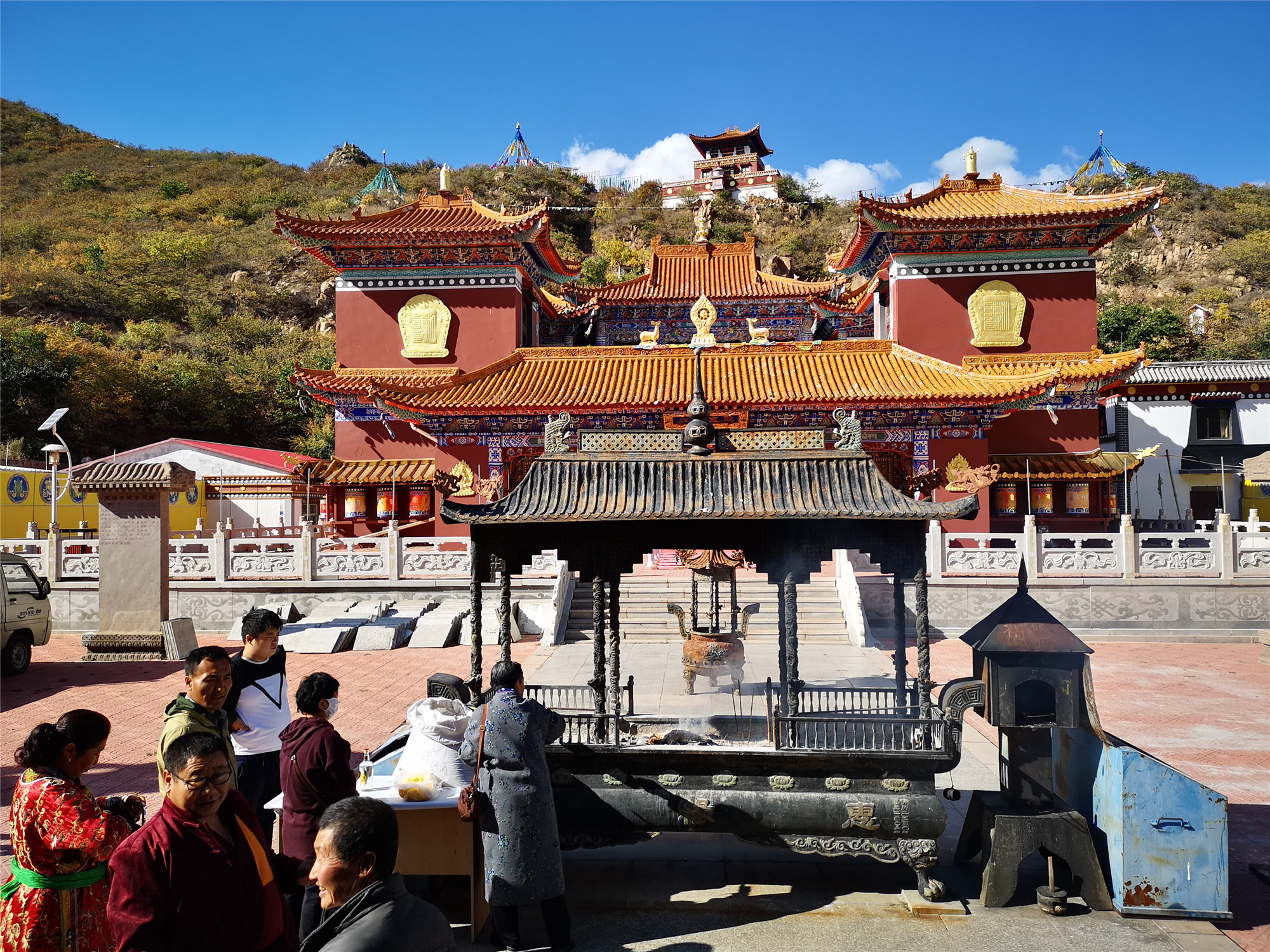 山下的惠缘寺是一个藏传佛教寺院,已经有几百年的历史。每到节日就会有人来此祈福,烧香,朝拜。